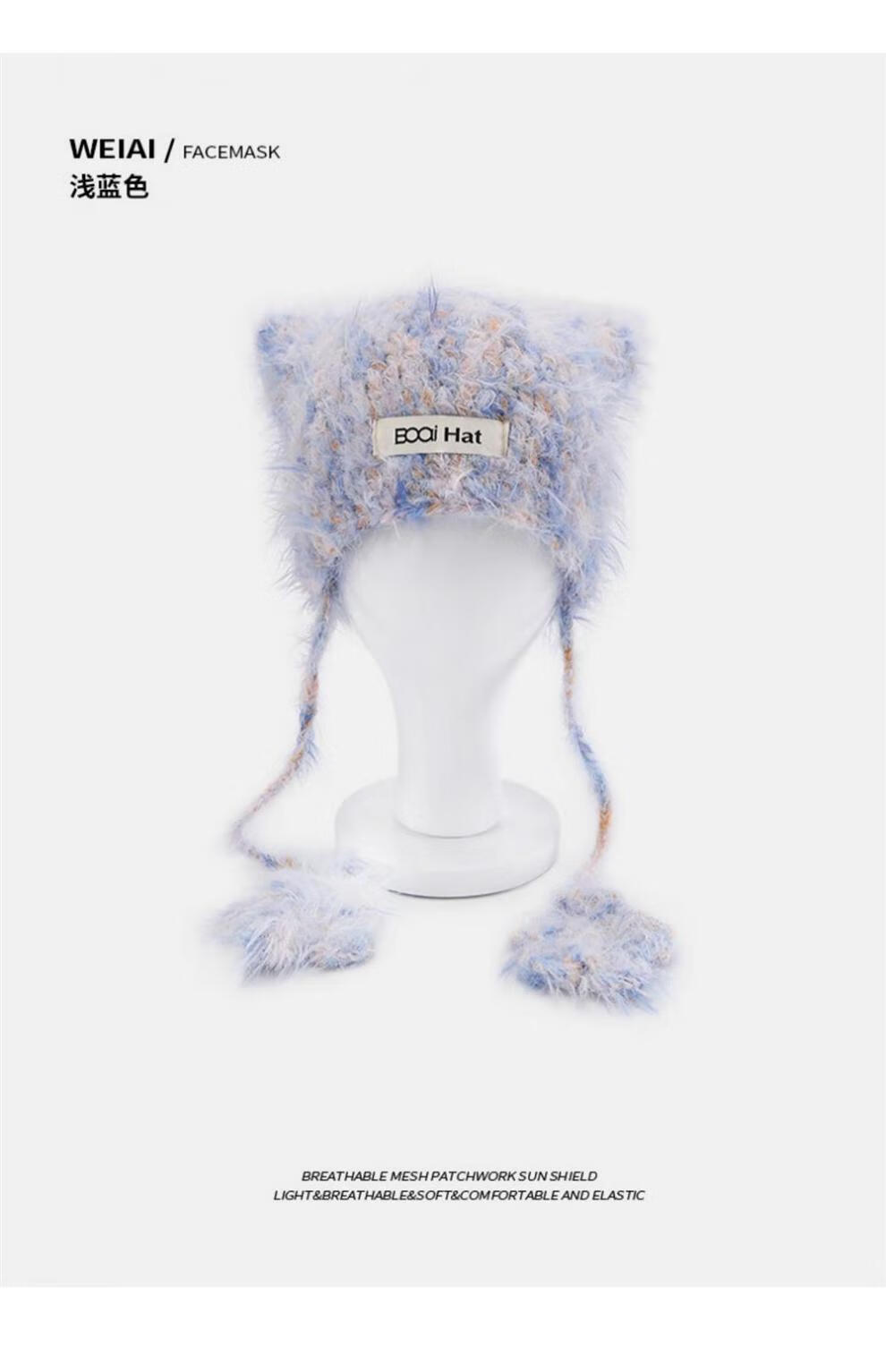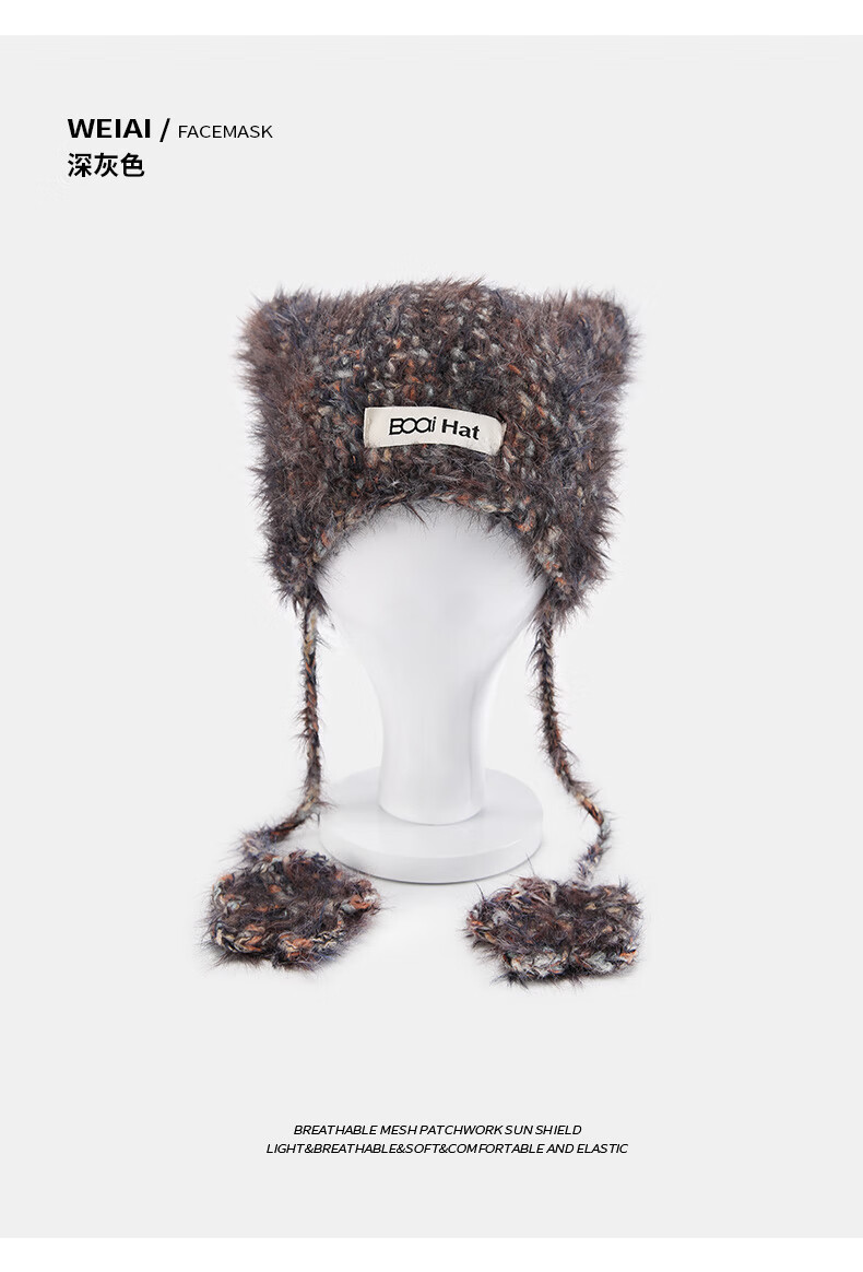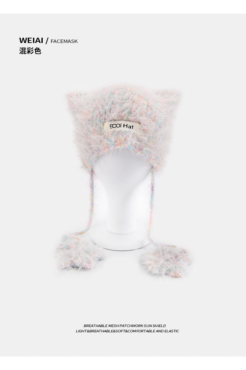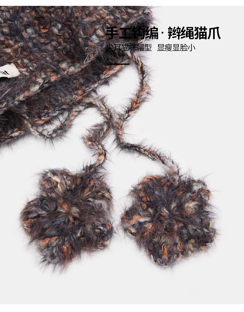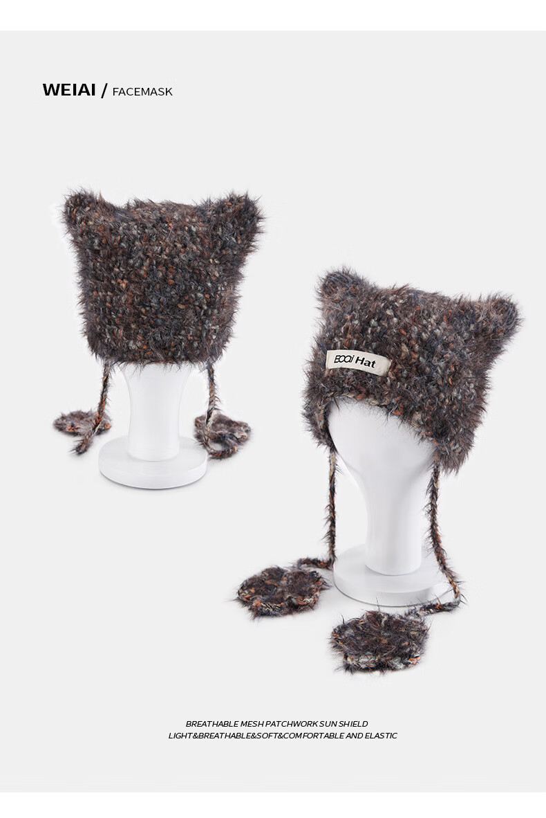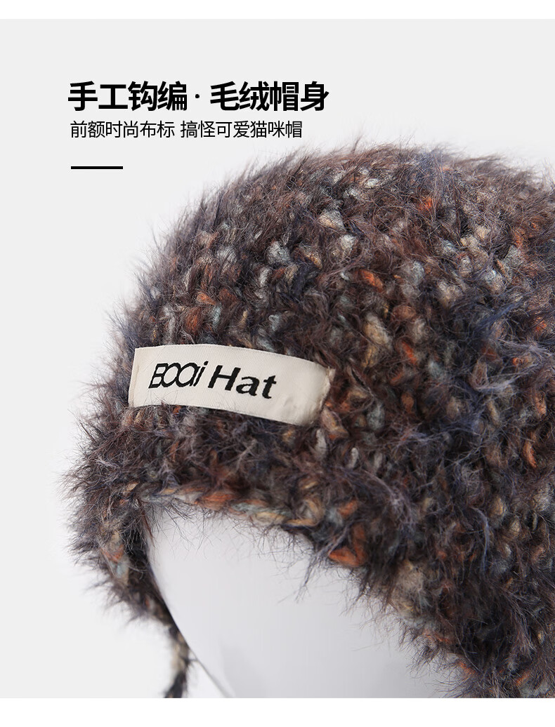 SOMUBAY (SOMUBAY) cute cat ears ear protection woolen hat for girls in autumn and winter plus velvet warm plush knitted hat lace-up Lei Feng hat beige elastic hat circumference 54-58cm