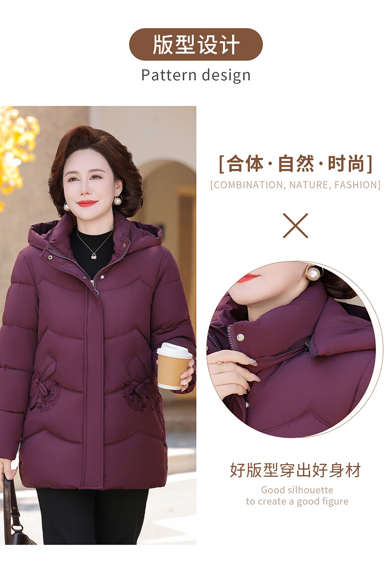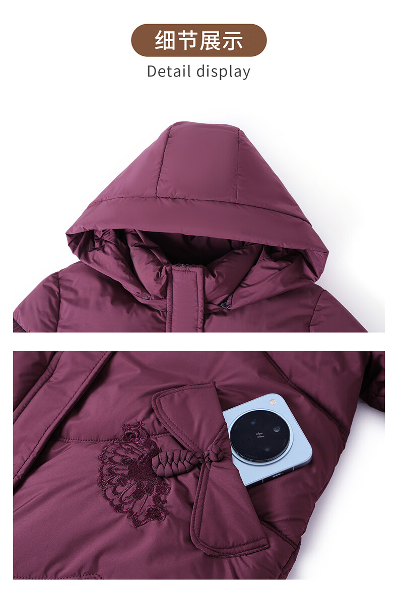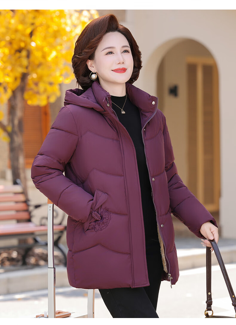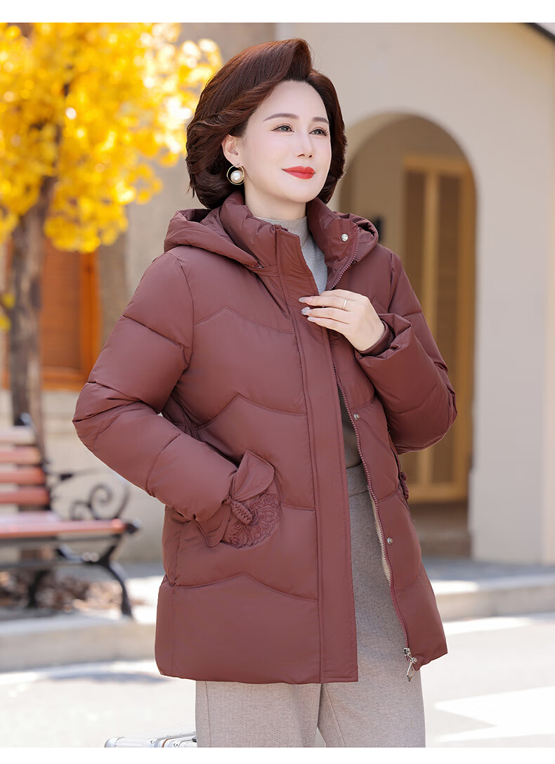 TUCANO mother's down jacket mid-length winter new style for middle-aged and elderly women thickened noble large size winter jacket burgundy 2XL recommended 105-120 Jin Jin equals 0.5 kg