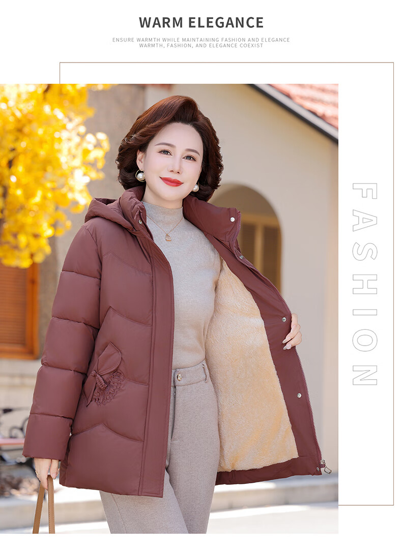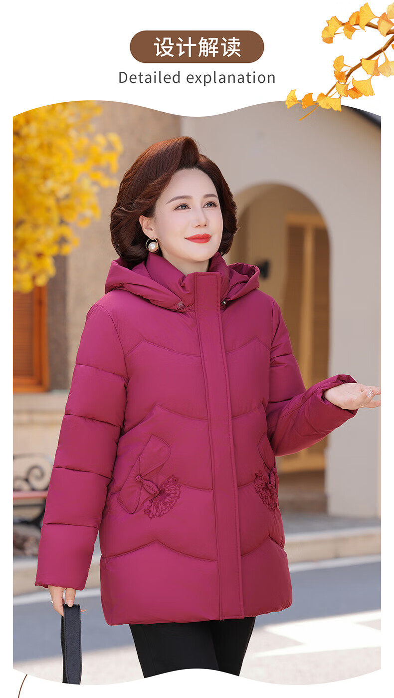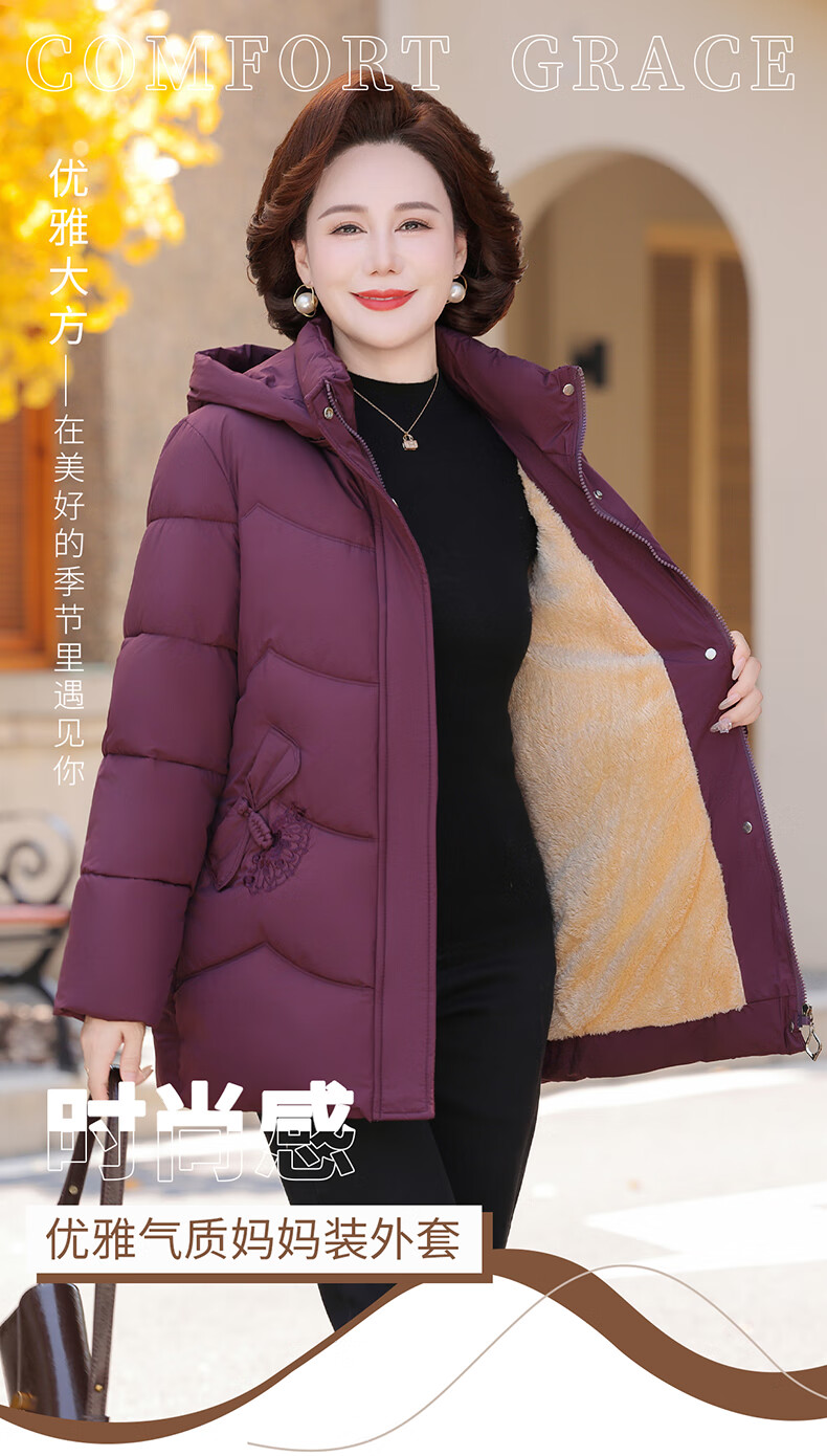 TUCANO mother's down jacket mid-length winter new style for middle-aged and elderly women thickened noble large size winter jacket burgundy 2XL recommended 105-120 Jin Jin equals 0.5 kg