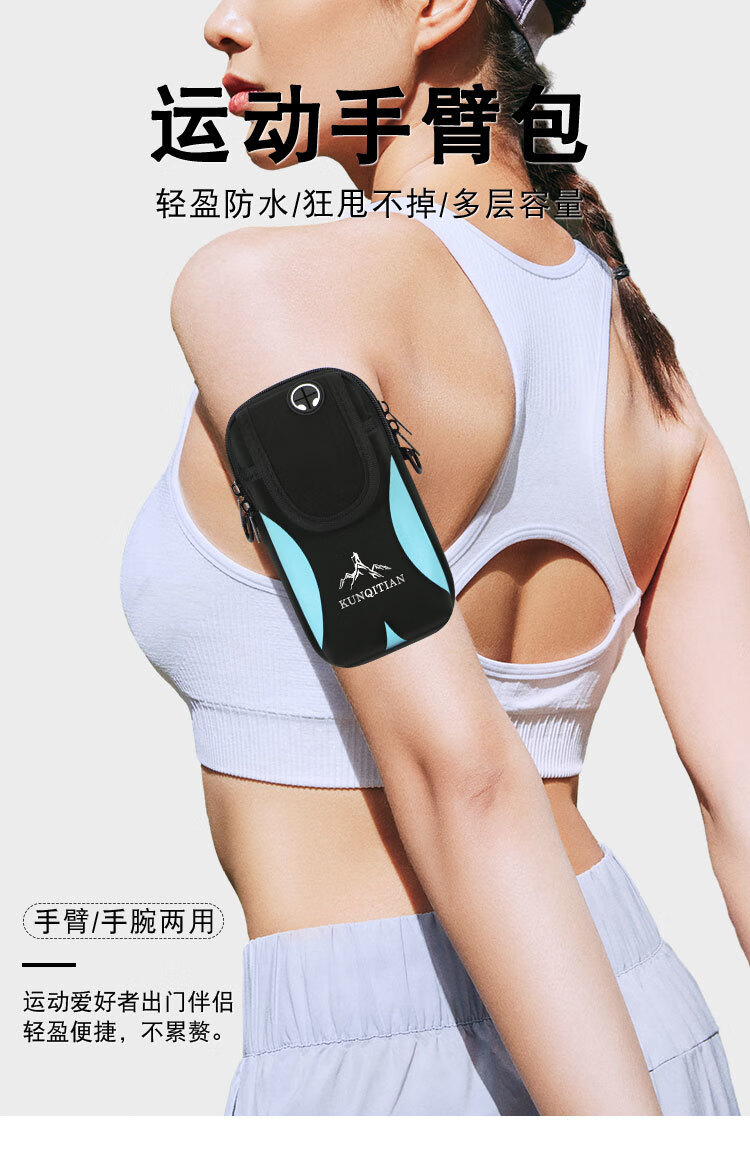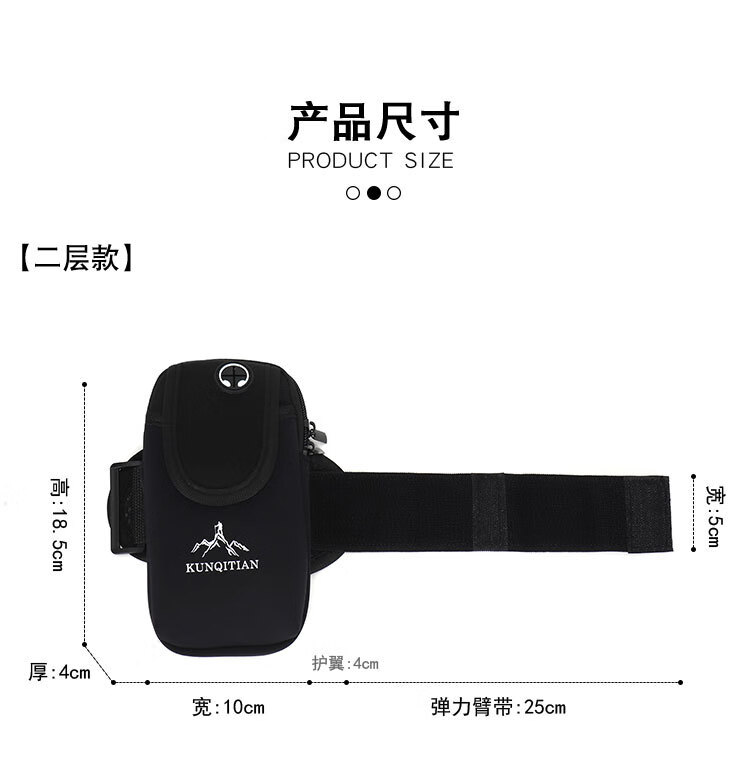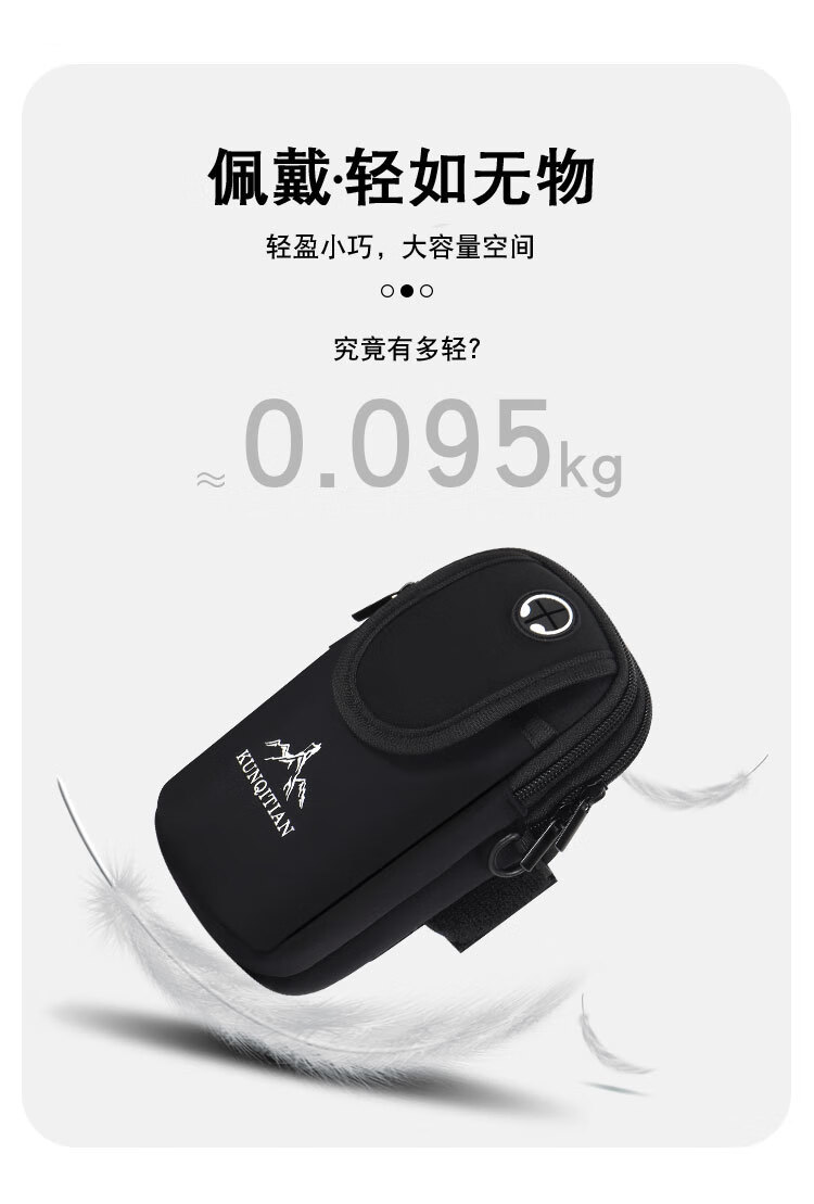 Chajin Outdoor Running Mobile Phone Arm Bag Men's and Women's Wrist Bag Waterproof Fitness Sports Equipment Sports Arm Cover Light Crossbody Bag Black (three layers can hold mobile phones within 17.5 cm) shoulder strap + arm strap