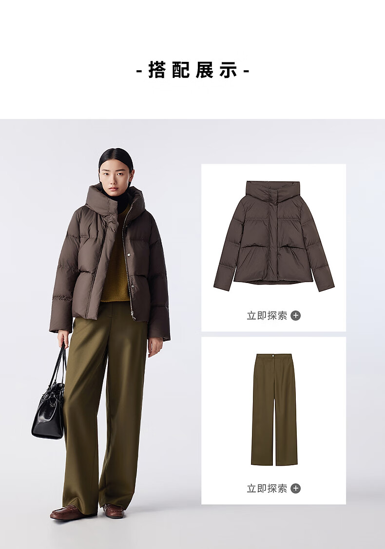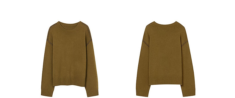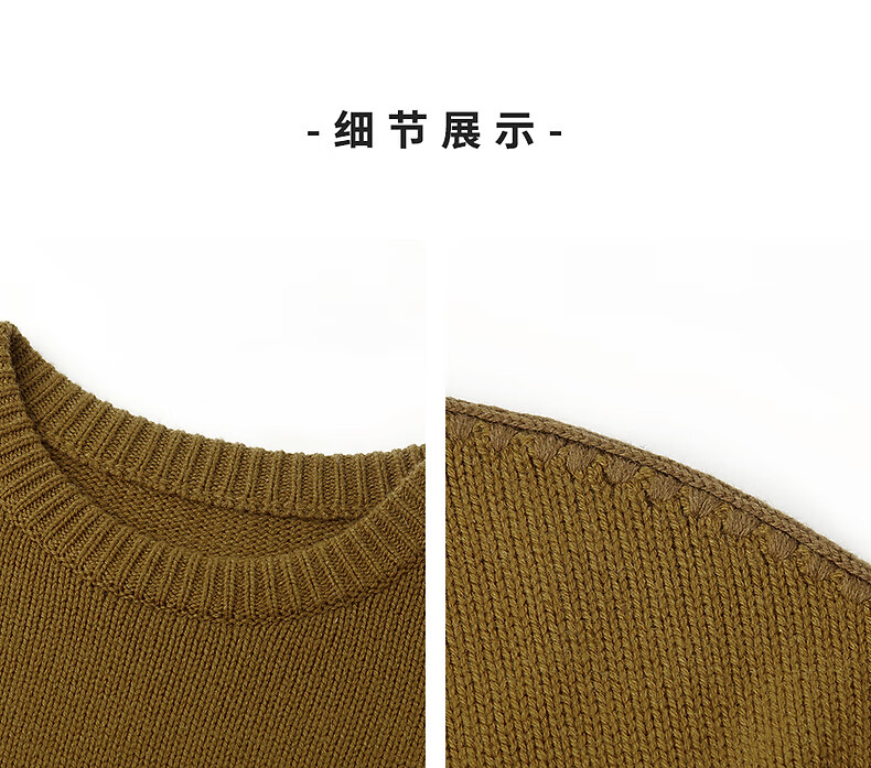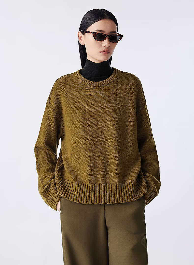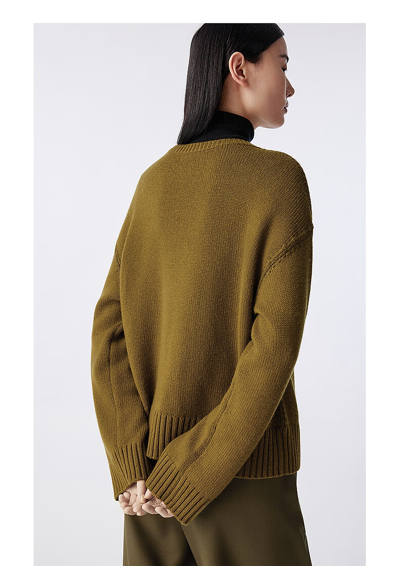 LANCY Wool Cashmere Winter New Retro Relaxed Round Neck Knitted Sweater Short Sweater Women Khaki Green M