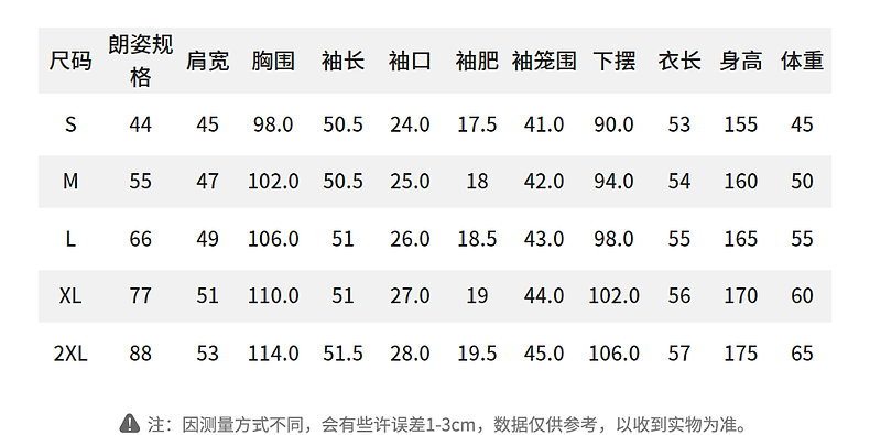 China (cm) 160-165/84-86 165-170 / 88-90 167-172 / 92-96 168-173 / 98-102 170-176 / 106-110