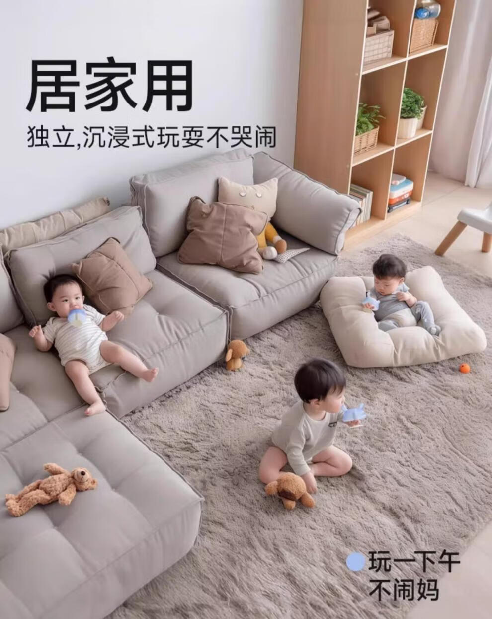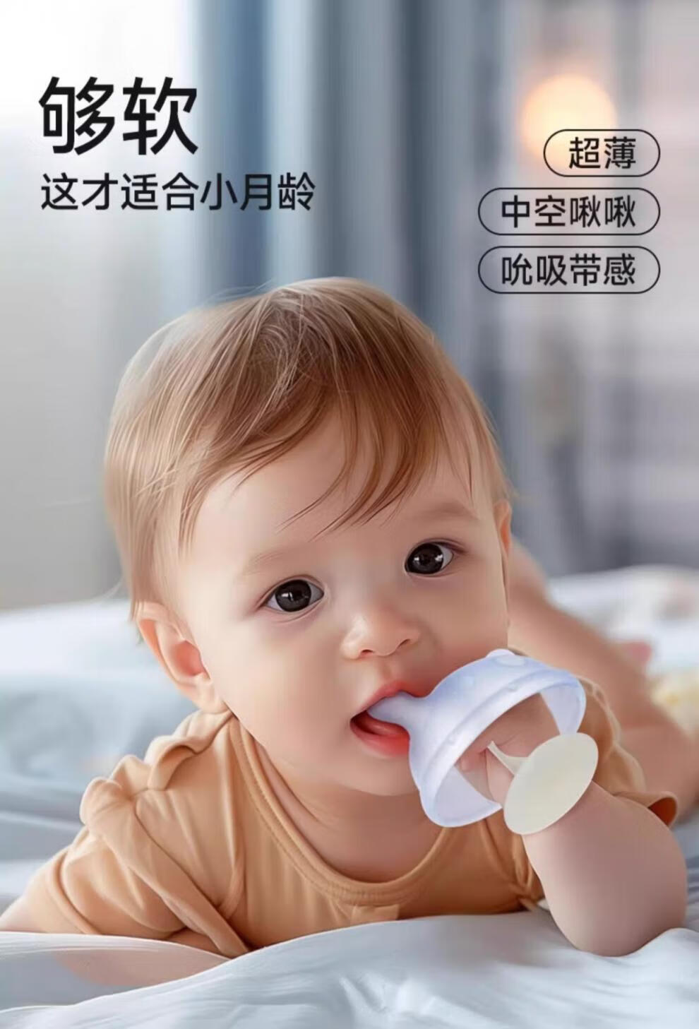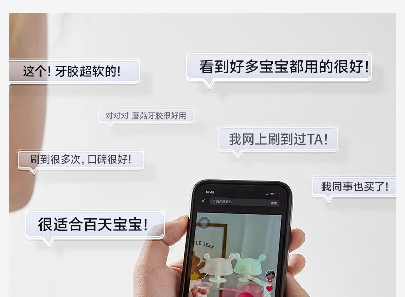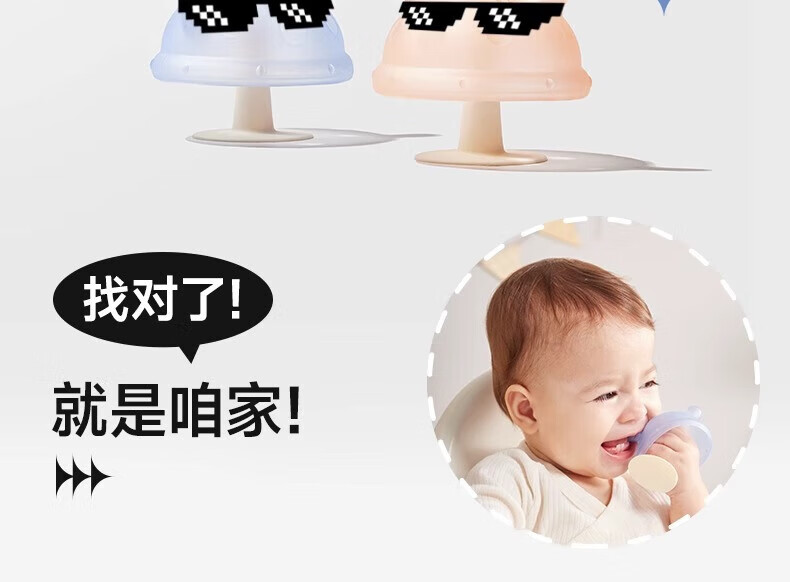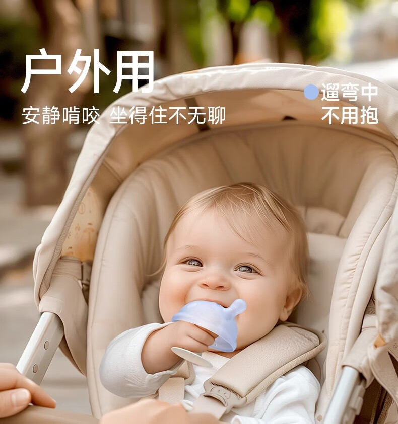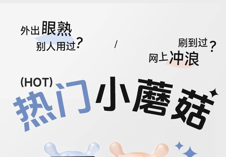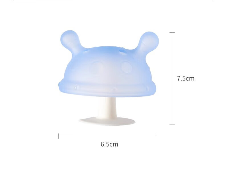 Igroway small mushroom baby teether, 3 months old, anti-eating hand, mouth-appeal period, 0-6 months, soothing and biting, mushroom tooth fixing device, blue, horizontal handle + vertical handle_gift