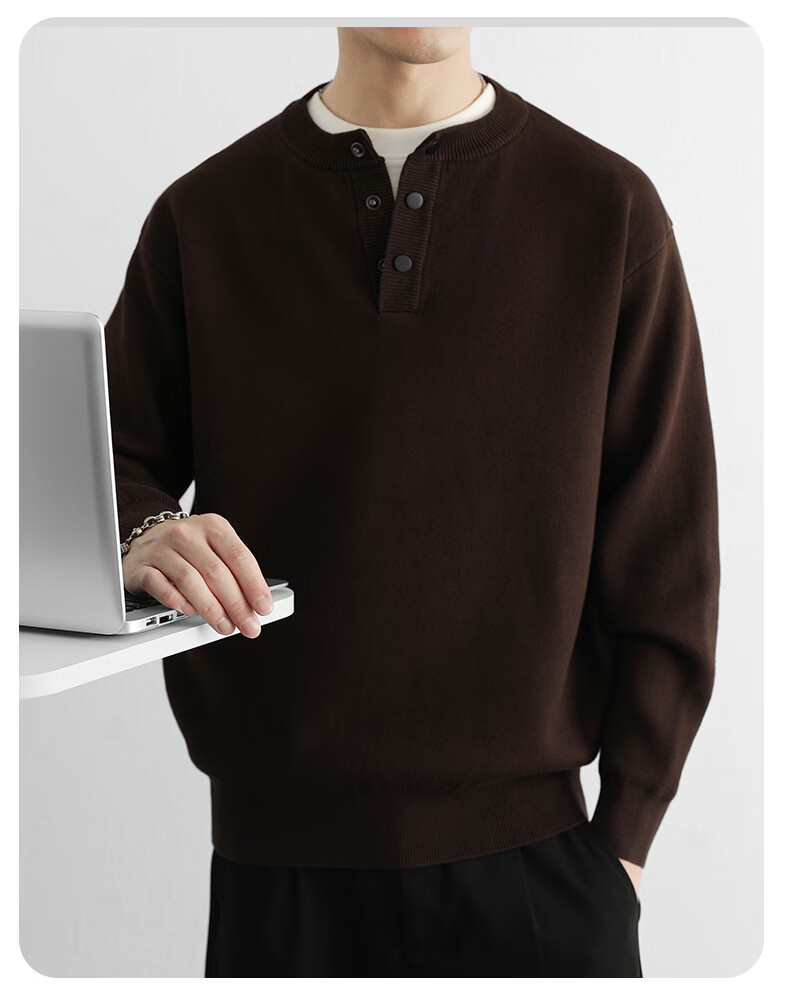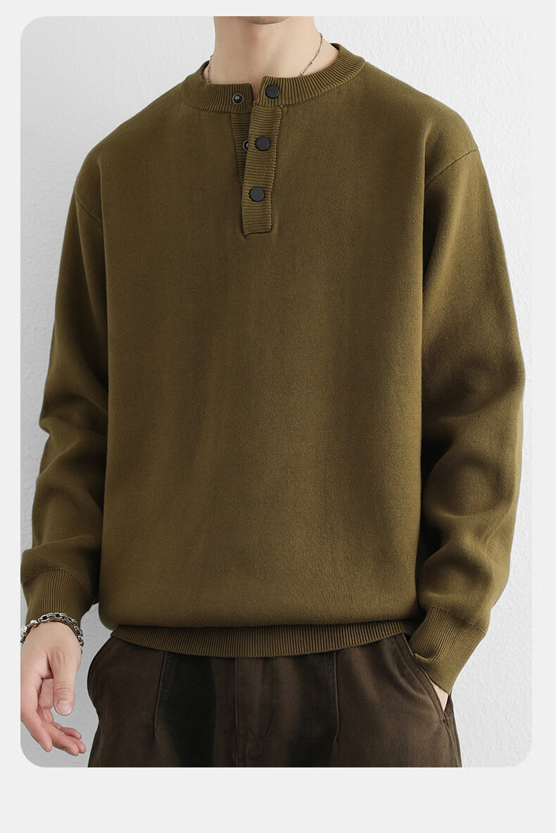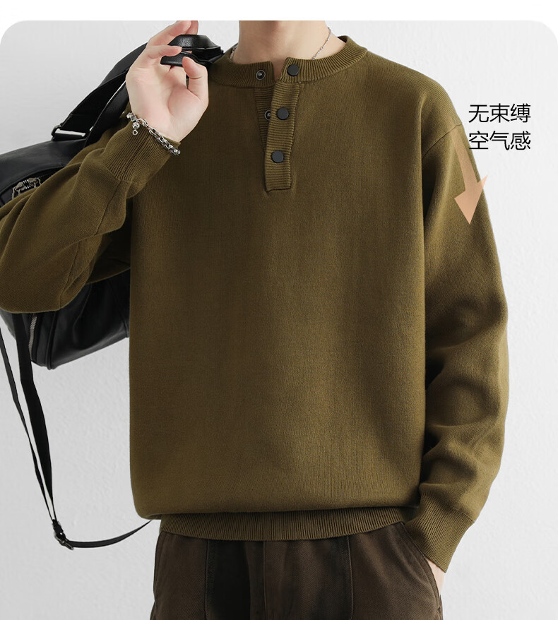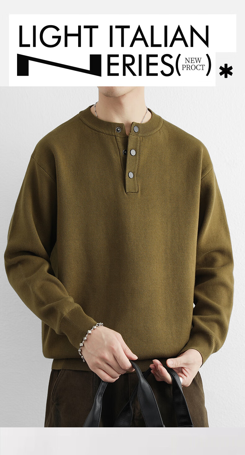Awesome pure cotton Henry collar half-cardigan sweater for men autumn and winter new men's pullover sweater light mustard green 2XL weight range 150-170Jin Jin is equal to 0.5 kg