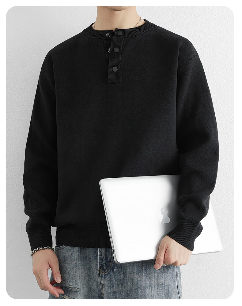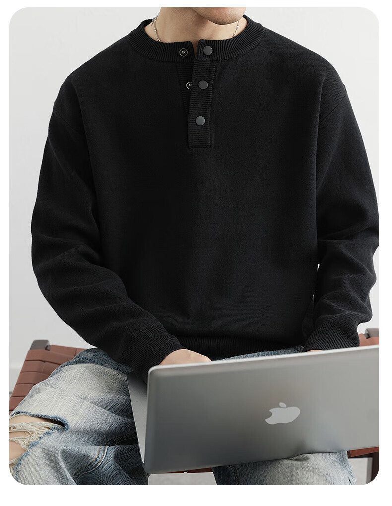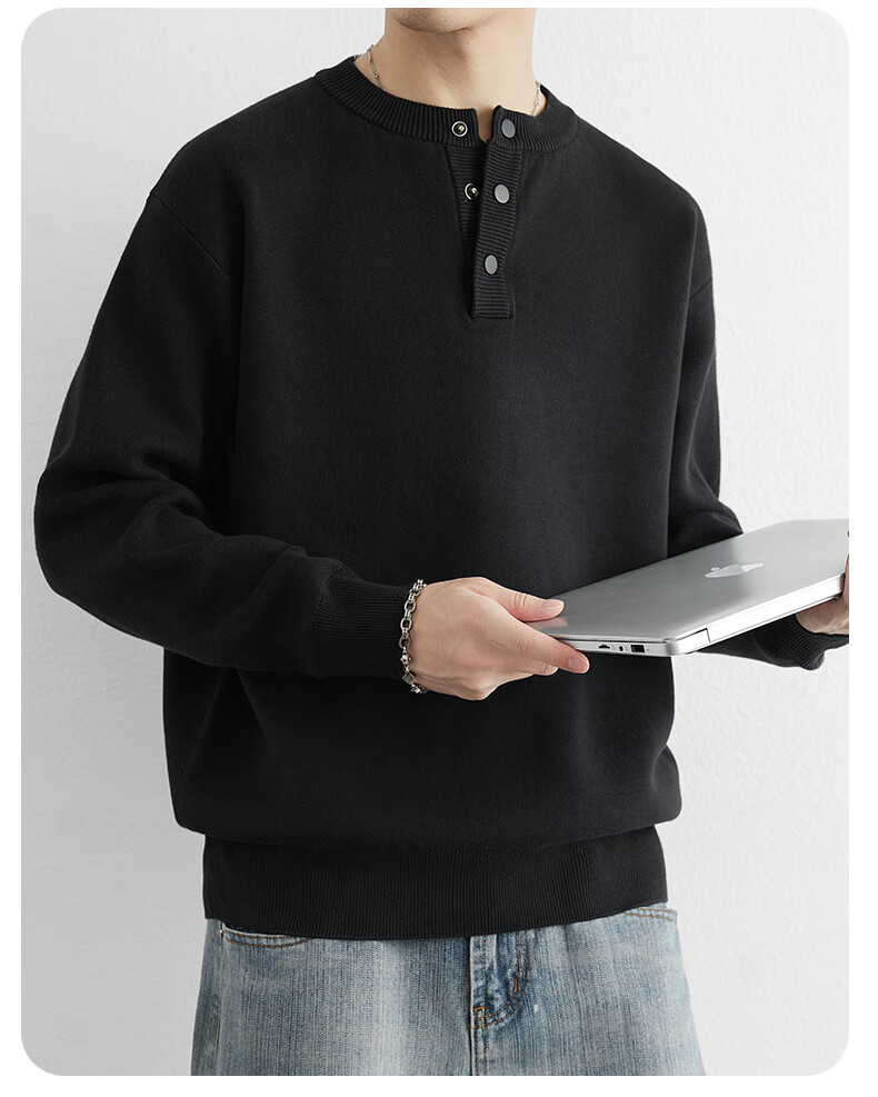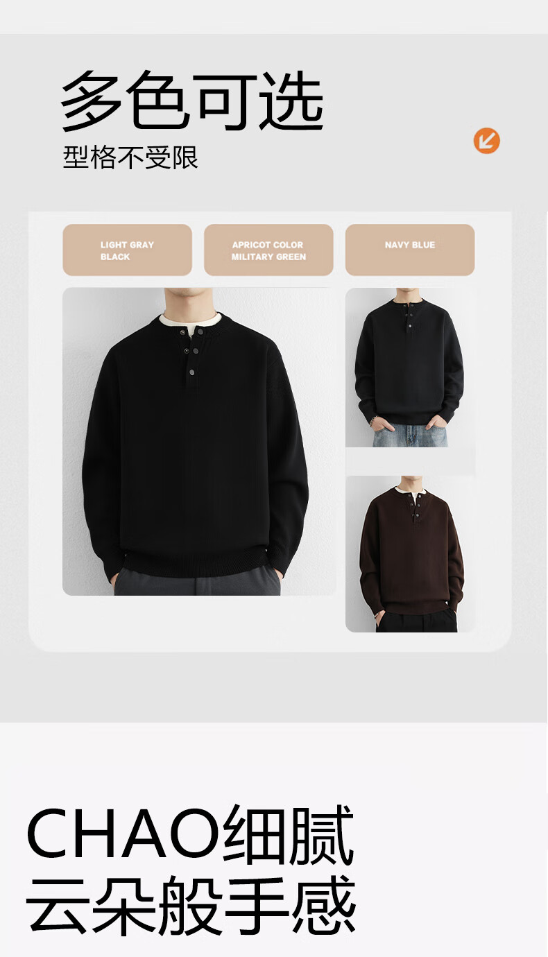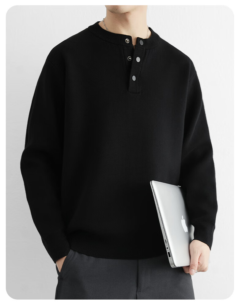 Awesome pure cotton Henry collar half-cardigan sweater for men autumn and winter new men's pullover sweater light mustard green 2XL weight range 150-170Jin Jin is equal to 0.5 kg