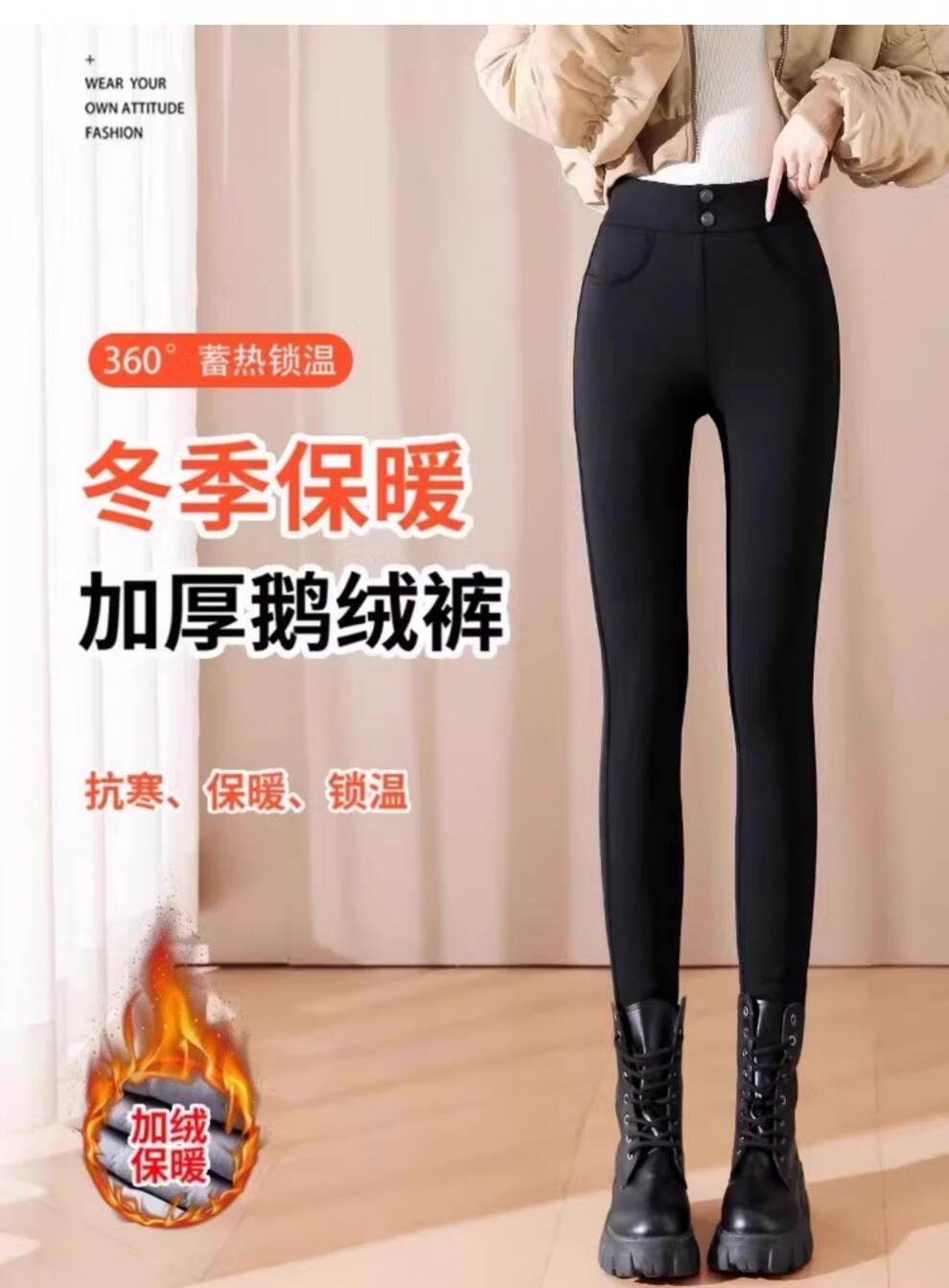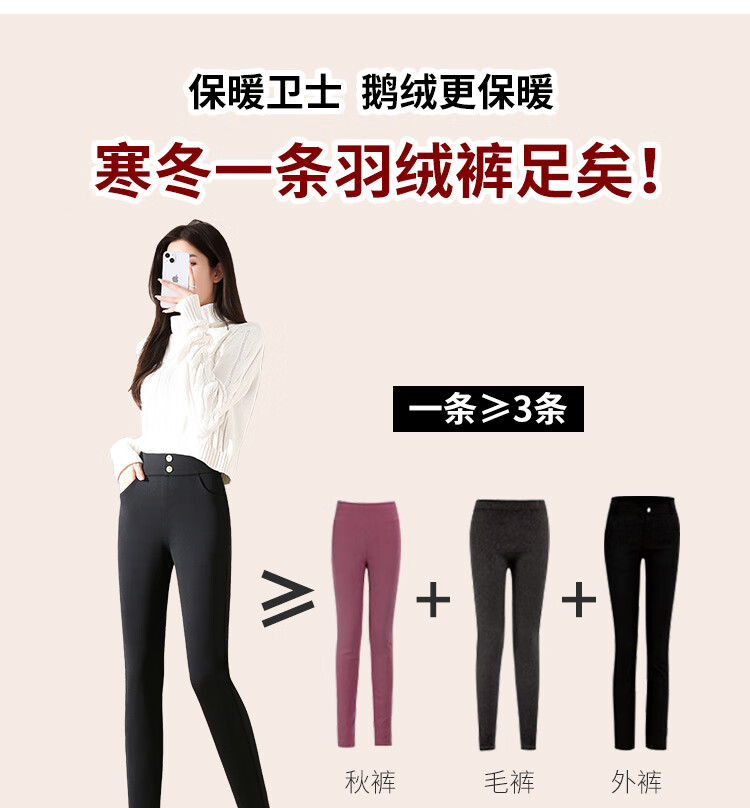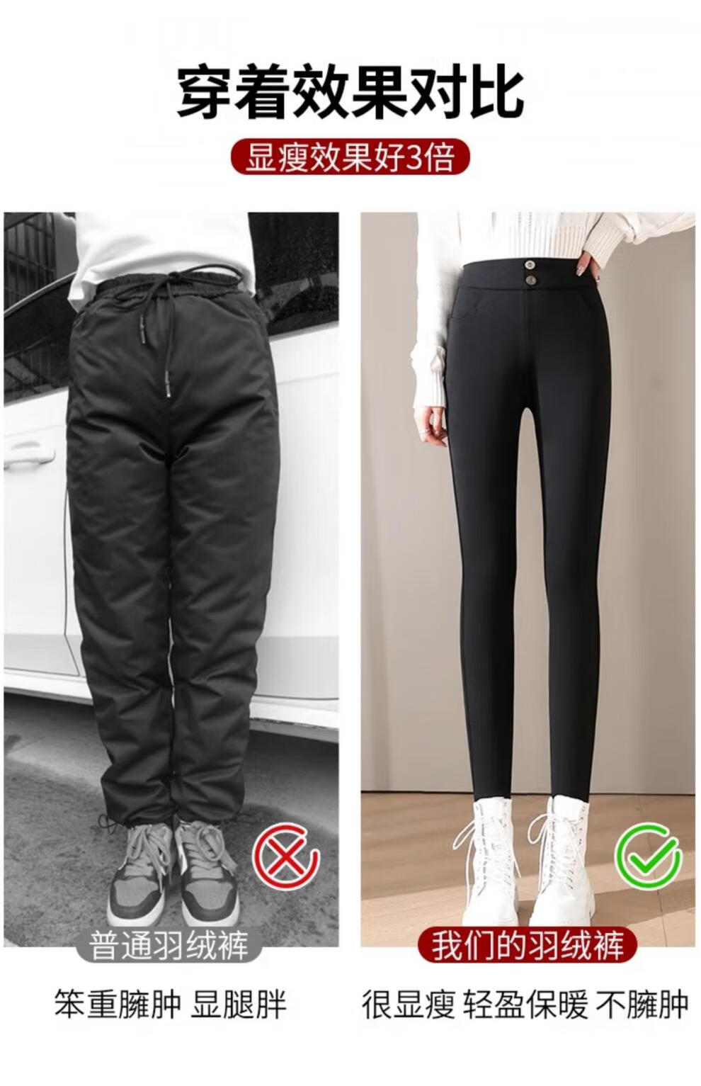 RLAS goose down down pants for women's outer wear in winter, plus velvet and thickening, Harbin cold-resistant and warm high-waisted small-foot bottoming cotton pants, black, classic high-waisted XL weight (115-125Jin Jin is equal to 0.5 kg)