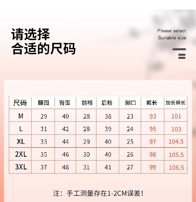 Outseam (cm) 99 cm 101.5 cm 104 cm 106.5 cm 109 cm