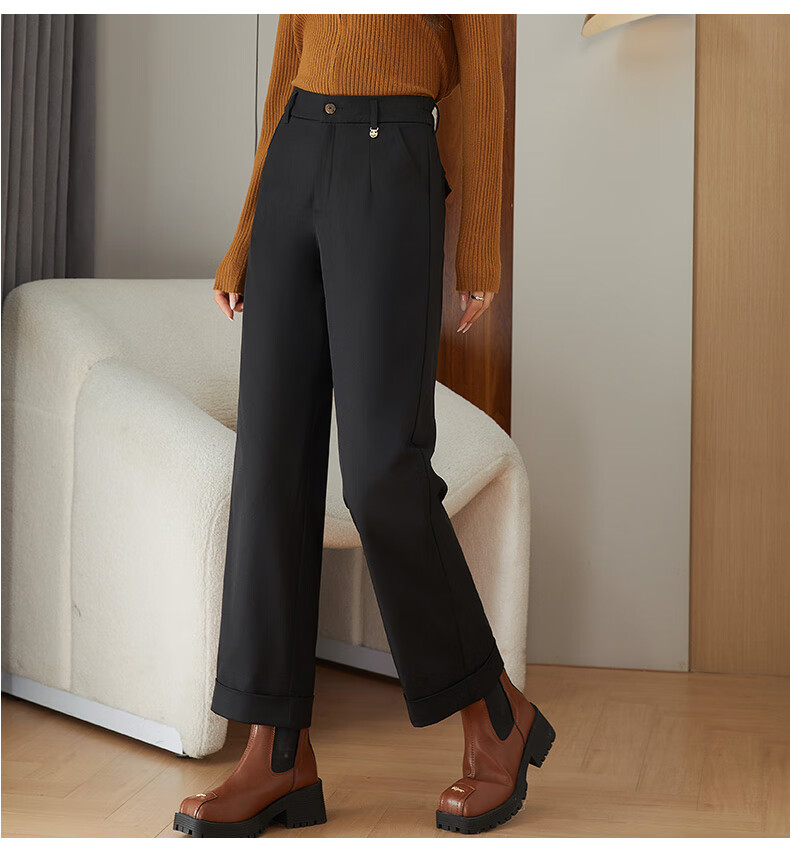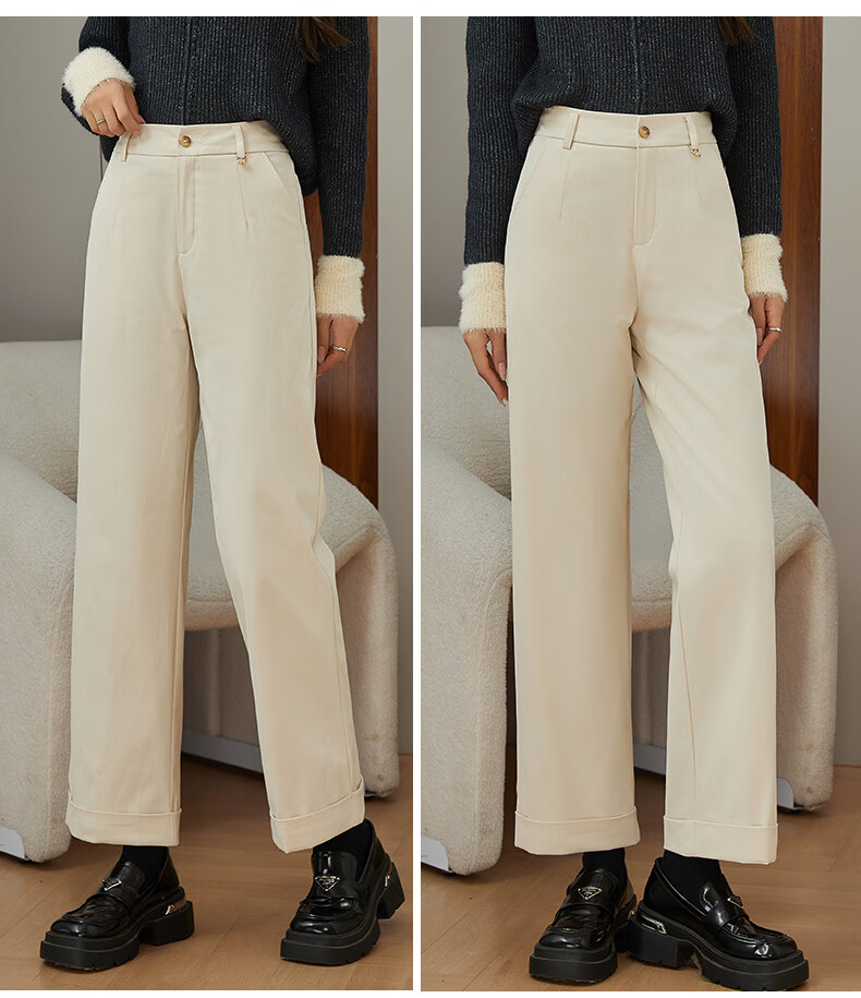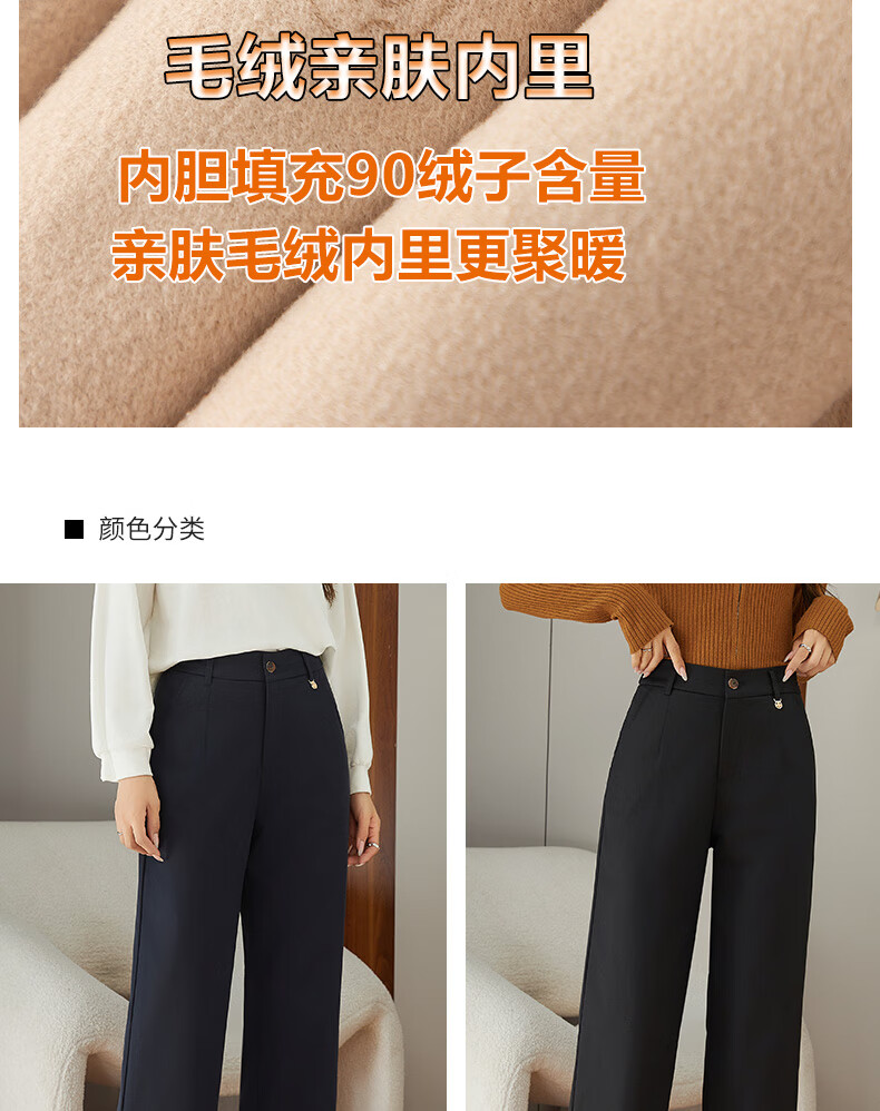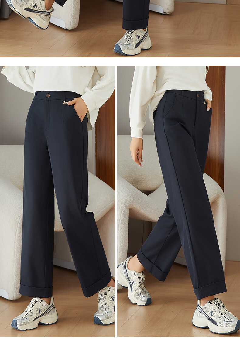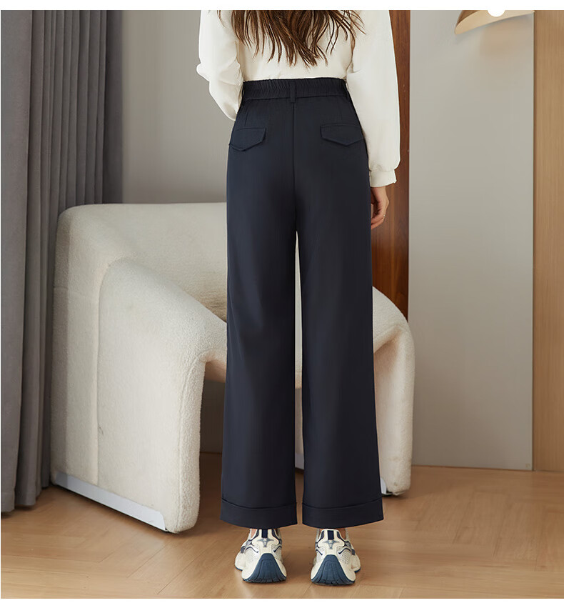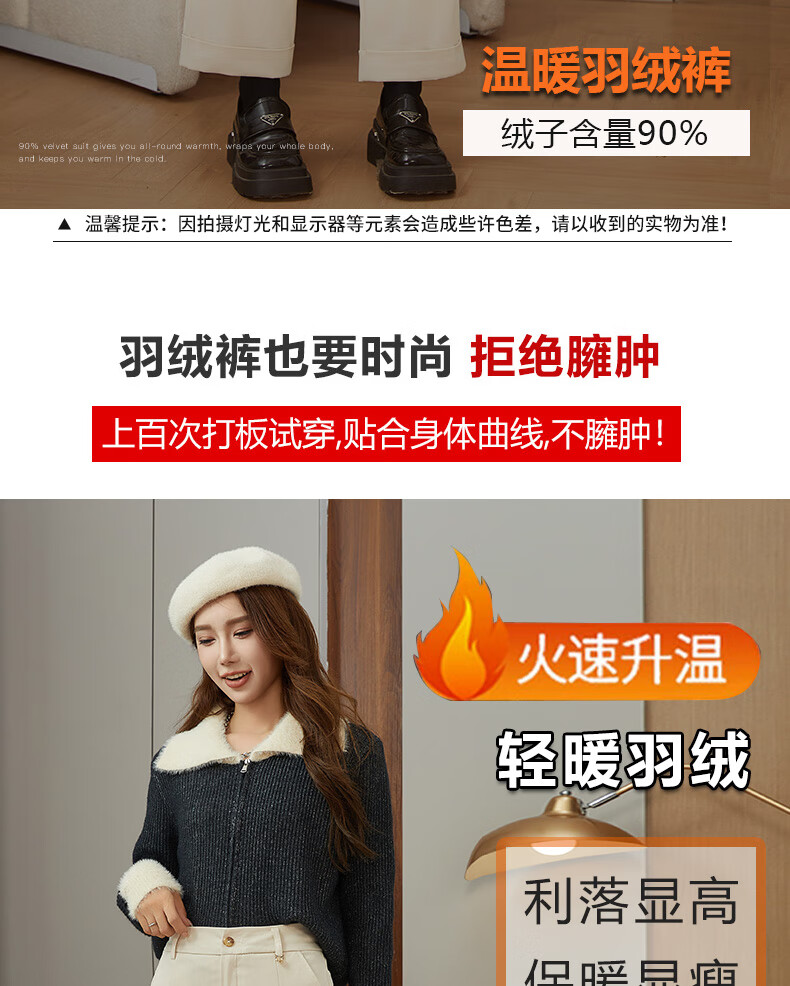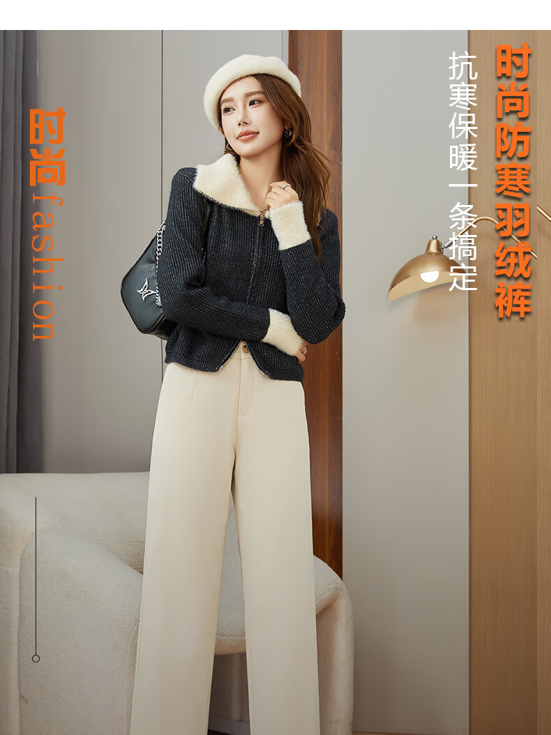 RLAS Brown Straight Down Pants Women's Winter Small Cuffed Nine-Point Wide-leg Pants Cold-proof Thickened Duck Down Cotton Pants Navy 26