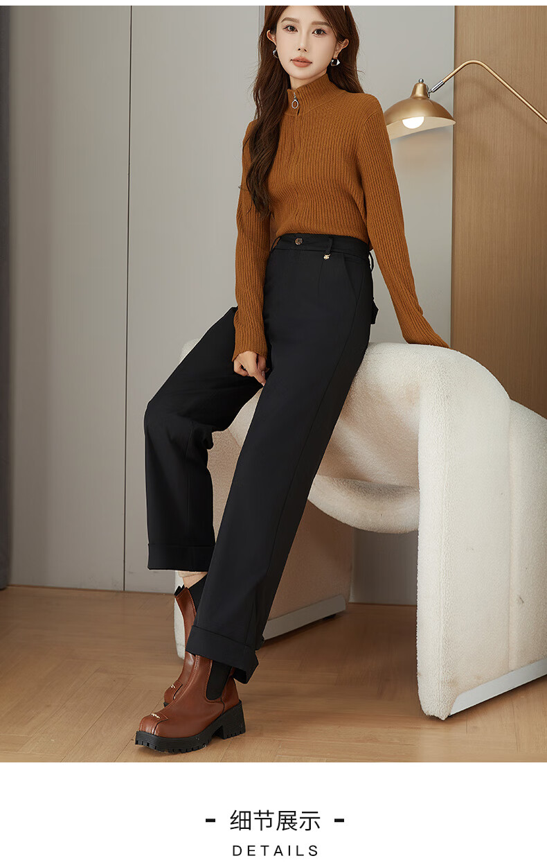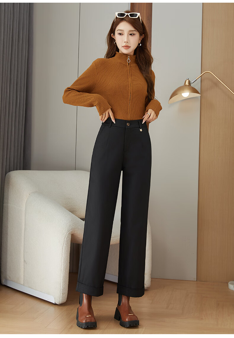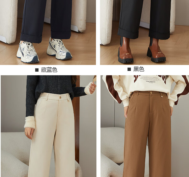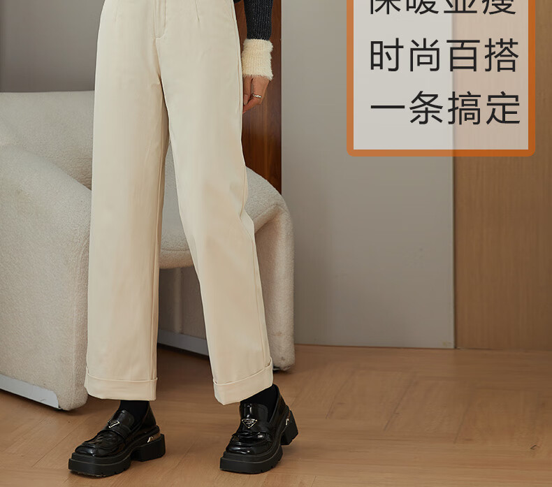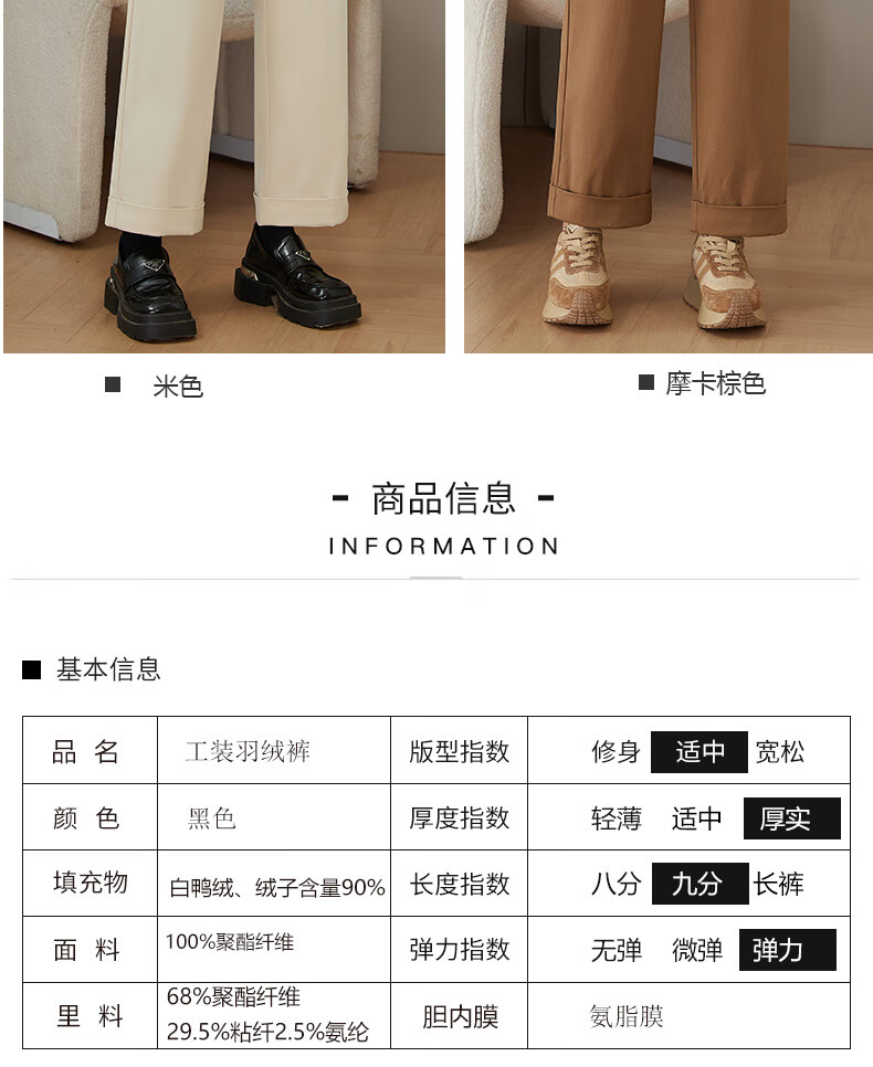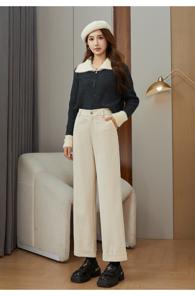 RLAS Brown Straight Down Pants Women's Winter Small Cuffed Nine-Point Wide-leg Pants Cold-proof Thickened Duck Down Cotton Pants Navy 26