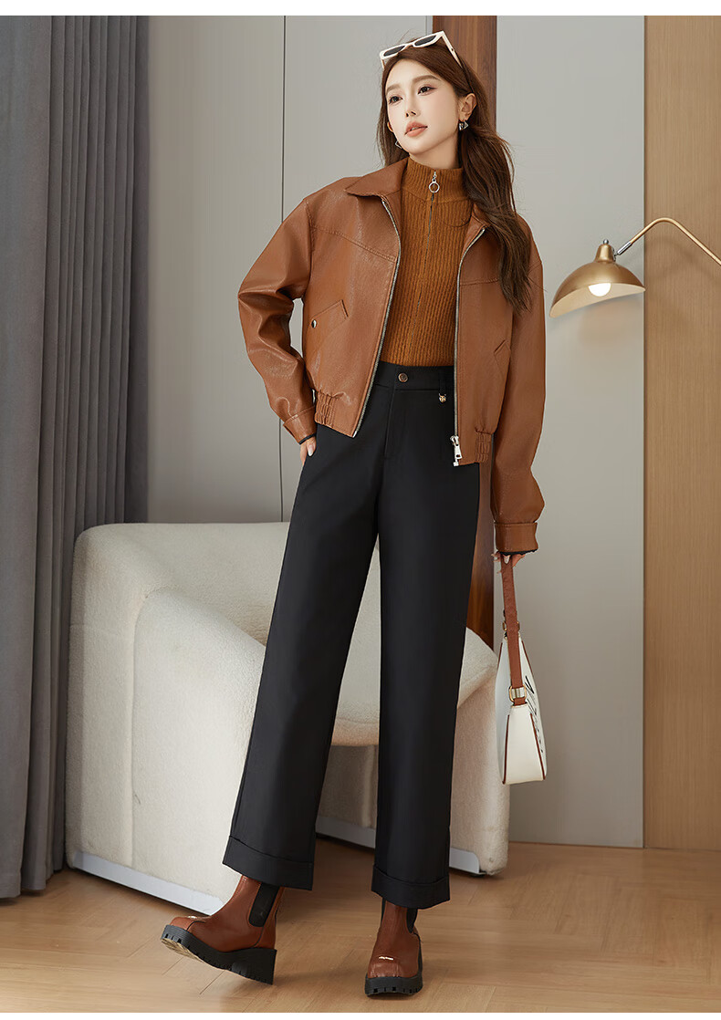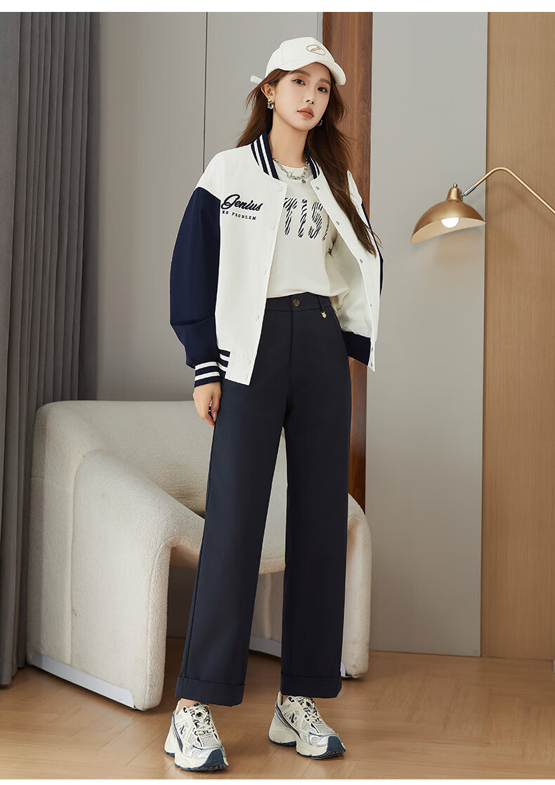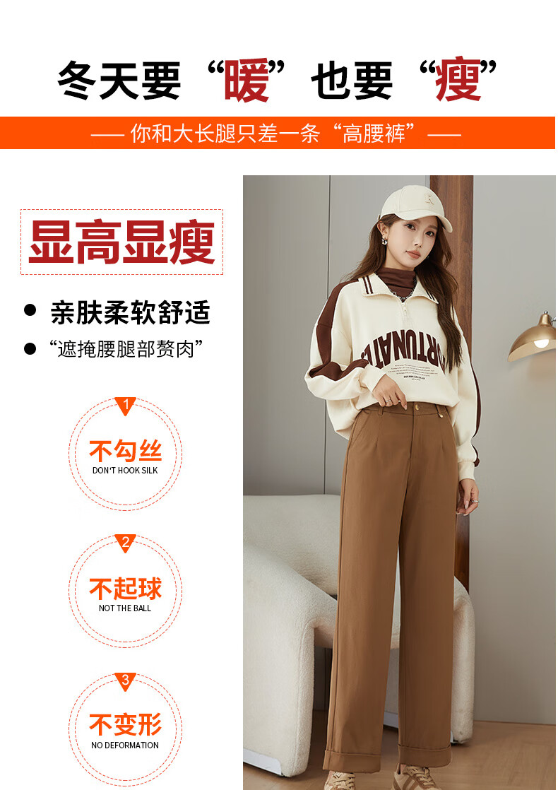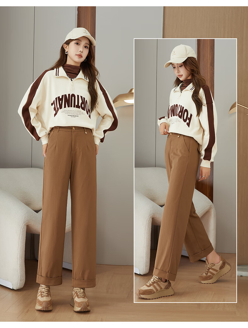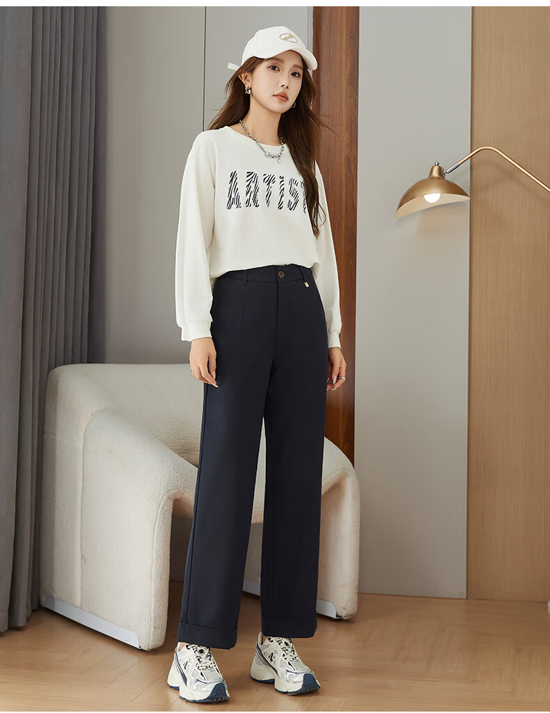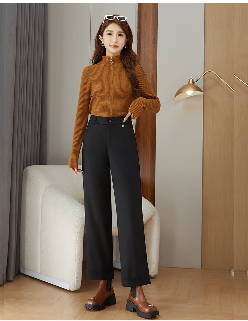 RLAS Brown Straight Down Pants Women's Winter Small Cuffed Nine-Point Wide-leg Pants Cold-proof Thickened Duck Down Cotton Pants Navy 26