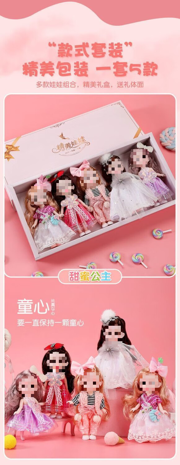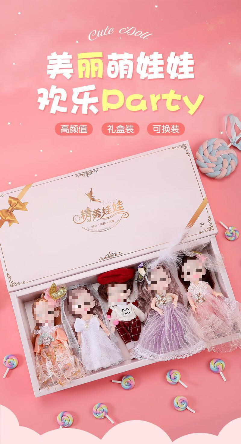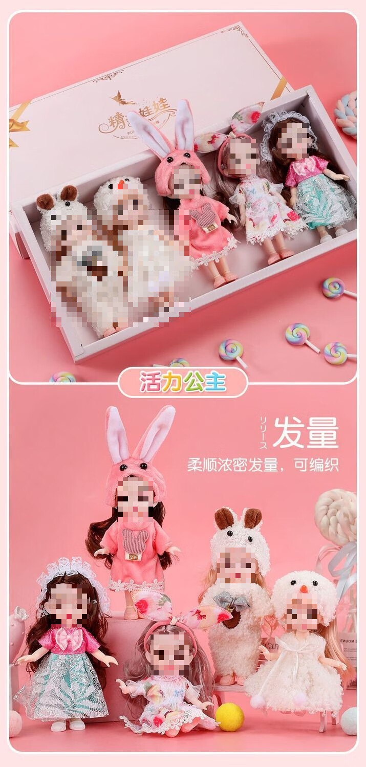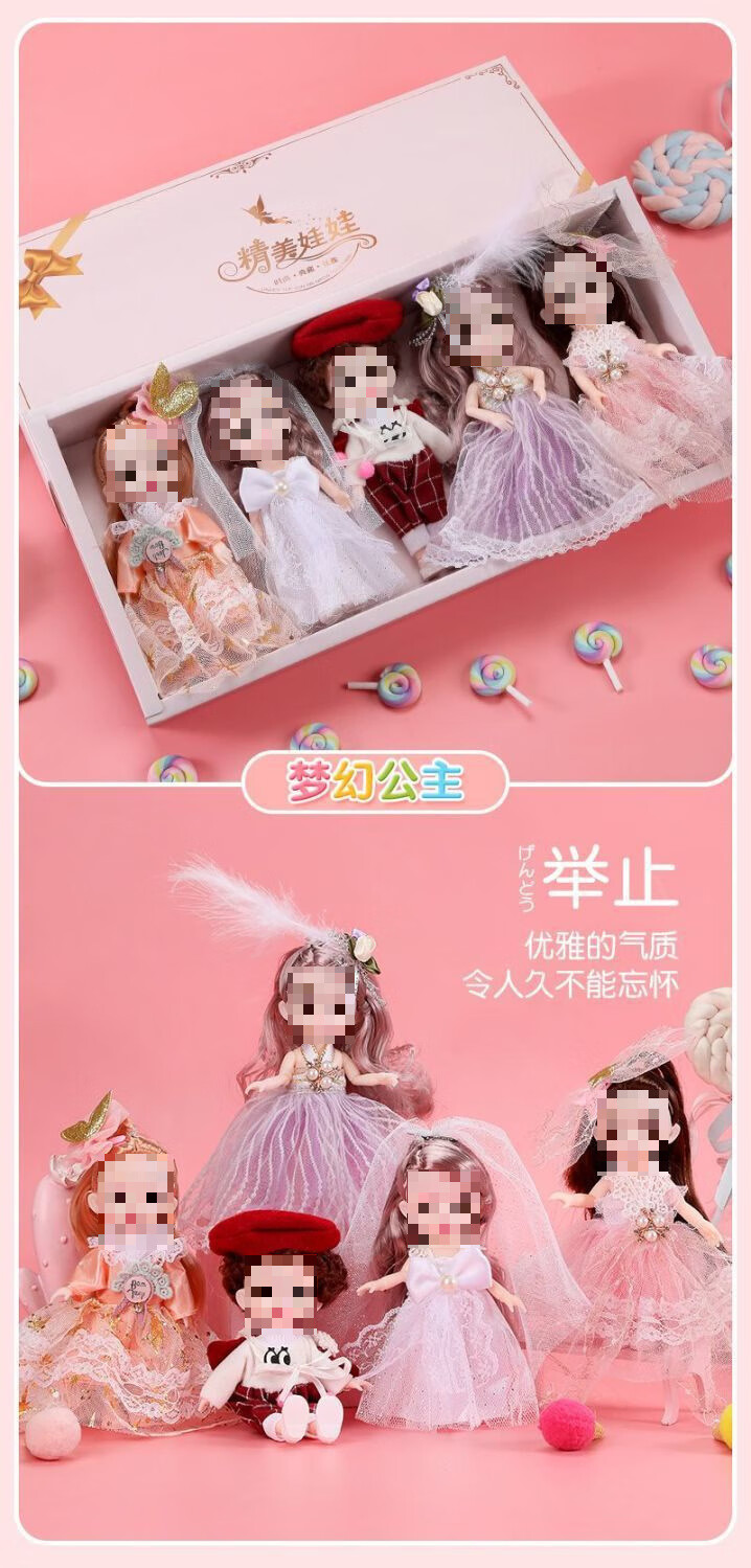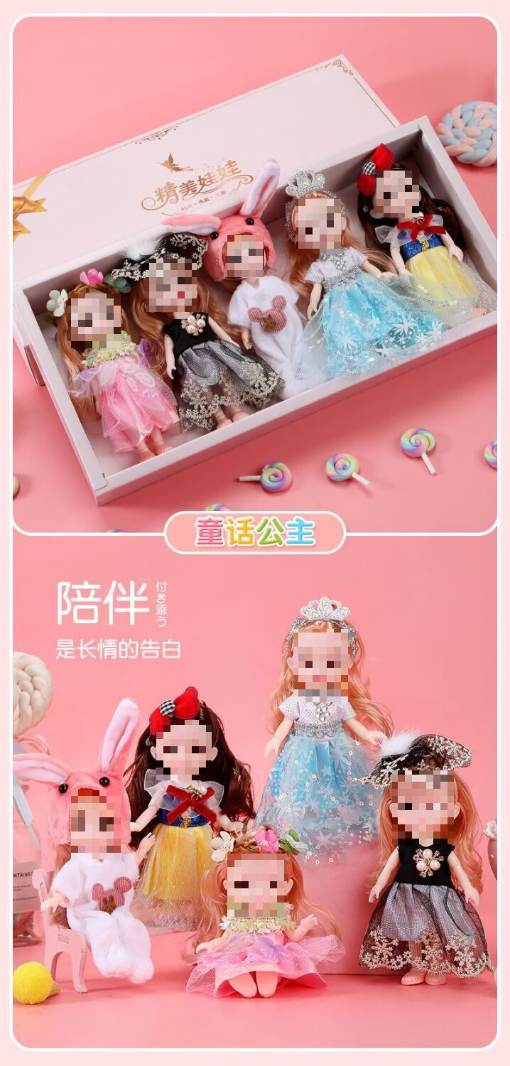 Shantou Lincun Internet celebrity 17cm doll gift box set princess simulation toy girl birthday gift 5 pieces - wedding princess as shown in the gift box