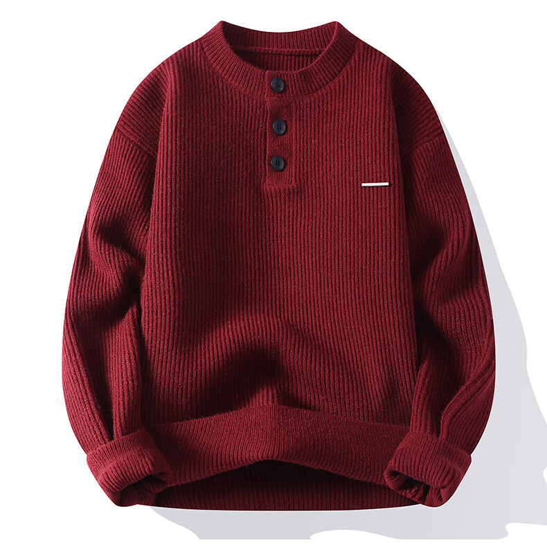 Mangmang Henry collar sweater for men, autumn and winter new warm sweater, loose inner wear, pullover bottoming top for teenagers, red 3XL, weight range 150-170Jin Jin is equal to 0.5 kg