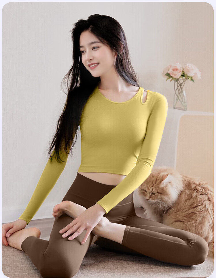 Shuangxiu Yoga Wear Suit for Women 2025 New Style Beautiful Nude Autumn and Winter Long Sleeve Top Running Pilates Training Fitness Wear Platycodon Purple S 80-100