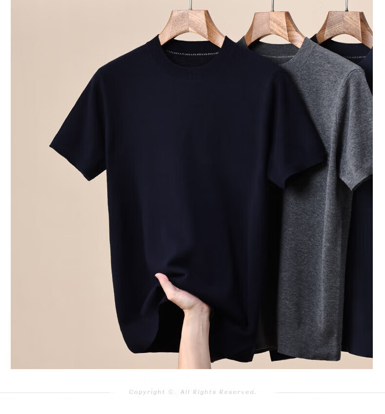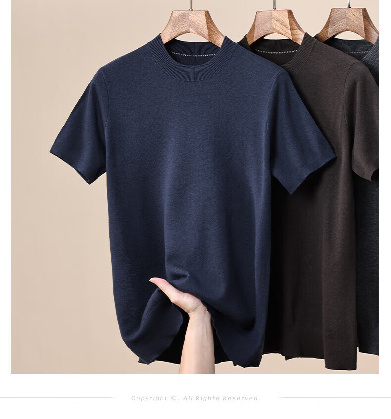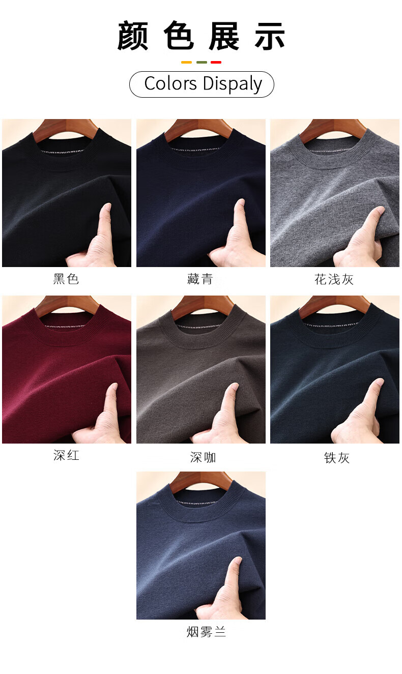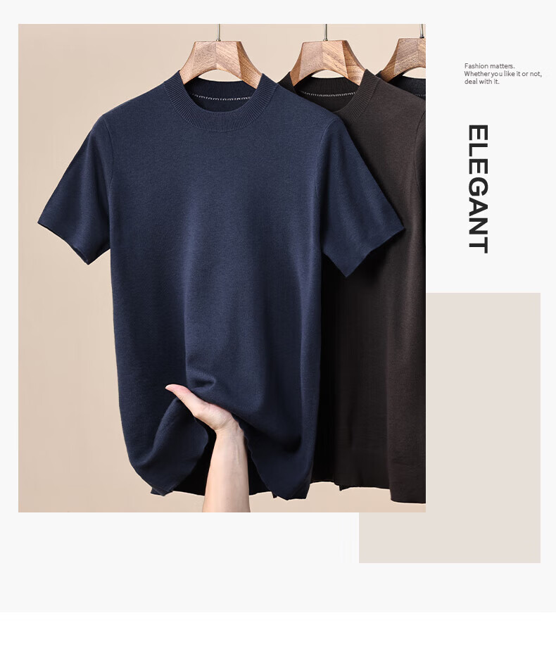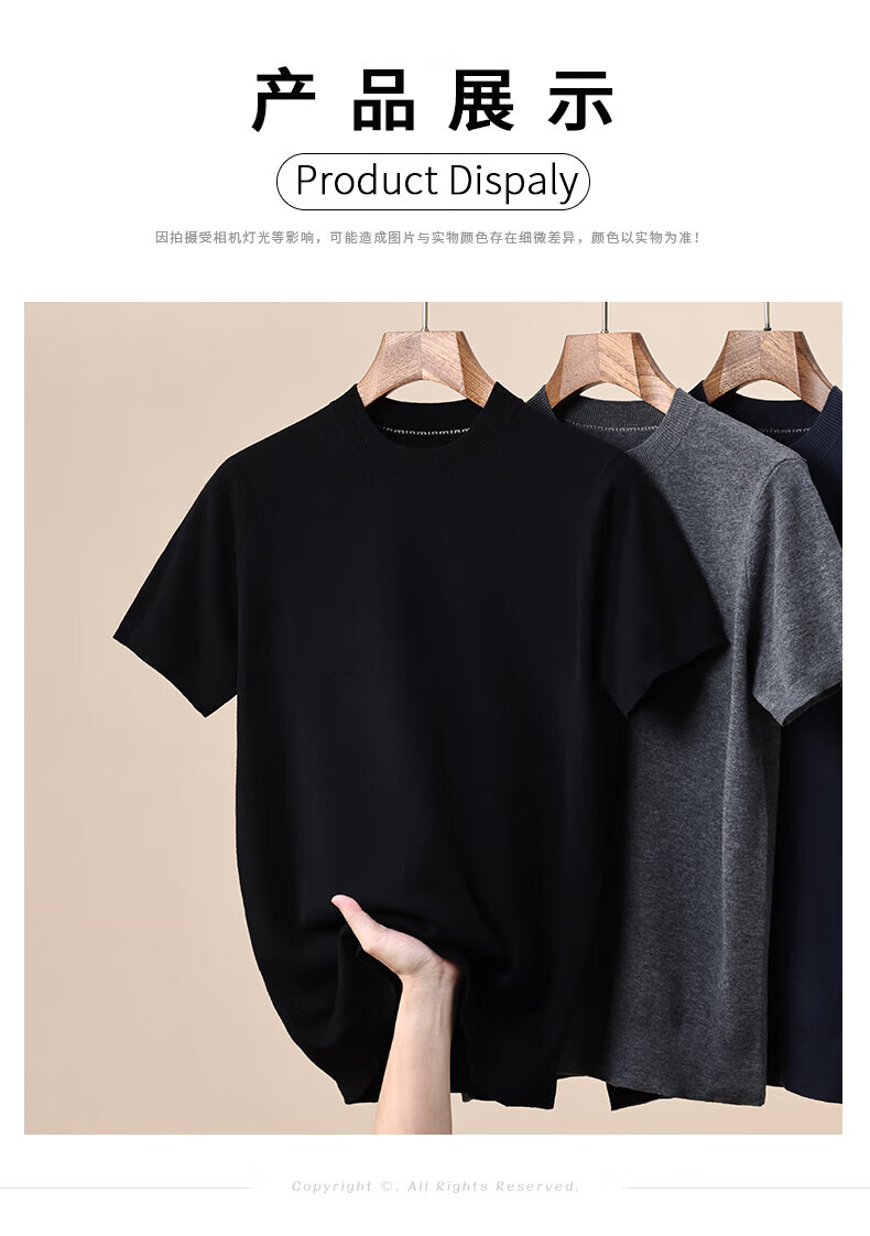 Hengyuanxiang 100% pure woolen sweater for men in autumn and winter new short-sleeved T-shirt for middle-aged and young people half-sleeved sweater knitted bottoming shirt for men black L 175/92A(110)