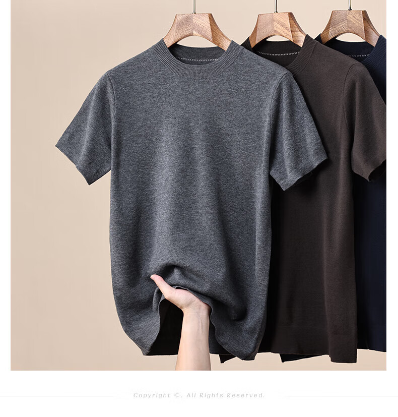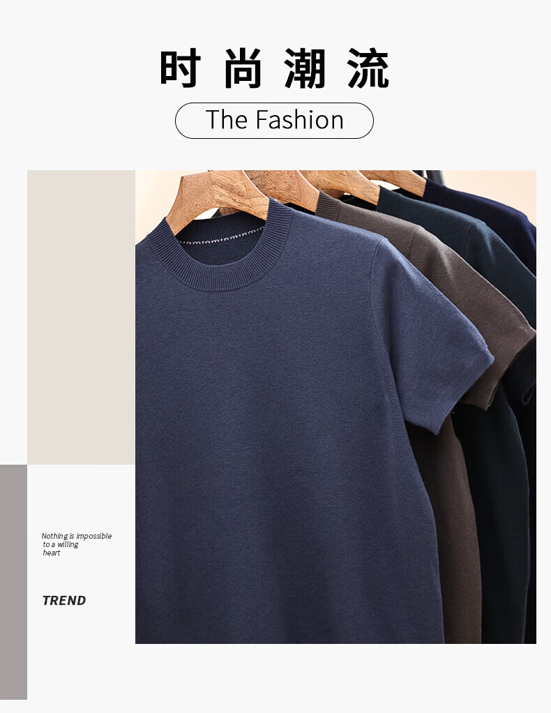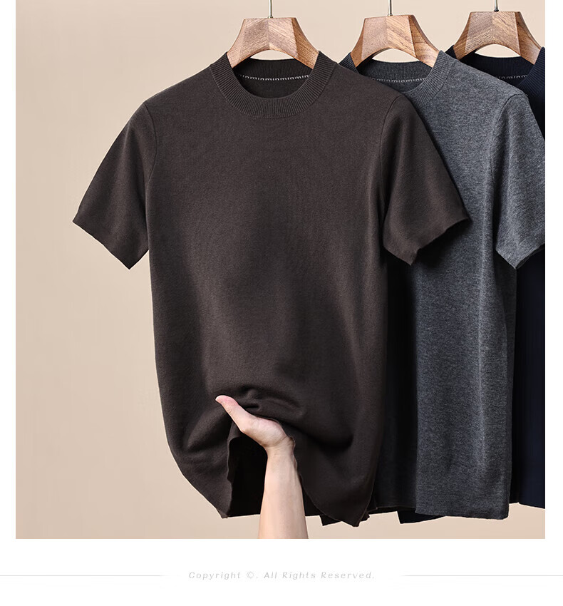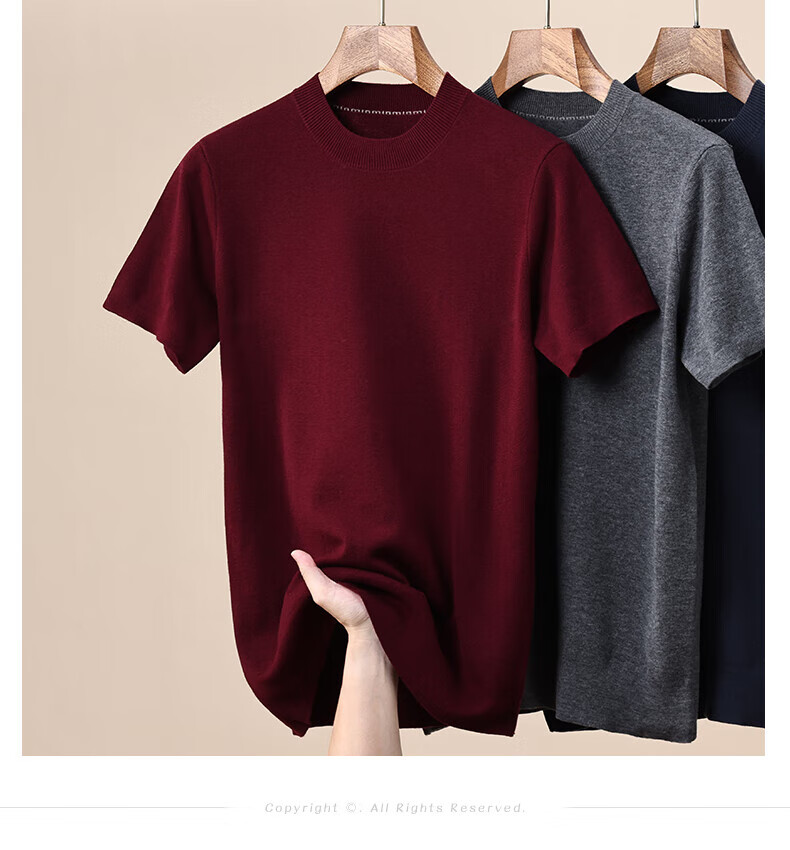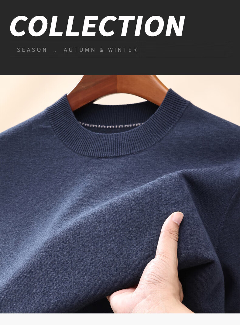 Hengyuanxiang 100% pure woolen sweater for men in autumn and winter new short-sleeved T-shirt for middle-aged and young people half-sleeved sweater knitted bottoming shirt for men black L 175/92A(110)