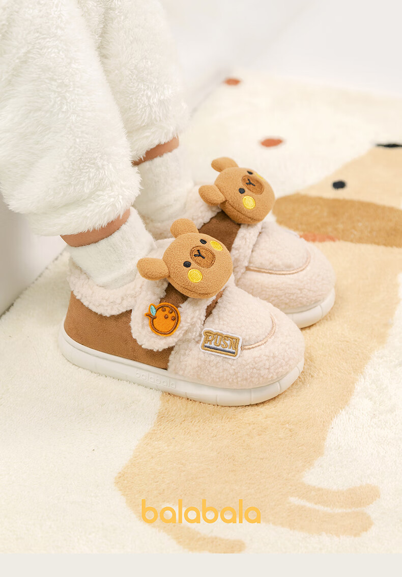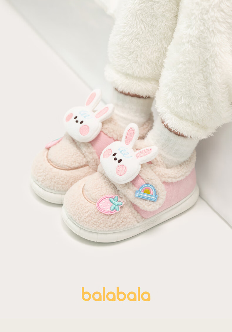 BALABALA Children's Cotton Shoes Boys 2025 New Winter Furry Shoes Girls Baby Thickened Velvet Winter Shoes Toddler Large Cotton Shoes Pink 22 Inner Length 14cm Suitable for Feet Length 13.5-14cm