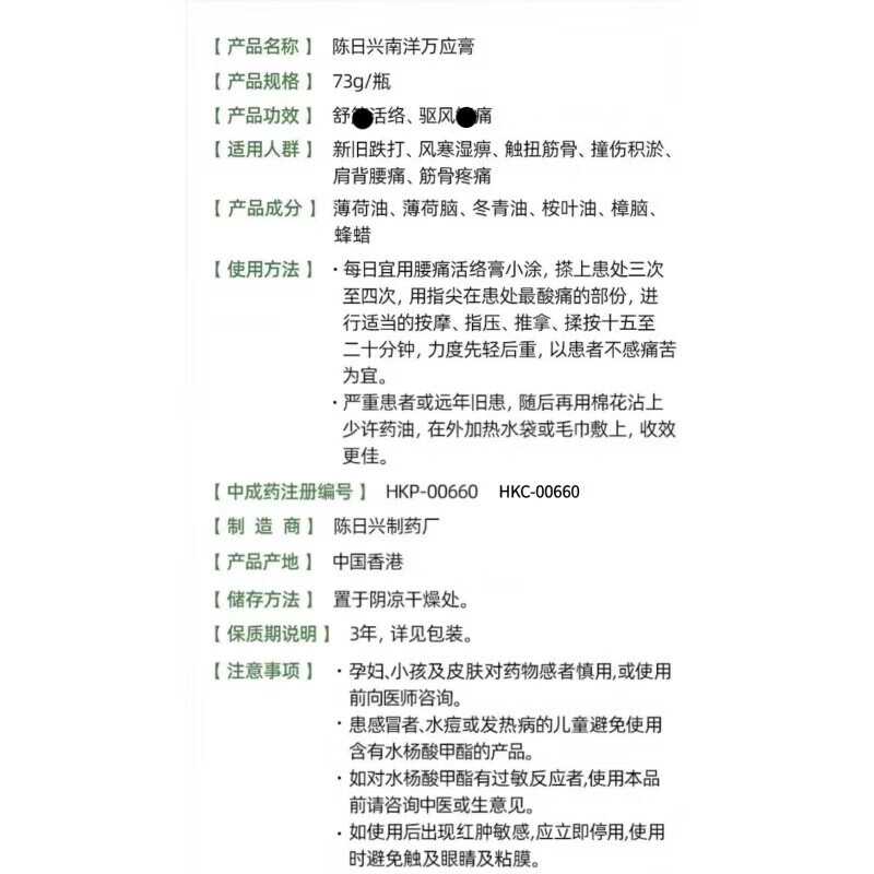 Chen Riching's authentic Hong Kong products. A variety of options. If you get a fake, you will lose 10%. In stock, it will be shipped quickly. Chen Riching's Nanyang Wanying Pain Cream 73g