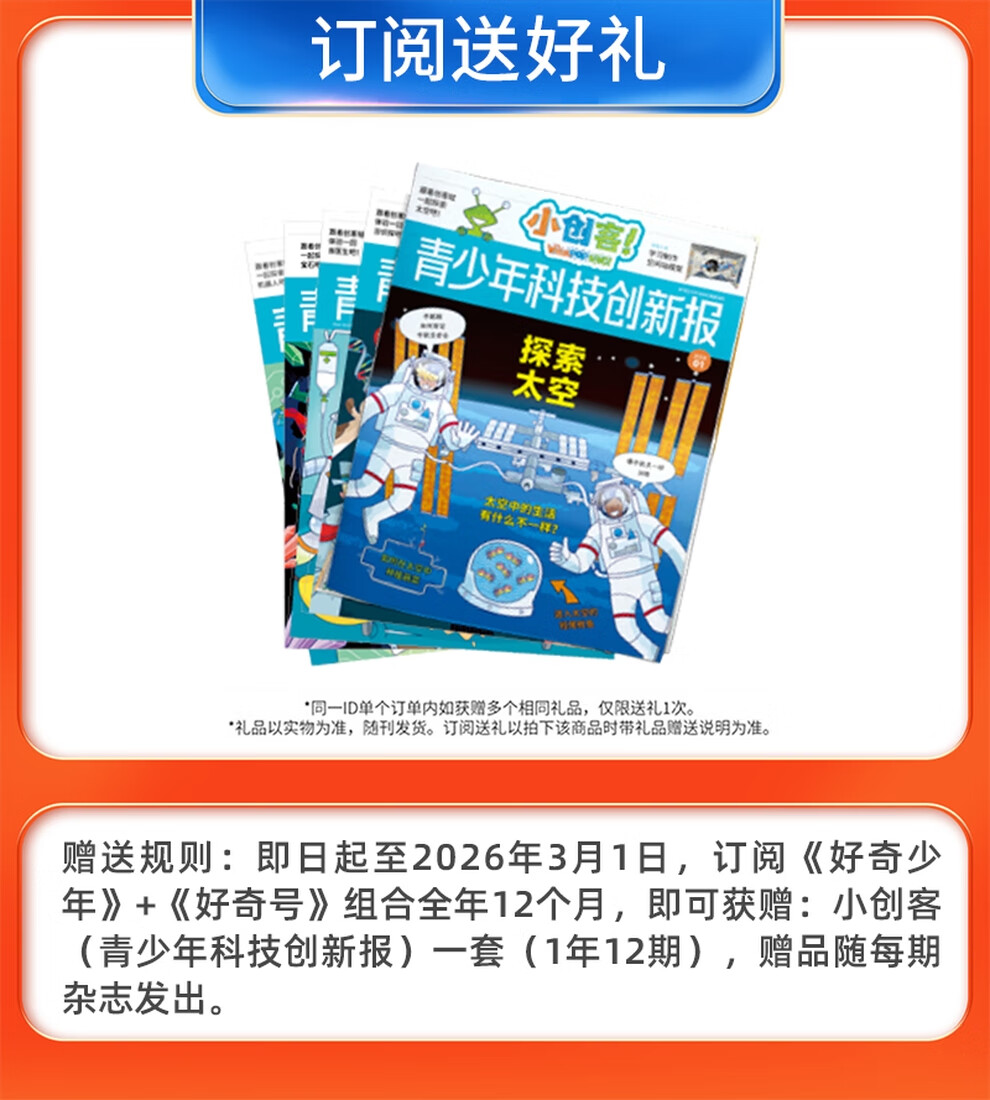Free stationery gift package Curiosity magazine combination, choose magazine store, 2026 Specifications are based on the minimum subscription month, 1 year, 12 months subscription, popular science encyclopedia for teenagers aged 6-12, general reading books, children's reading, primary school students' extracurricular reading books, teenagers' Chinese-English bilingual, Curiosity + Knowledge Planet + Youth Humanities Geography 2