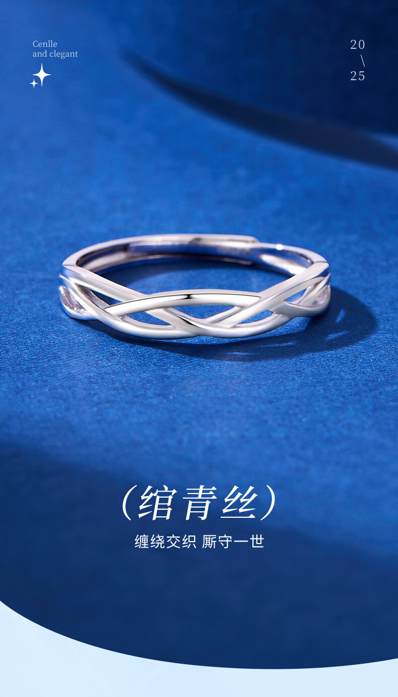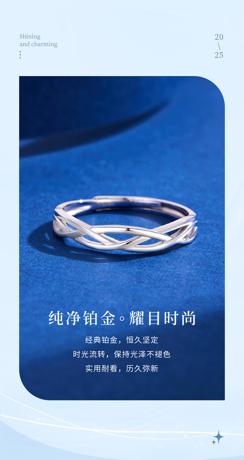 China Gold (CHINA GOLD) PT950 platinum blue silk ring for men and women platinum couple ring Valentine's Day birthday gift for girlfriend and wife Platinum blue silk ring - women's model about 1.9g
