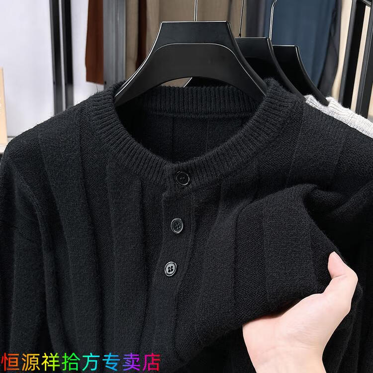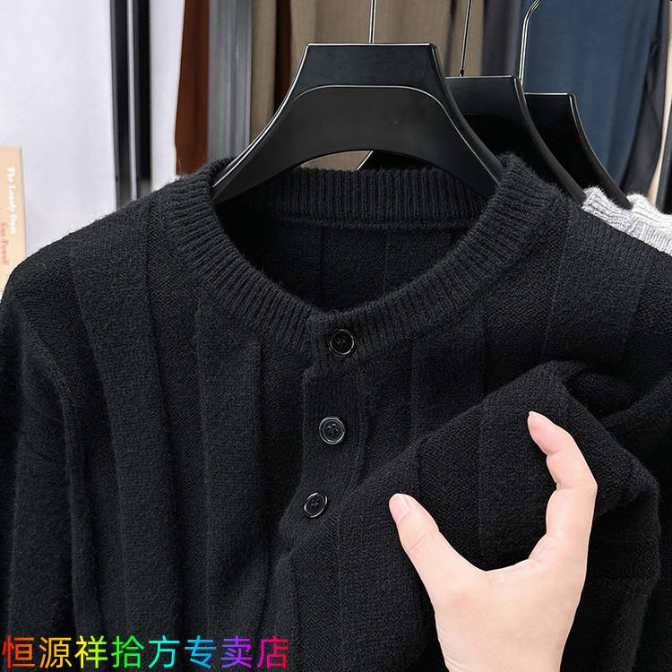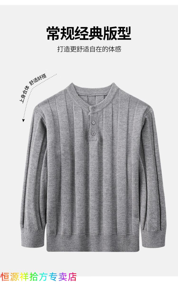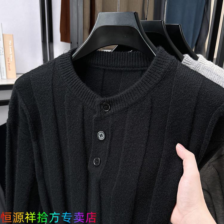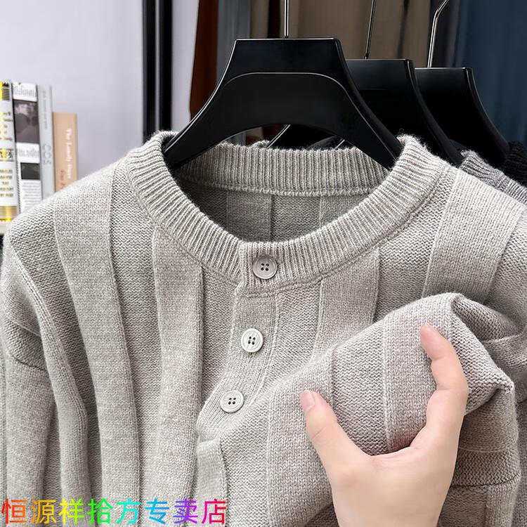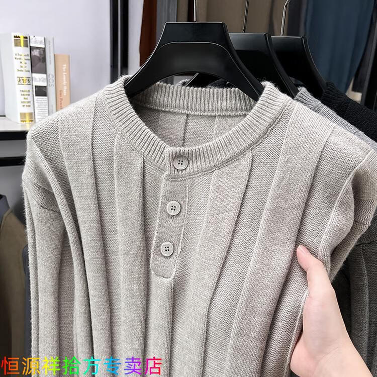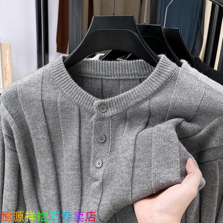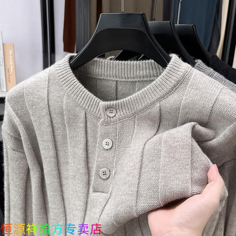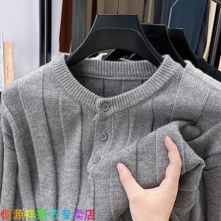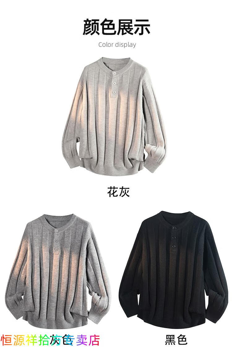 Hengyuanxiang's new autumn style high-end simple pit Henry collar long-sleeved sweater for men and women loose casual versatile sweater trend light gray M
