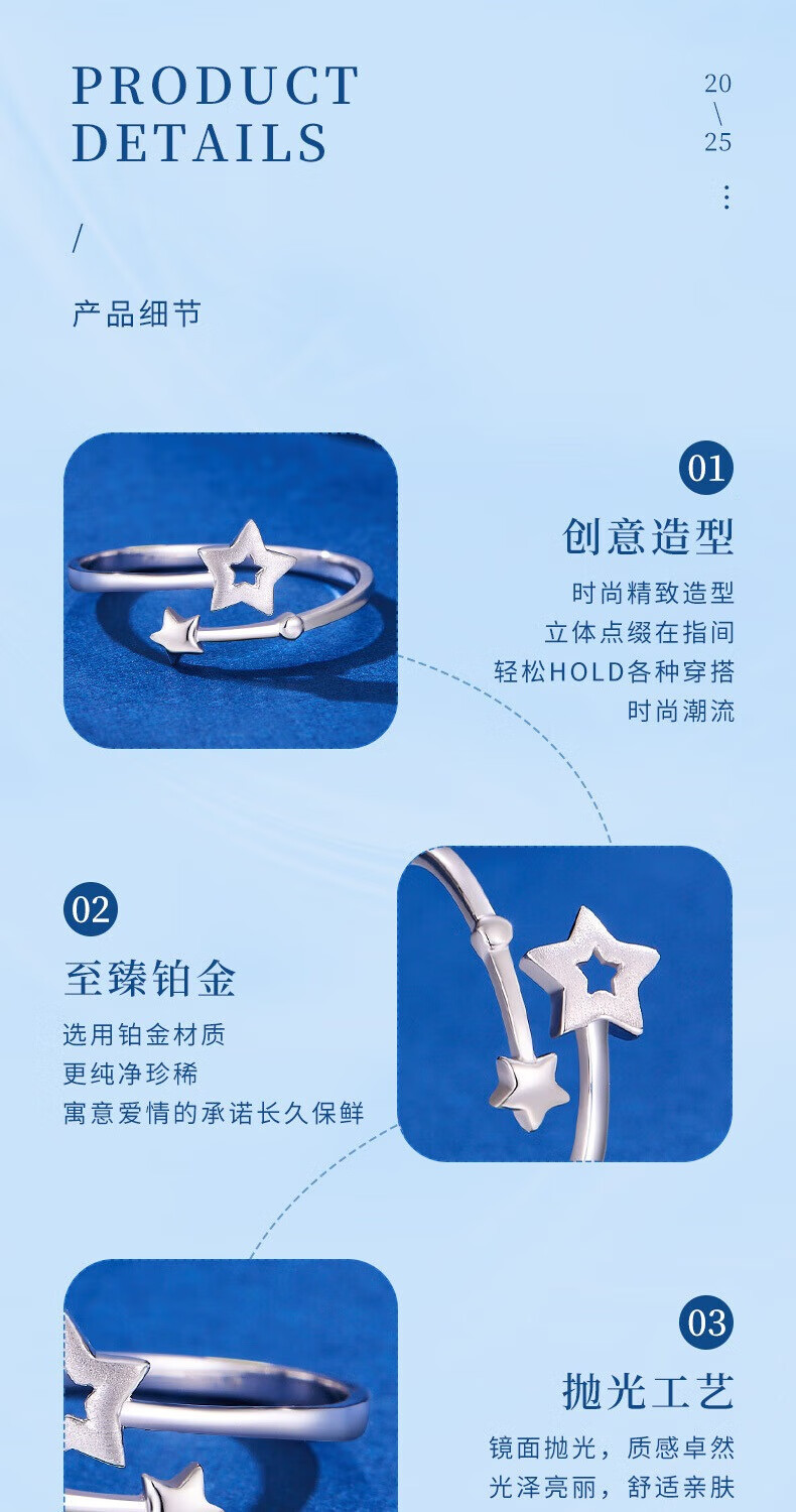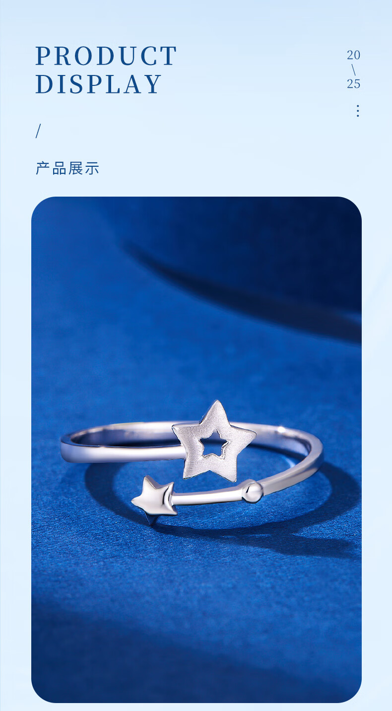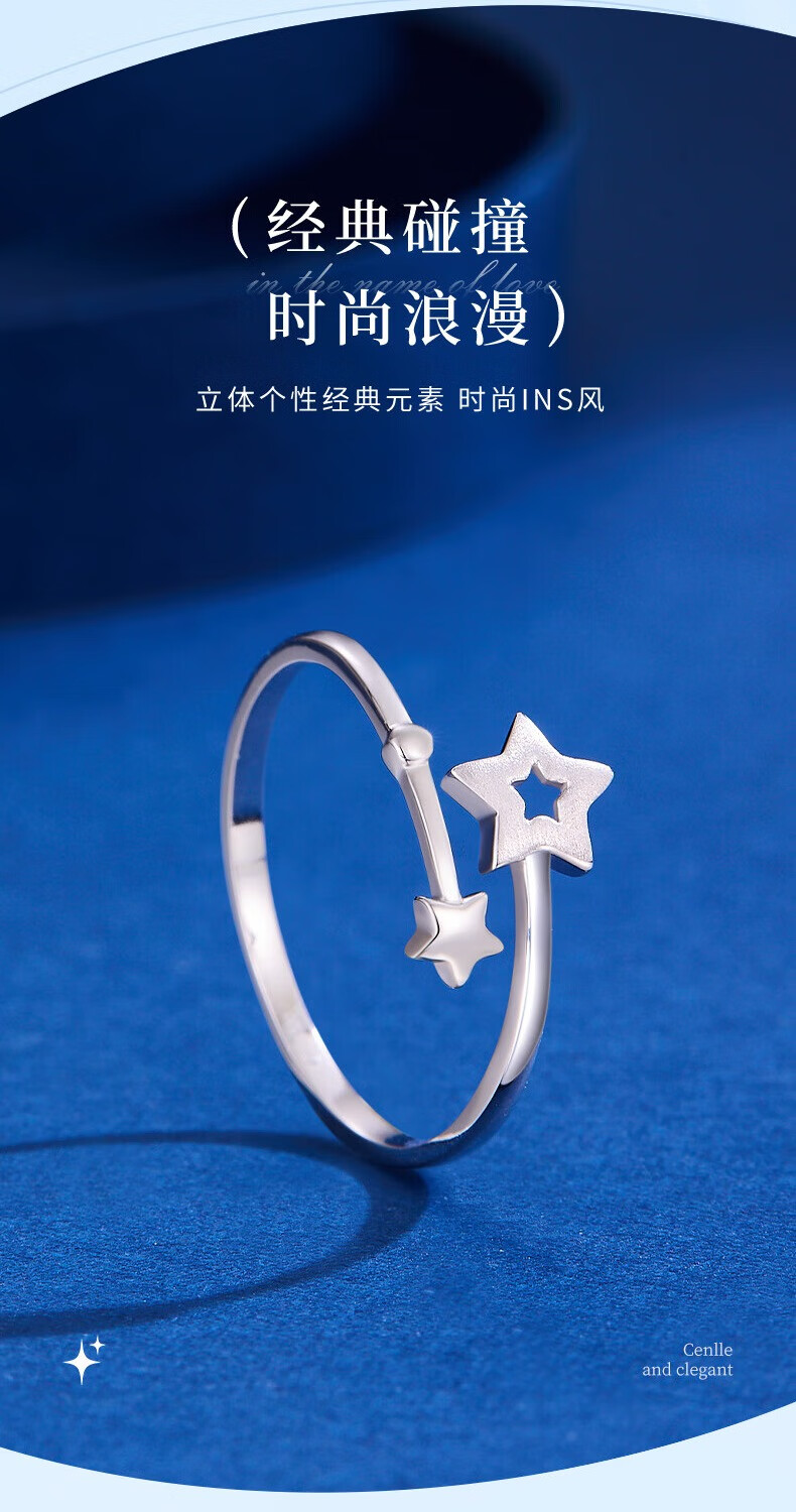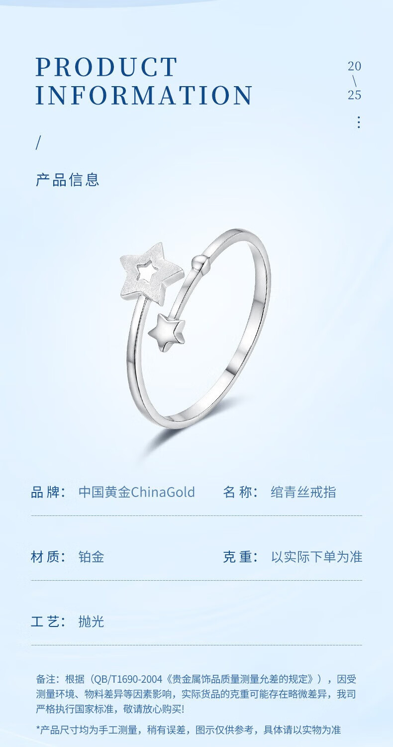 CHINA GOLD PT950 Platinum Star Track Ring Women's Exquisite Star Ring Valentine's Day Birthday Gift for Girlfriend Platinum Star Track Ring About 2g