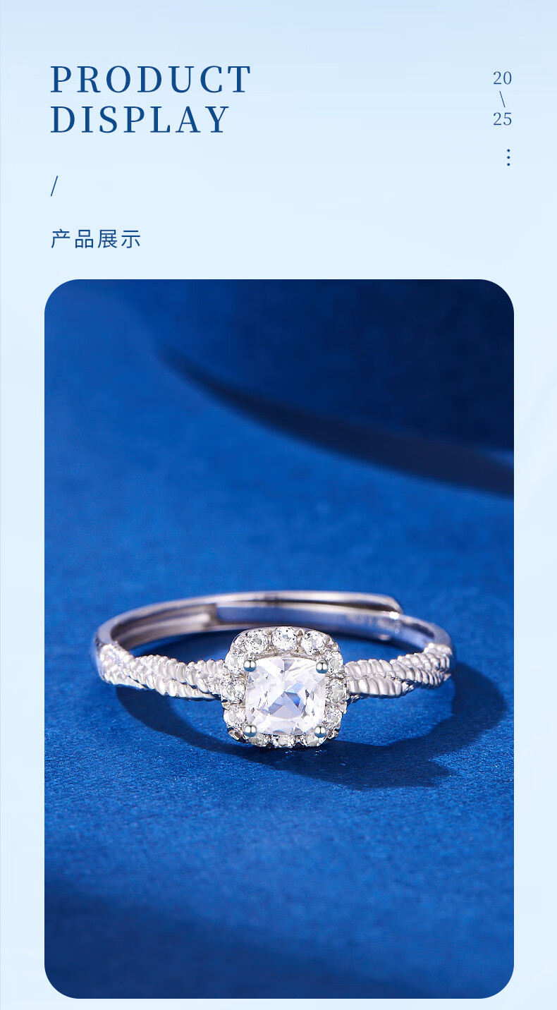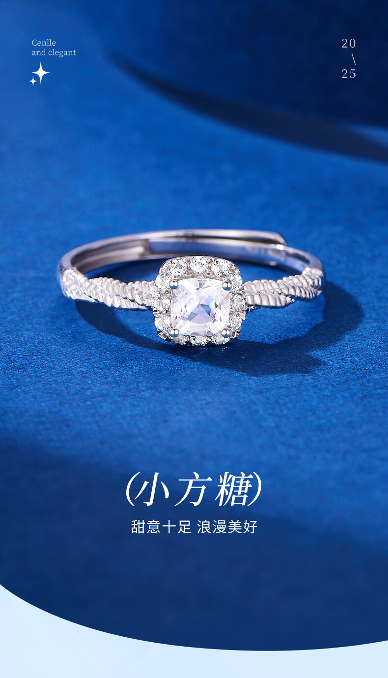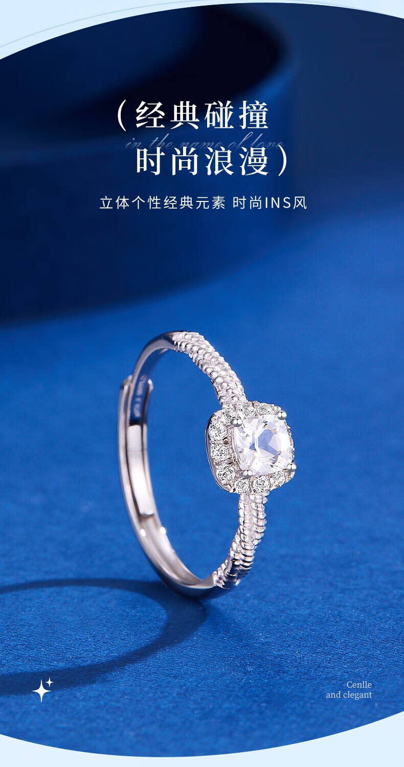 CHINA GOLD PT950 platinum sugar cube ring for women, high-end platinum finger, Valentine's Day birthday gift for girlfriend and wife, platinum sugar cube ring, about 2.1g