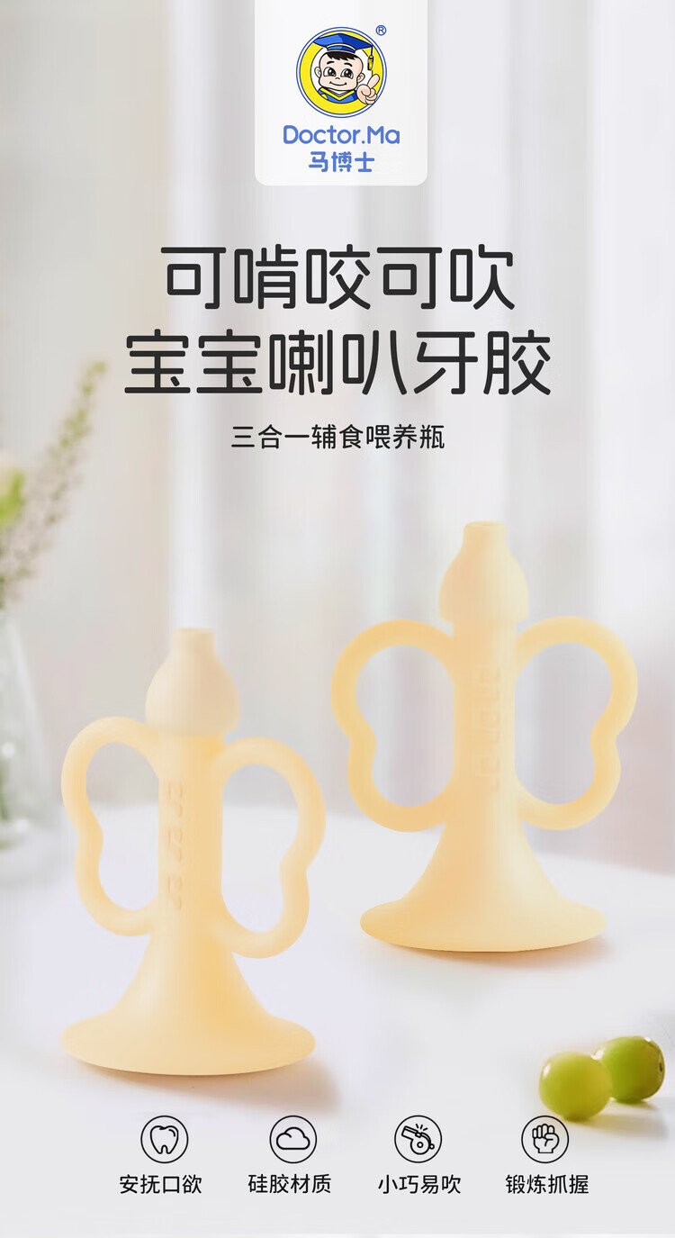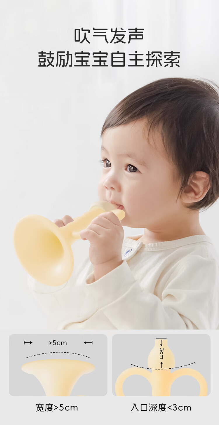 DOCTOR MA baby trumpet teether toy, mini blowable soft silicone musical instrument for babies over 3 months old, nano-color trumpet teether, 1 pack