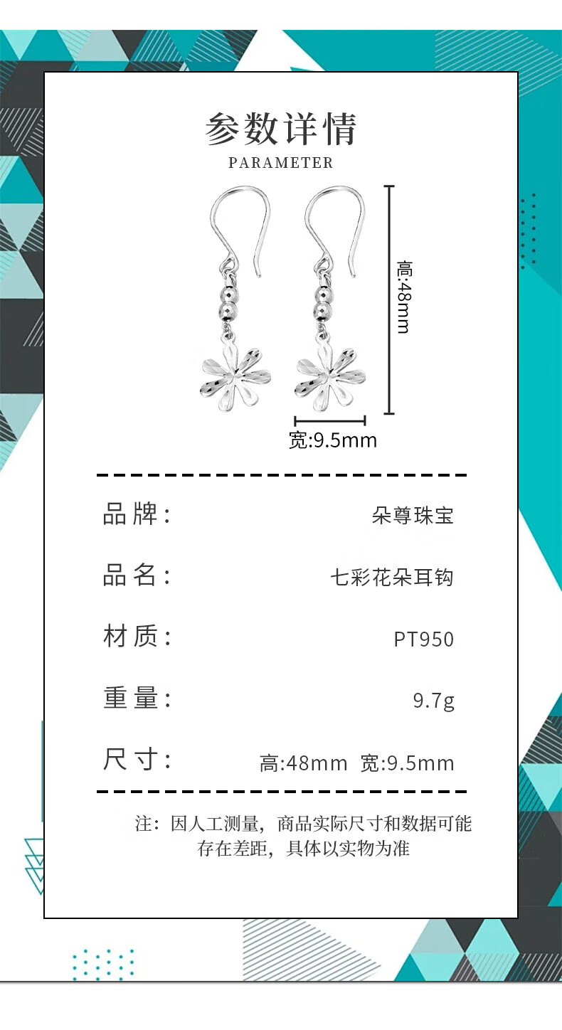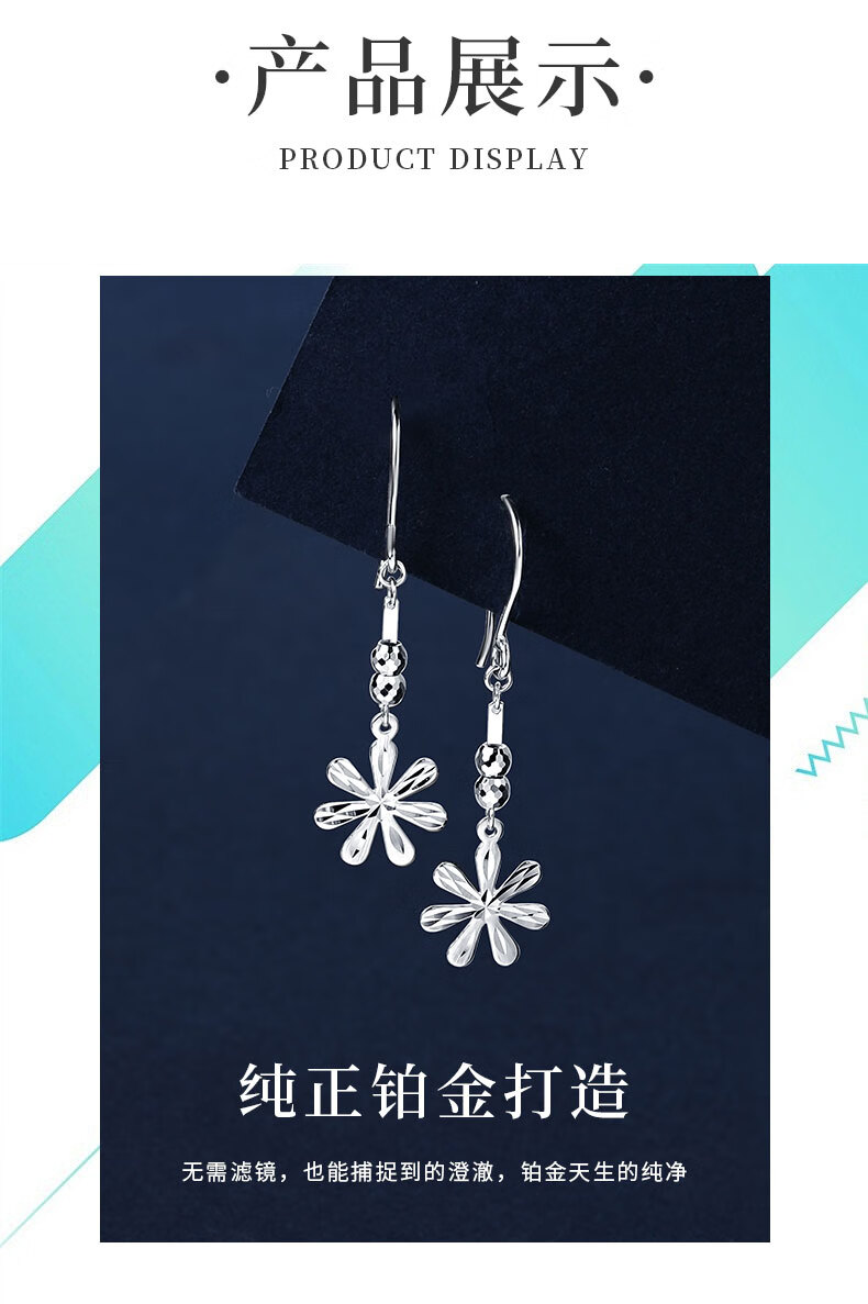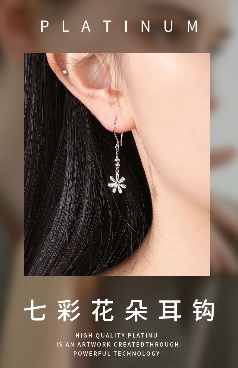Duozun pt950 genuine platinum earrings for women, platinum earrings, colorful flower ear hooks, new earrings, birthday gifts, colorful flower ear hooks 1.97 g (pair)