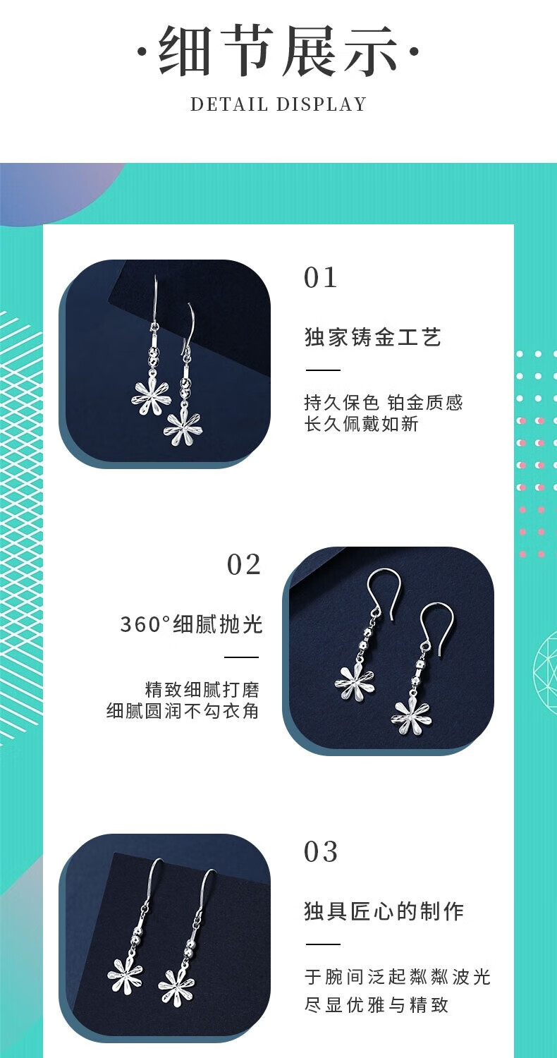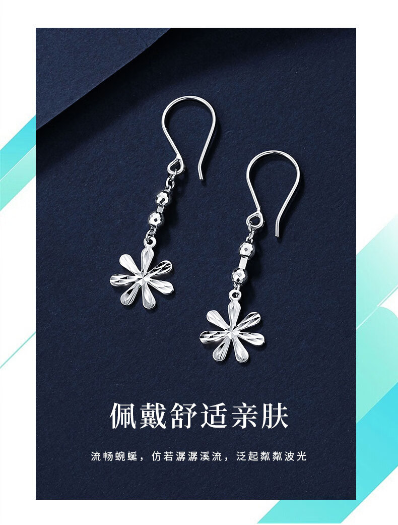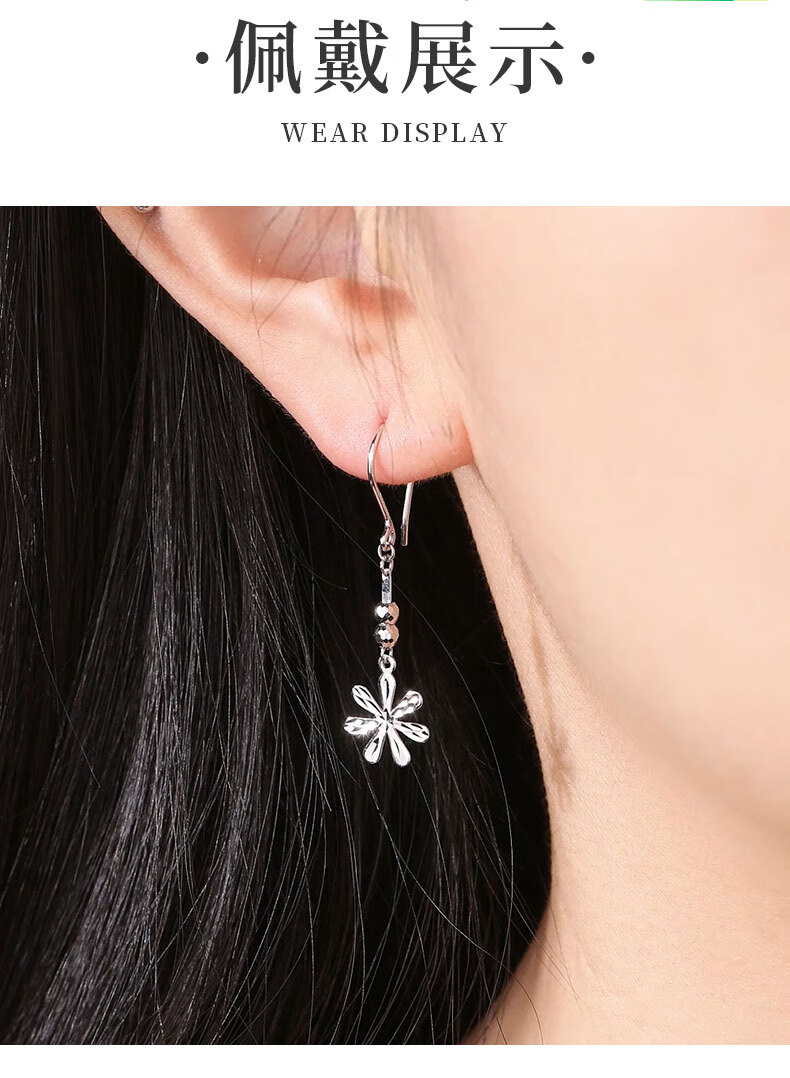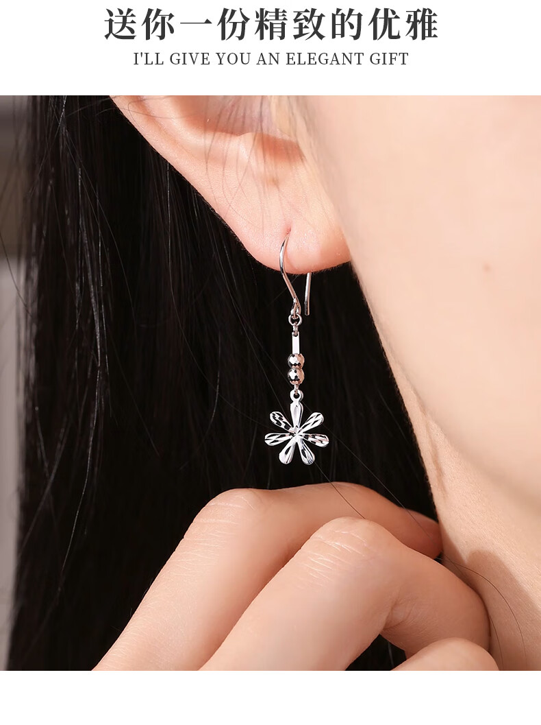 Duozun pt950 genuine platinum earrings for women, platinum earrings, colorful flower ear hooks, new earrings, birthday gifts, colorful flower ear hooks 1.97 g (pair)