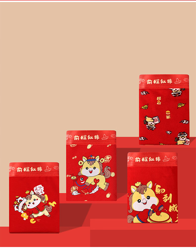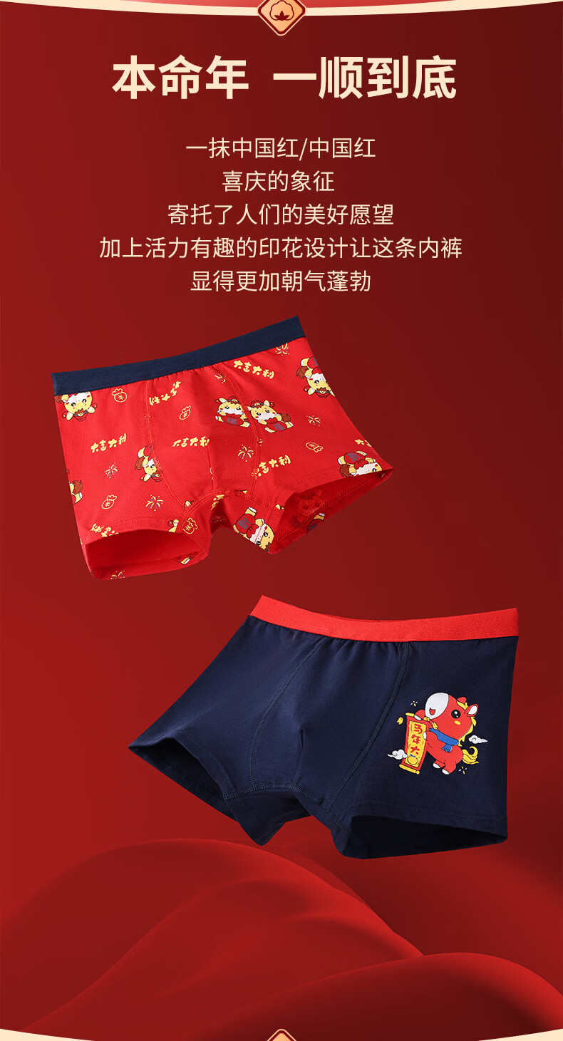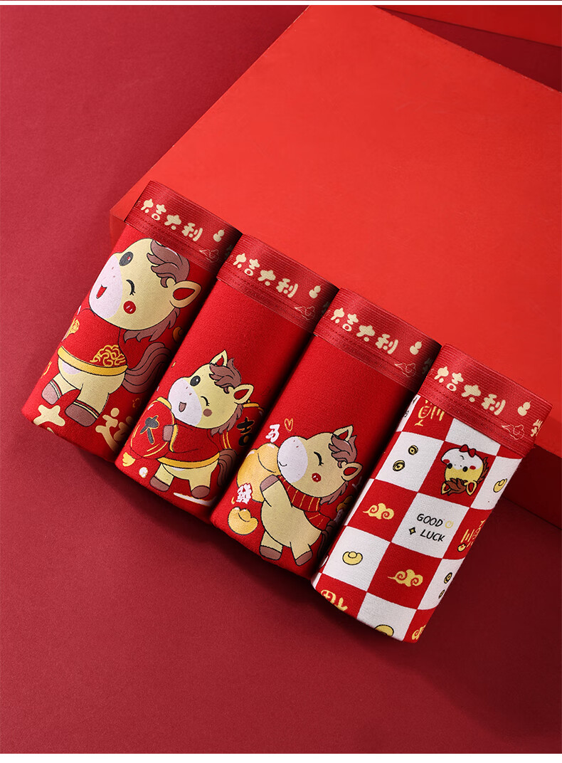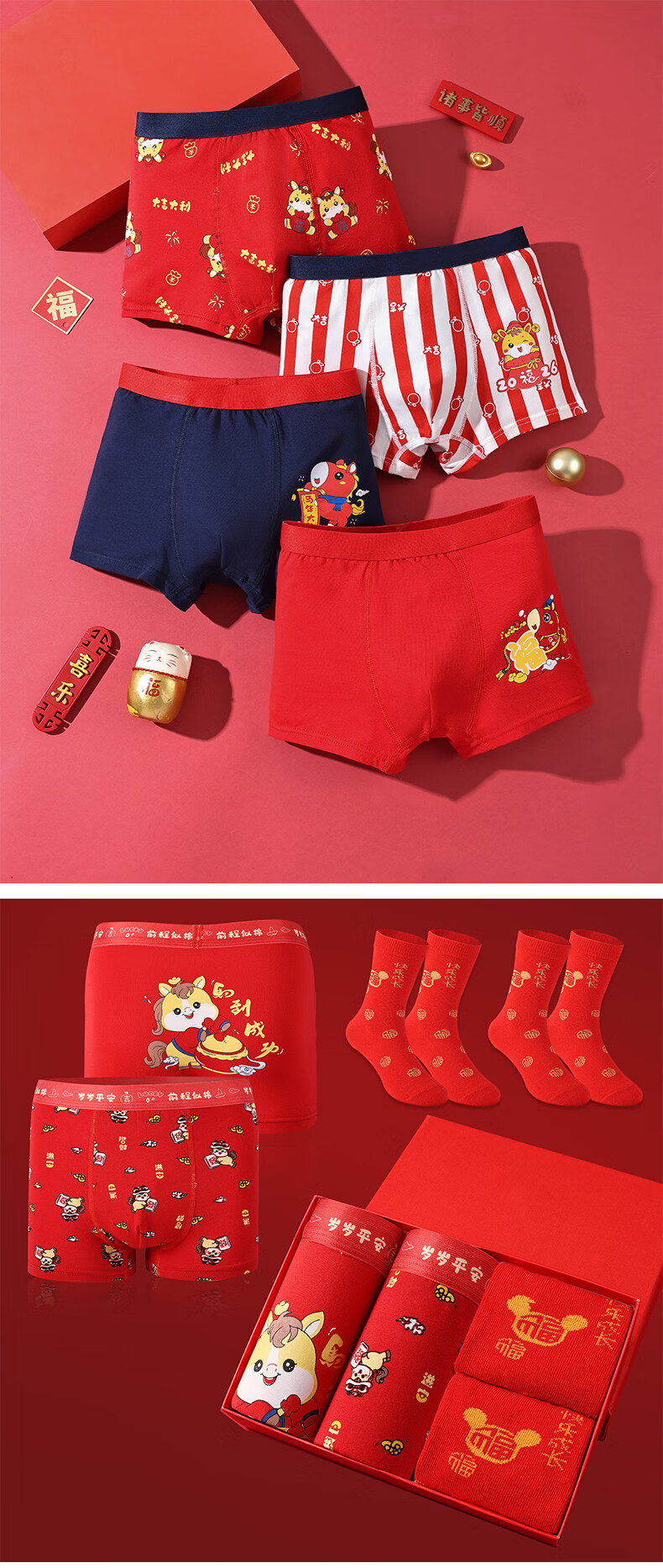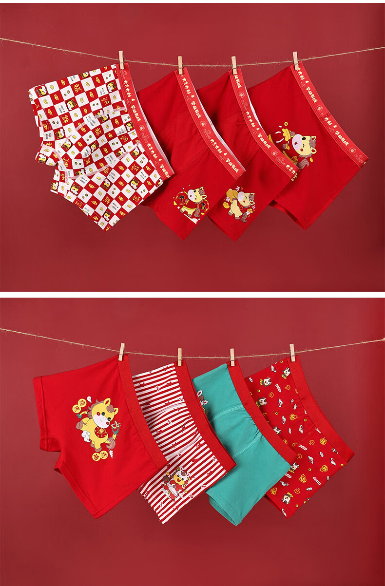Catman children's zodiac year underwear for boys, red pure cotton boxer shorts, new year of the horse, boys, big boys and baby boxer briefs, immediate success, Class A pure cotton 10A antibacterial, 4 pairs 170, recommended height 155-165cm, weight 70-85 Jin Jin equals 0.5 kg