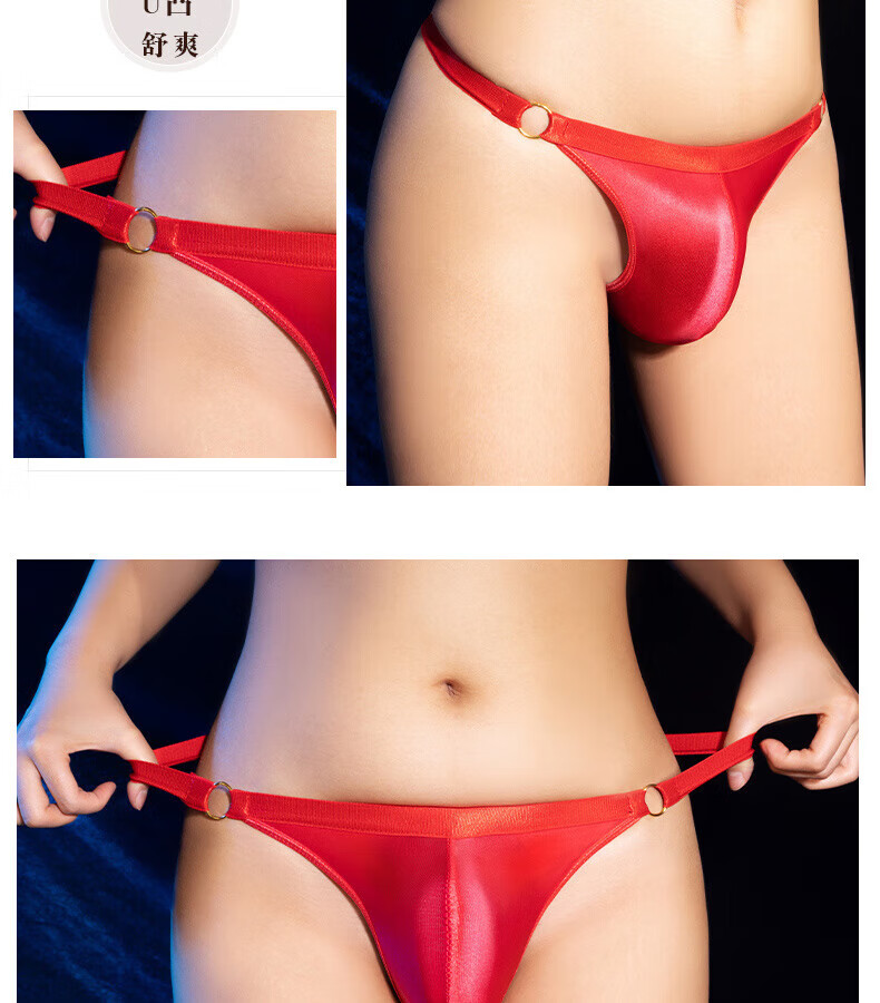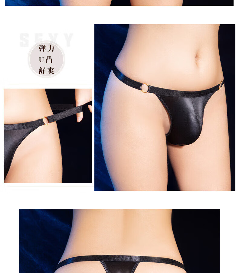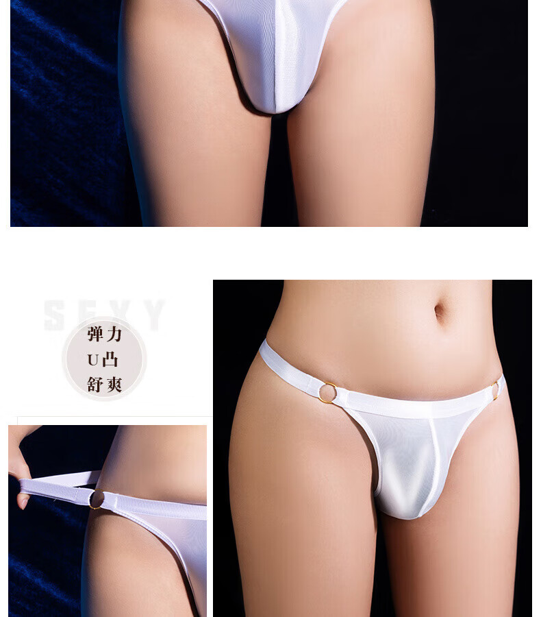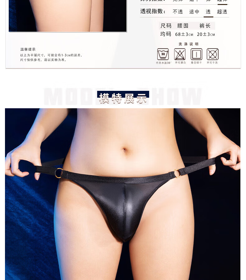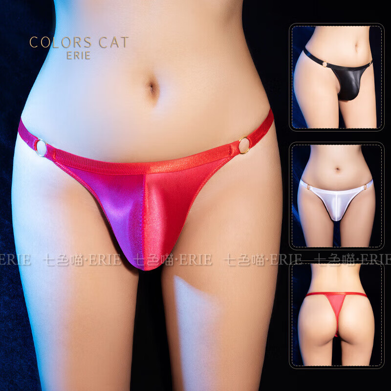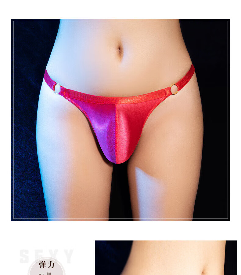 Close-fitting design, sexy men's oily and silky one-line strapless sexy thong with balls, transvestite pervert, black_thong, one size fits all_suitable for waist 74-84CM
