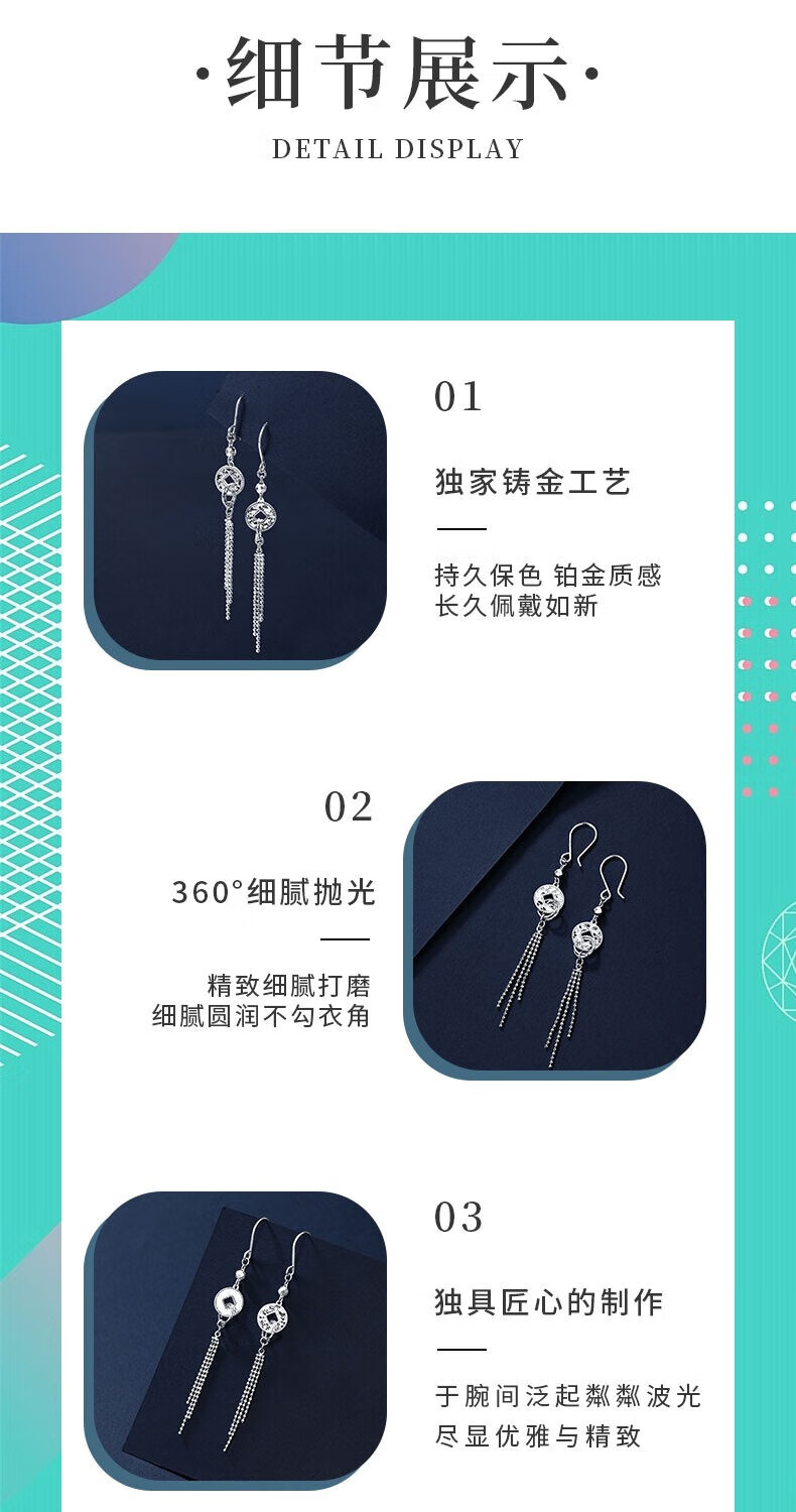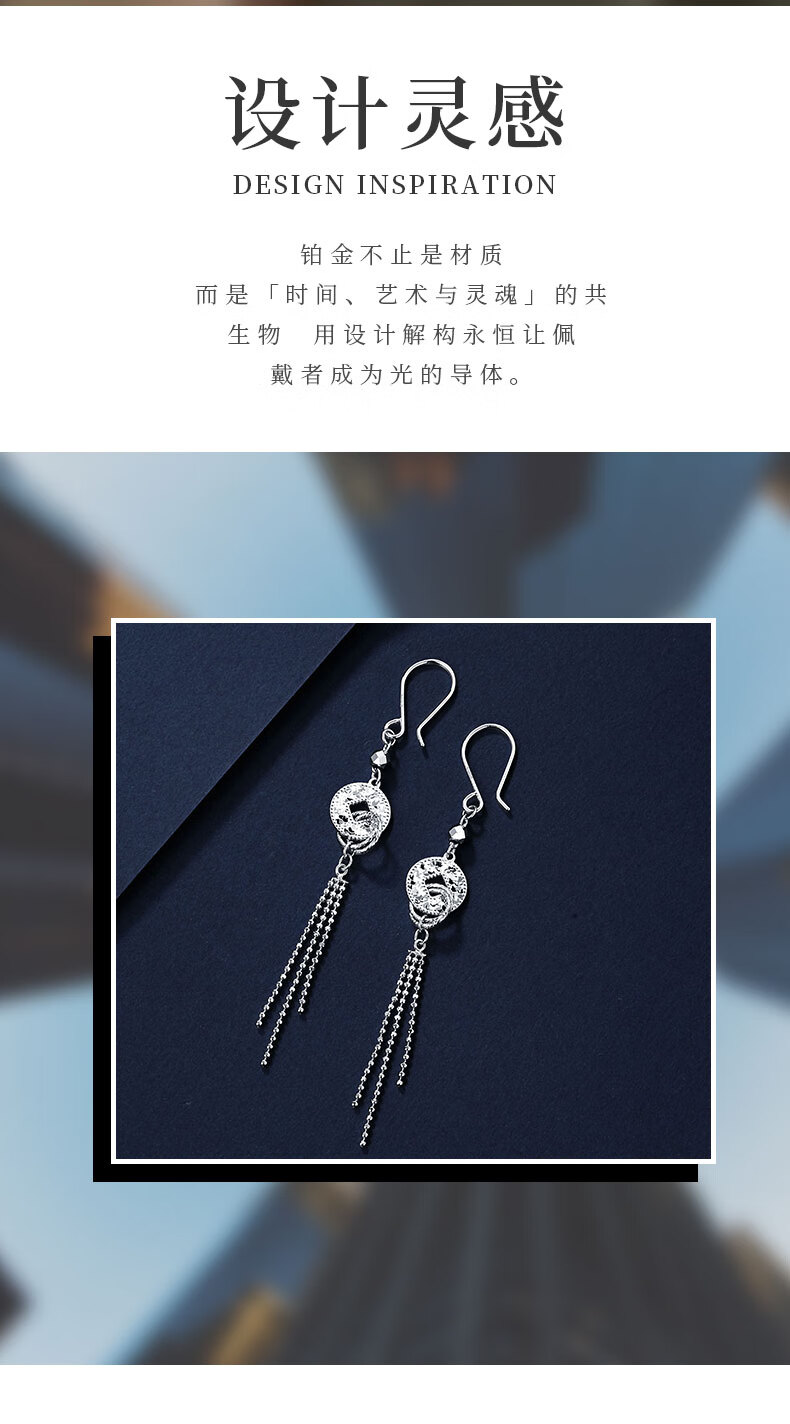 Duozun pt950 genuine platinum earrings for women, long coin tassel ear hooks, platinum earrings, new earrings for gifts, coin tassel ear hooks, 3.79 g, one pair