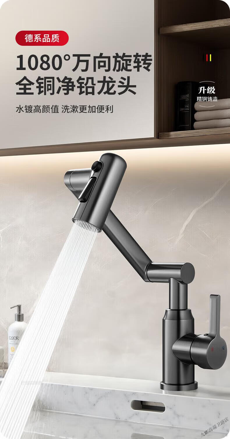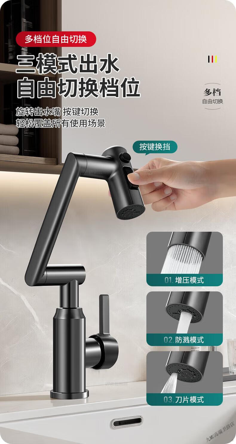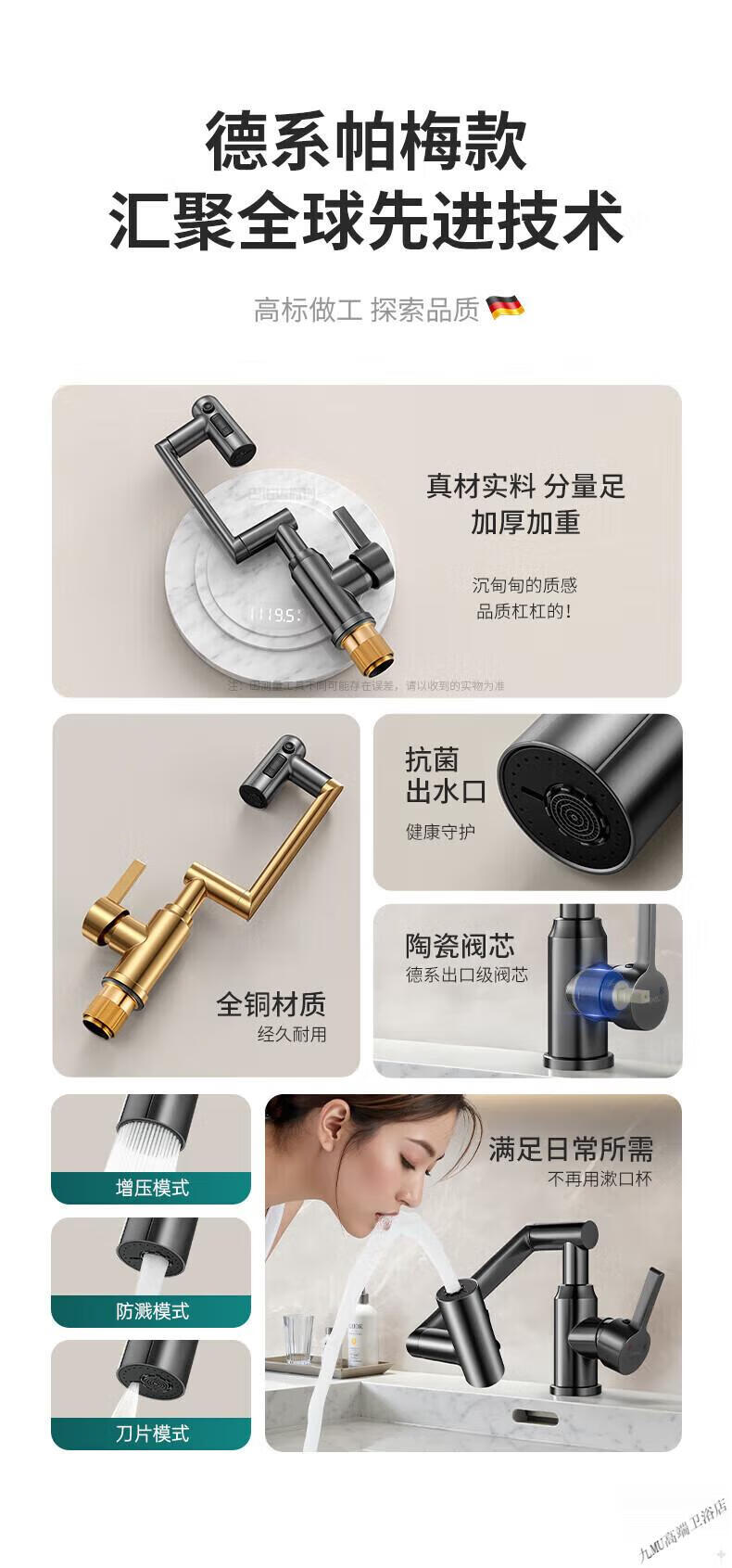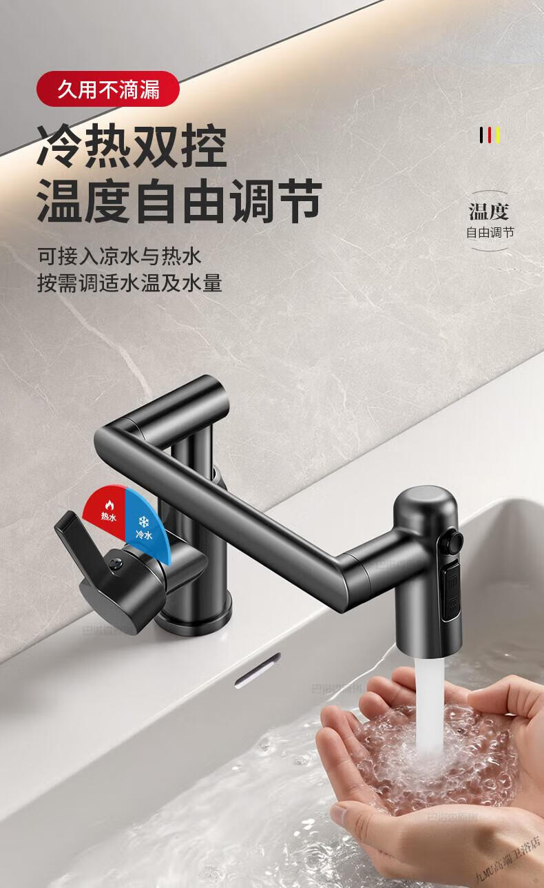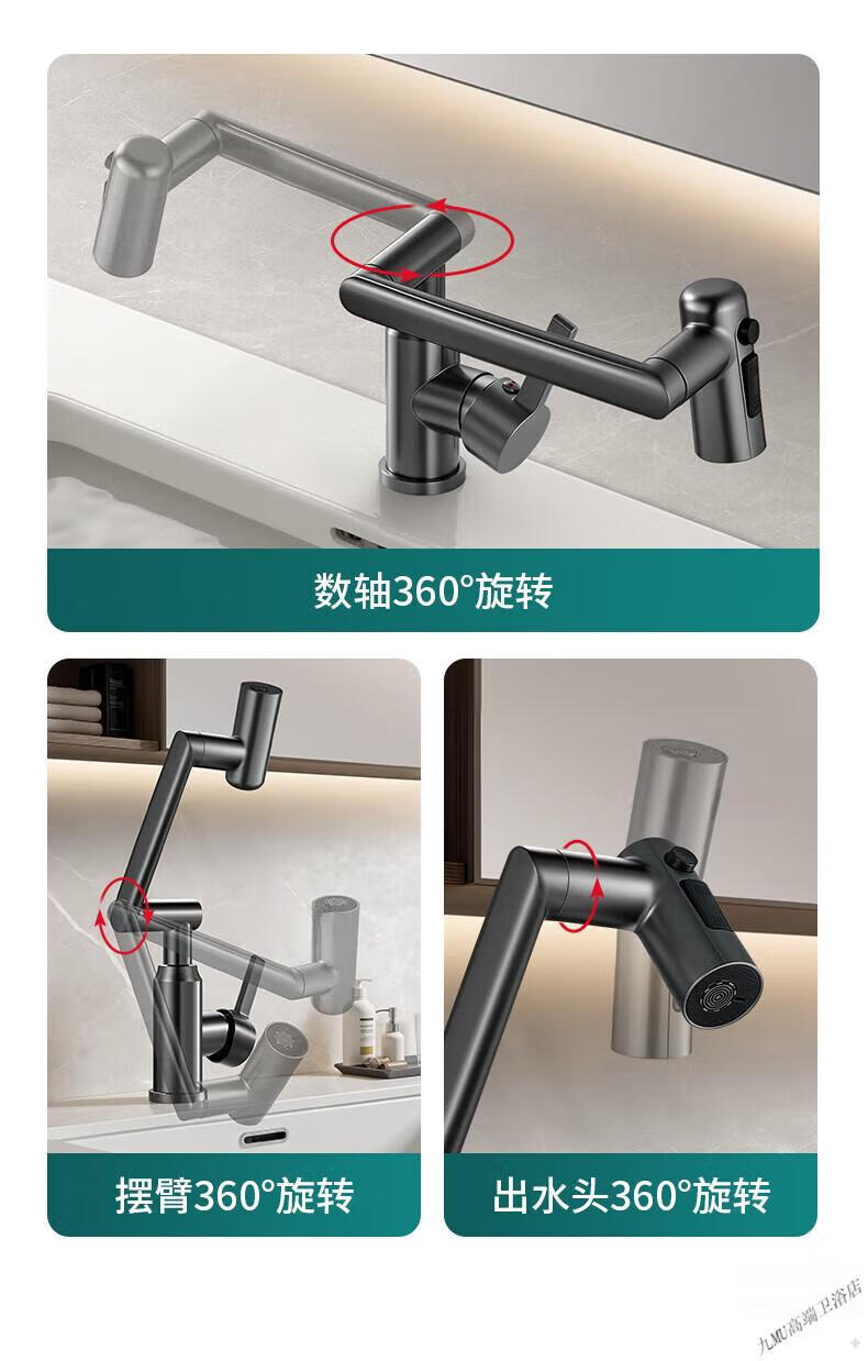 JOMOO official flagship all-copper universal mechanical arm basin faucet hot and cold water two-in-one bathroom cabinet splash-proof all-copper thickening gun gray GROHE model three-speed water outlet universal rotation