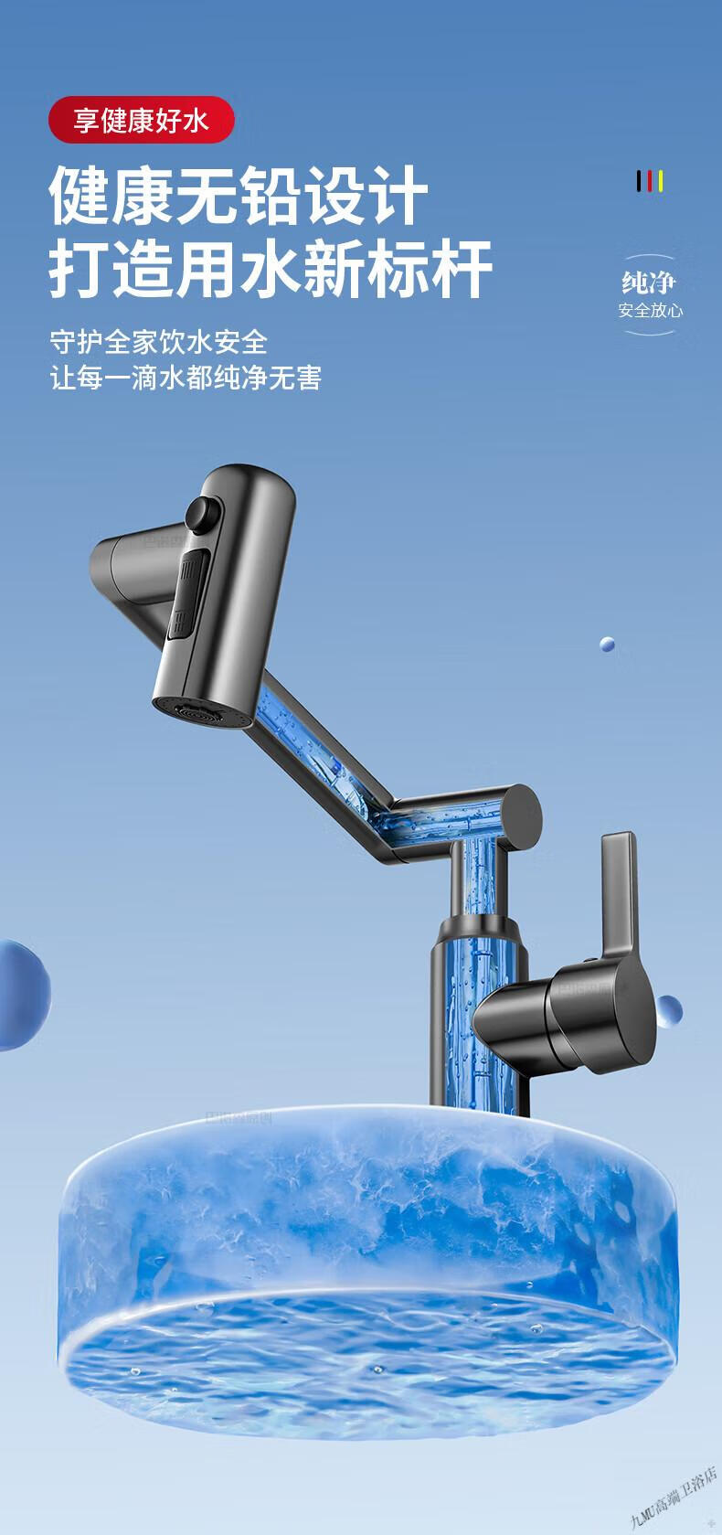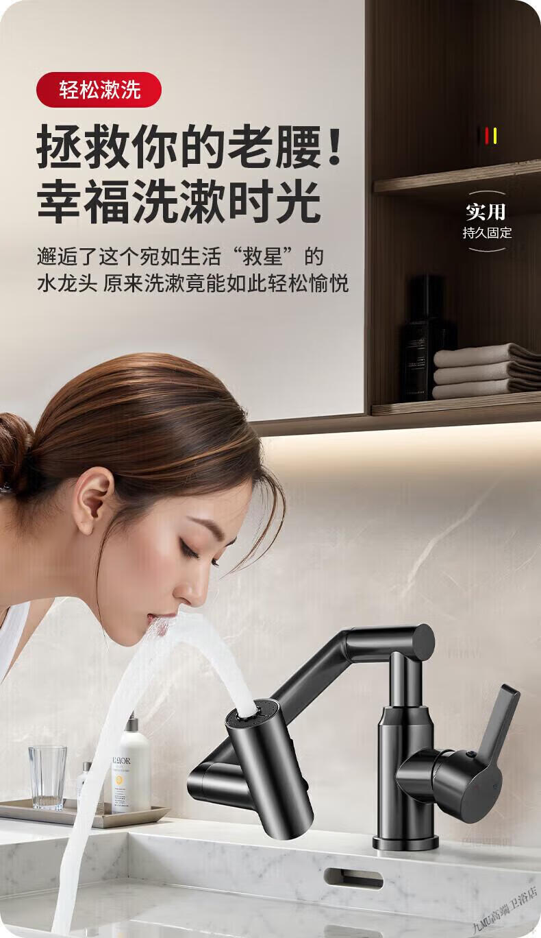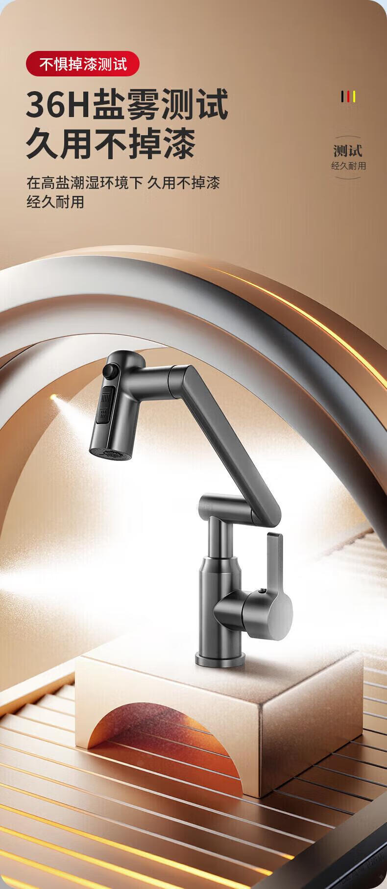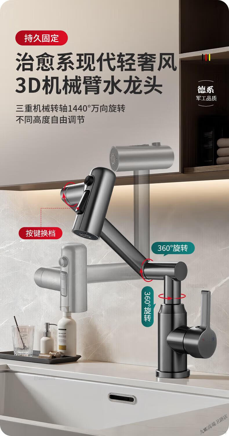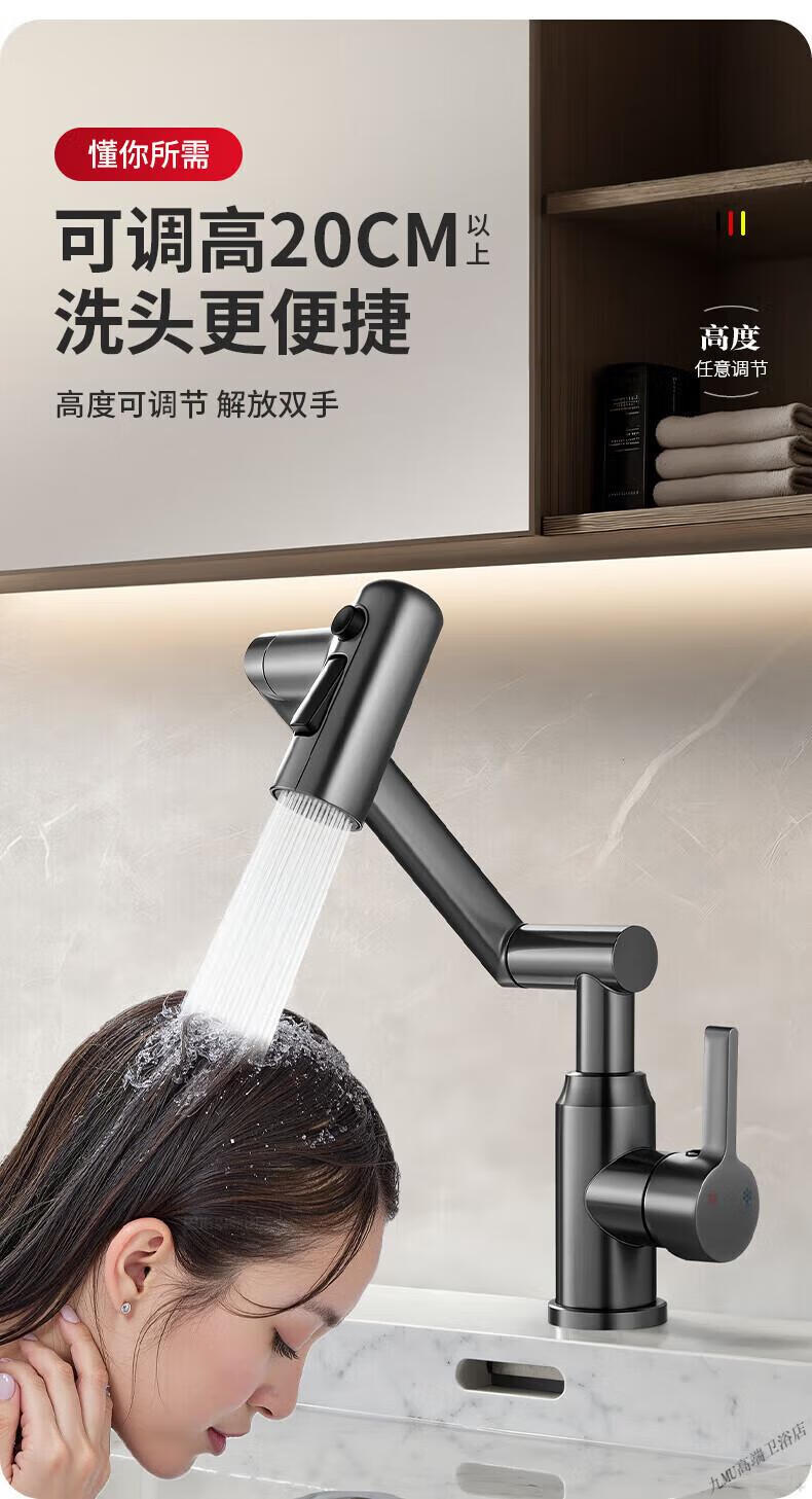 JOMOO official flagship all-copper universal mechanical arm basin faucet hot and cold water two-in-one bathroom cabinet splash-proof all-copper thickening gun gray GROHE model three-speed water outlet universal rotation