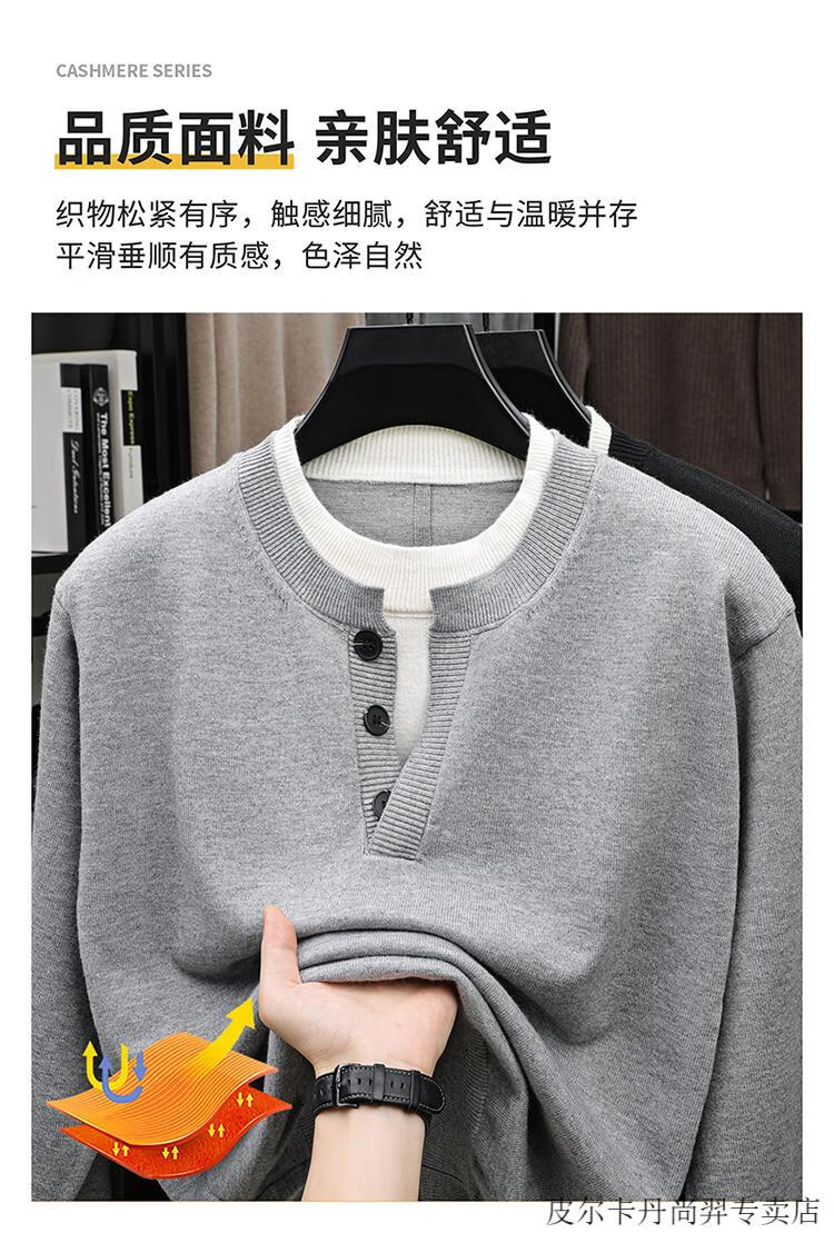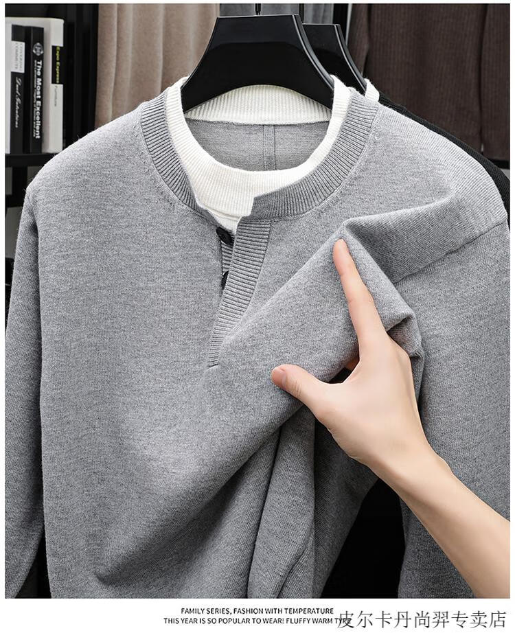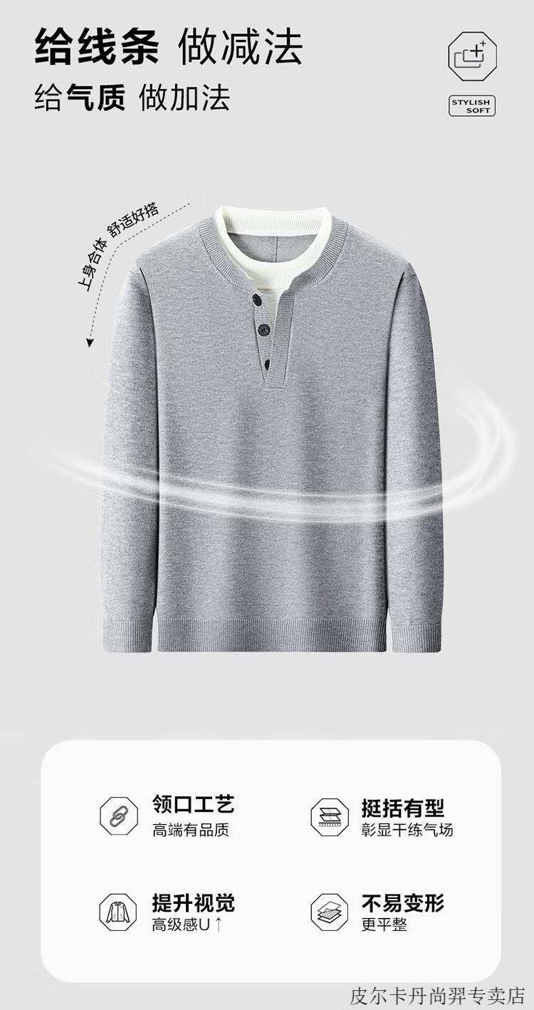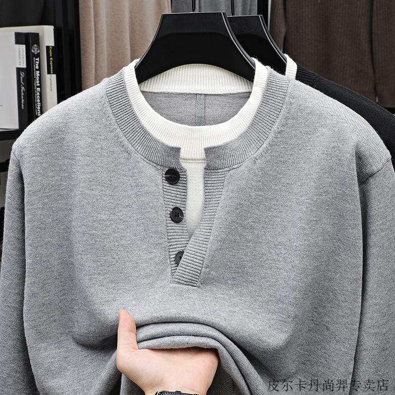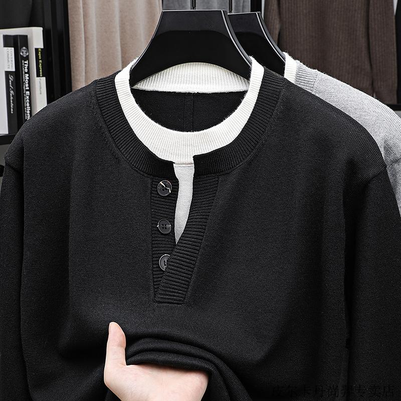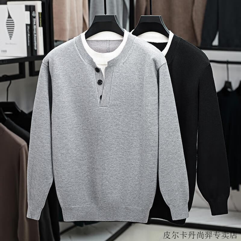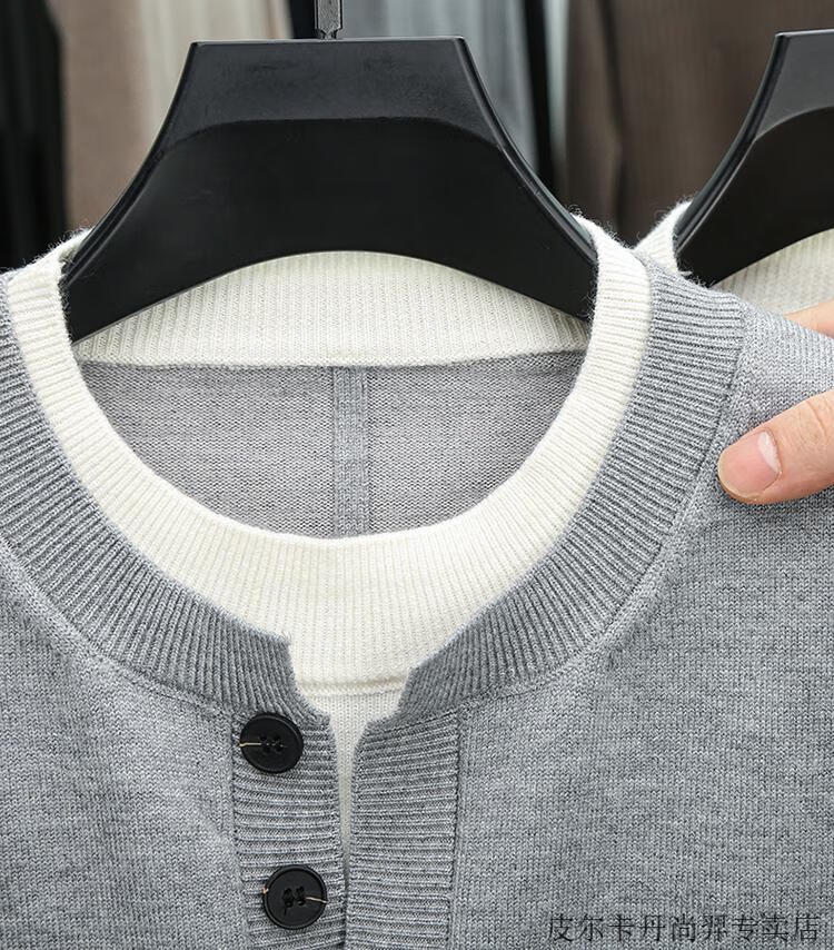 Pierre Cardin (pierre cardin) American retro fake two-piece Henry collar contrasting color sweater old money style lazy loose stacked small round neck sweater for men gray 2XL 180 suitable for 150-165Jin Jin is equal to 0.5 kg