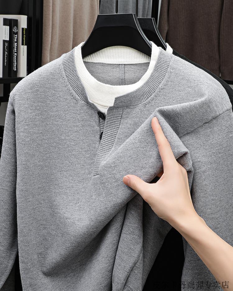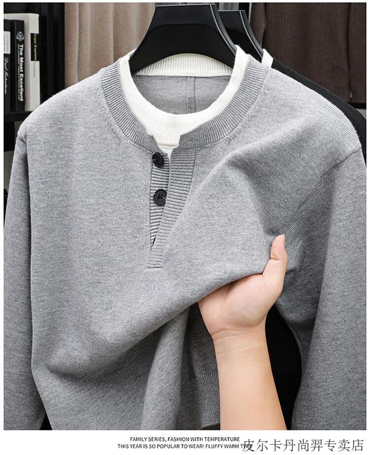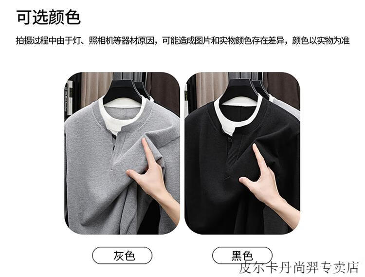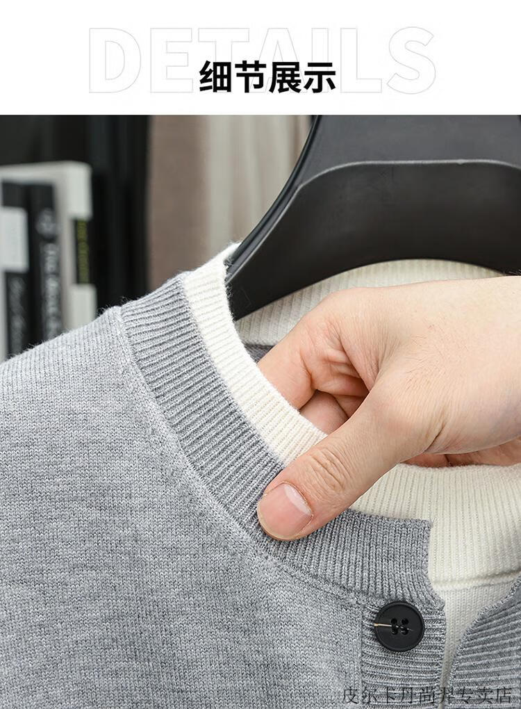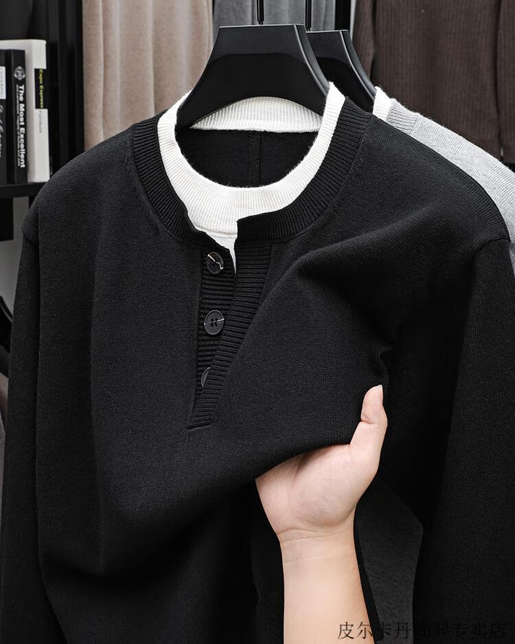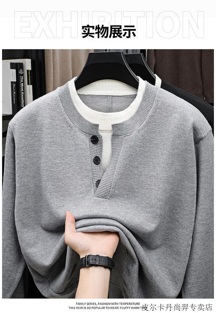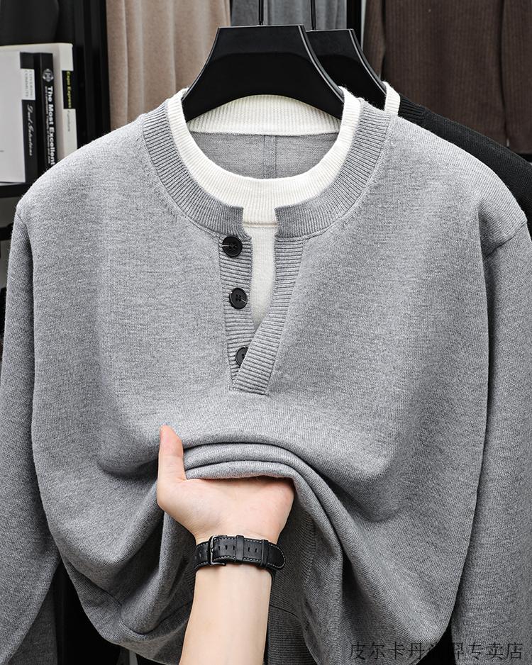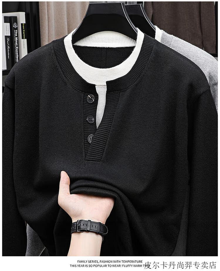 Pierre Cardin (pierre cardin) American retro fake two-piece Henry collar contrasting color sweater old money style lazy loose stacked small round neck sweater for men gray 2XL 180 suitable for 150-165Jin Jin is equal to 0.5 kg