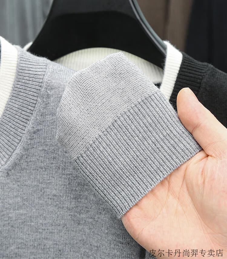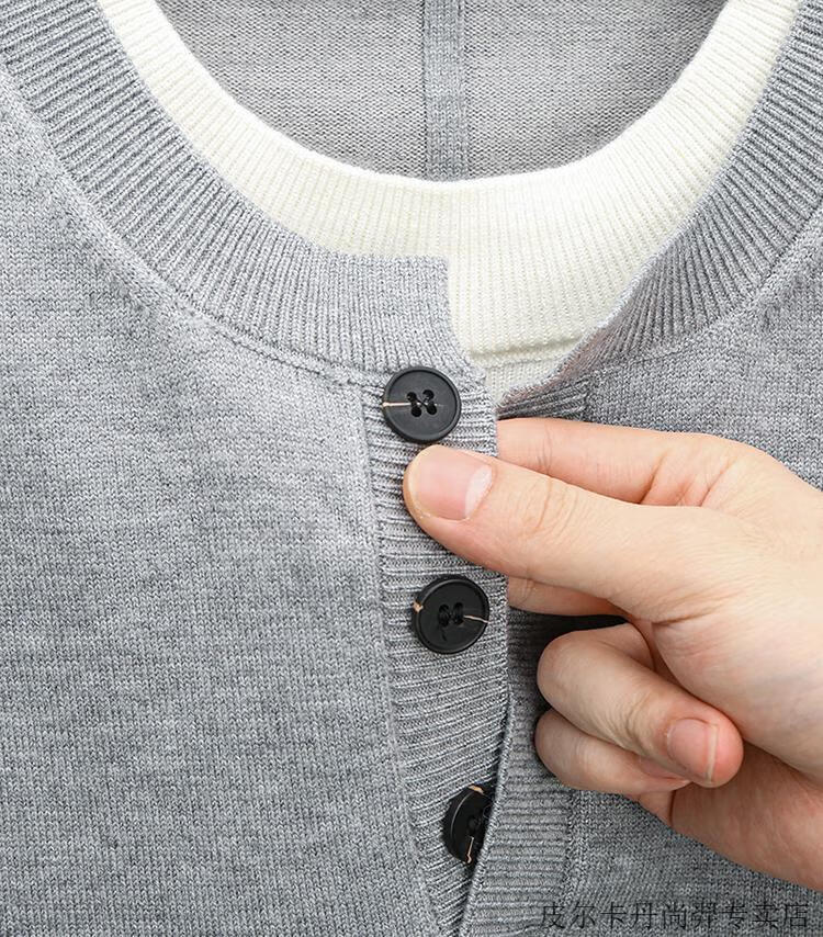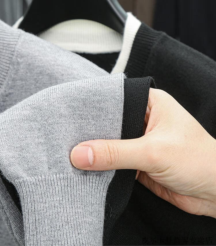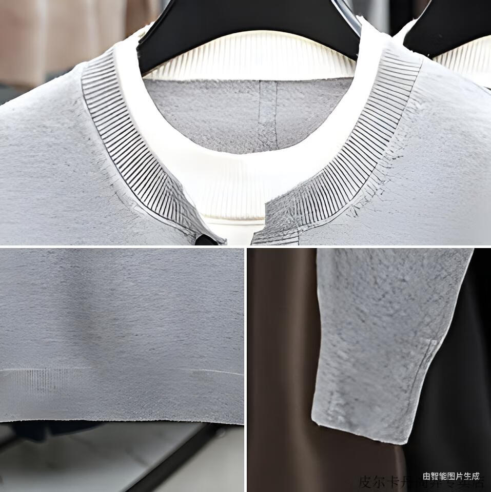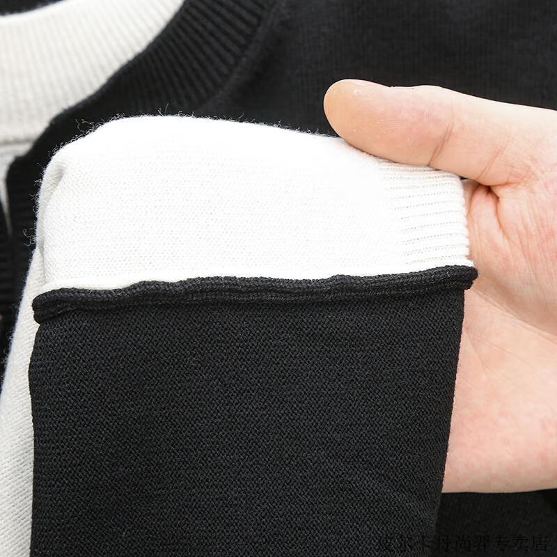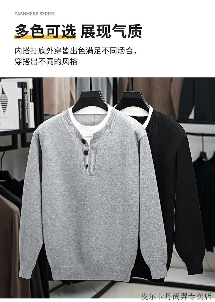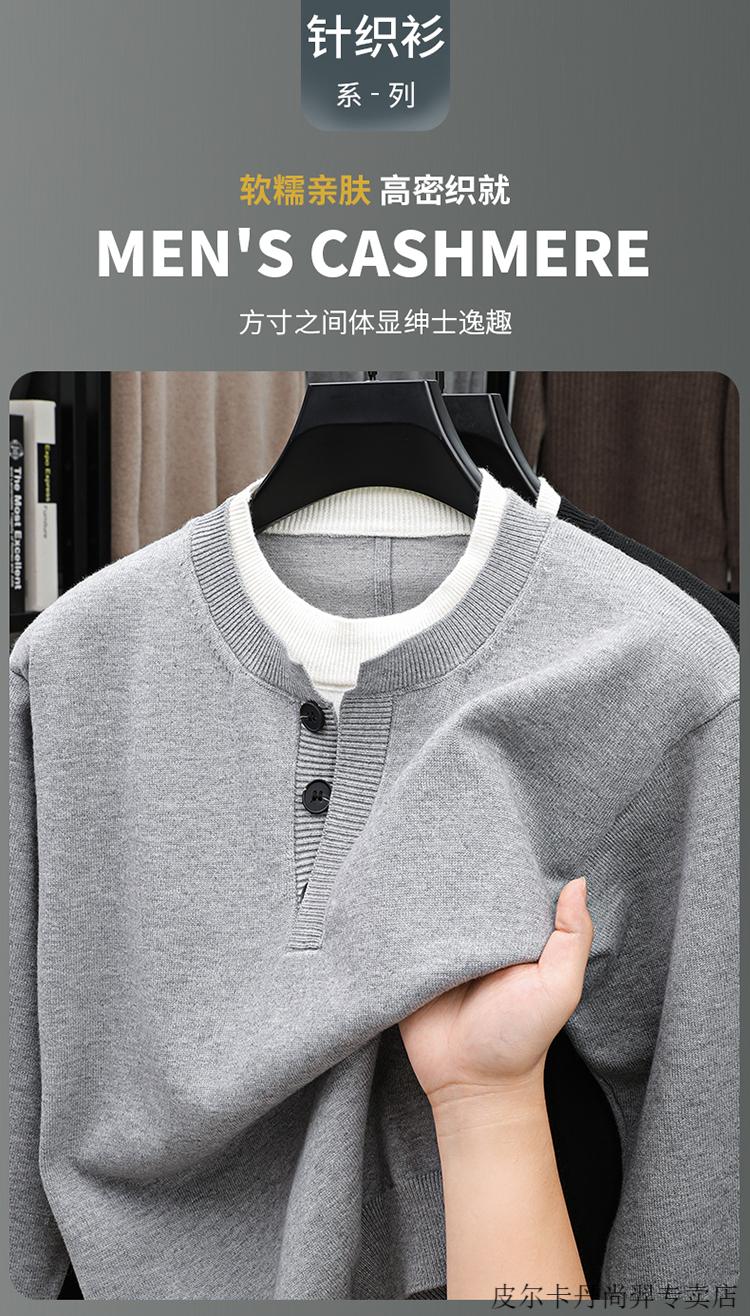 Pierre Cardin (pierre cardin) American retro fake two-piece Henry collar contrasting color sweater old money style lazy loose stacked small round neck sweater for men gray 2XL 180 suitable for 150-165Jin Jin is equal to 0.5 kg