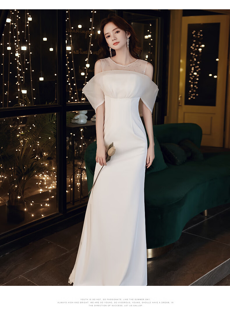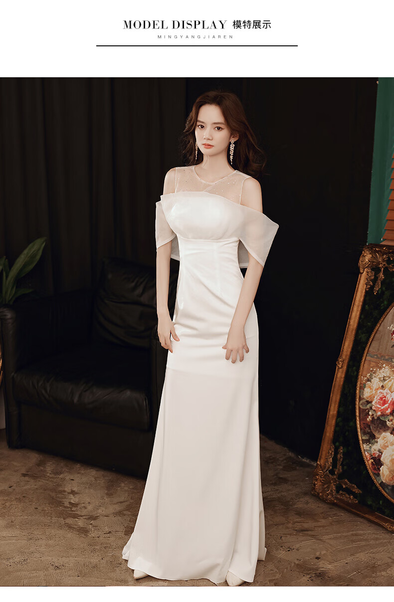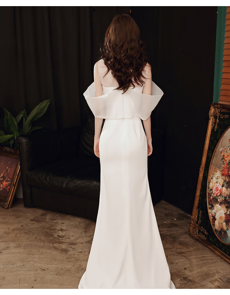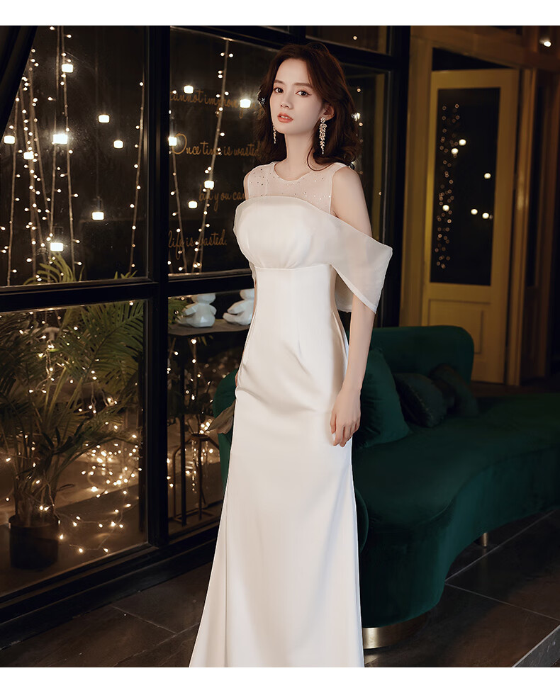 NYIG white evening dress for women 2025 new style temperament socialite niche sense adult ceremony fishtail long skirt versatile white fishtail long style M