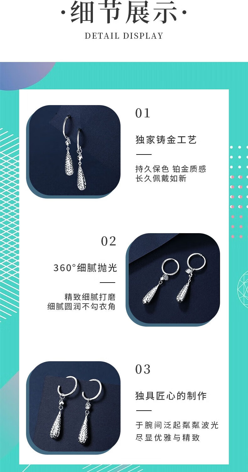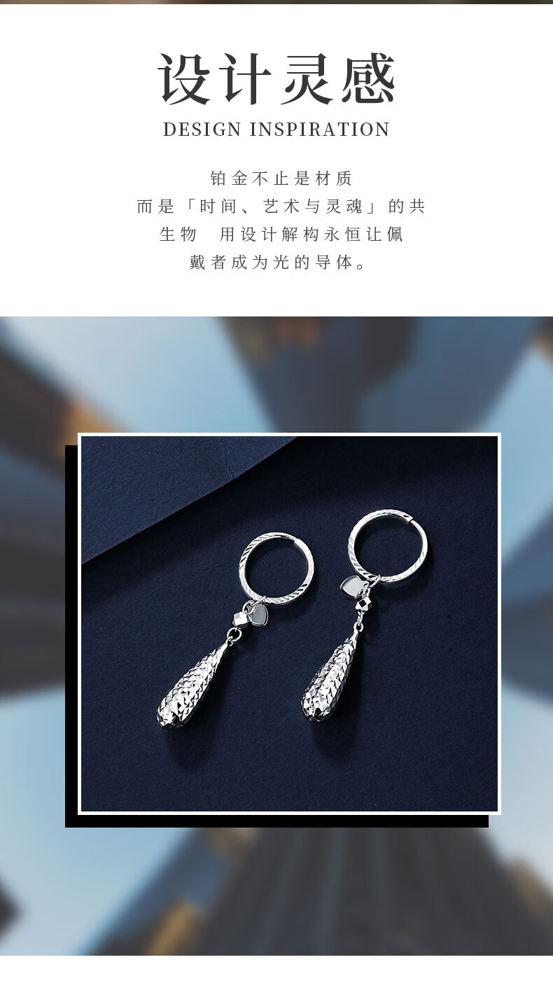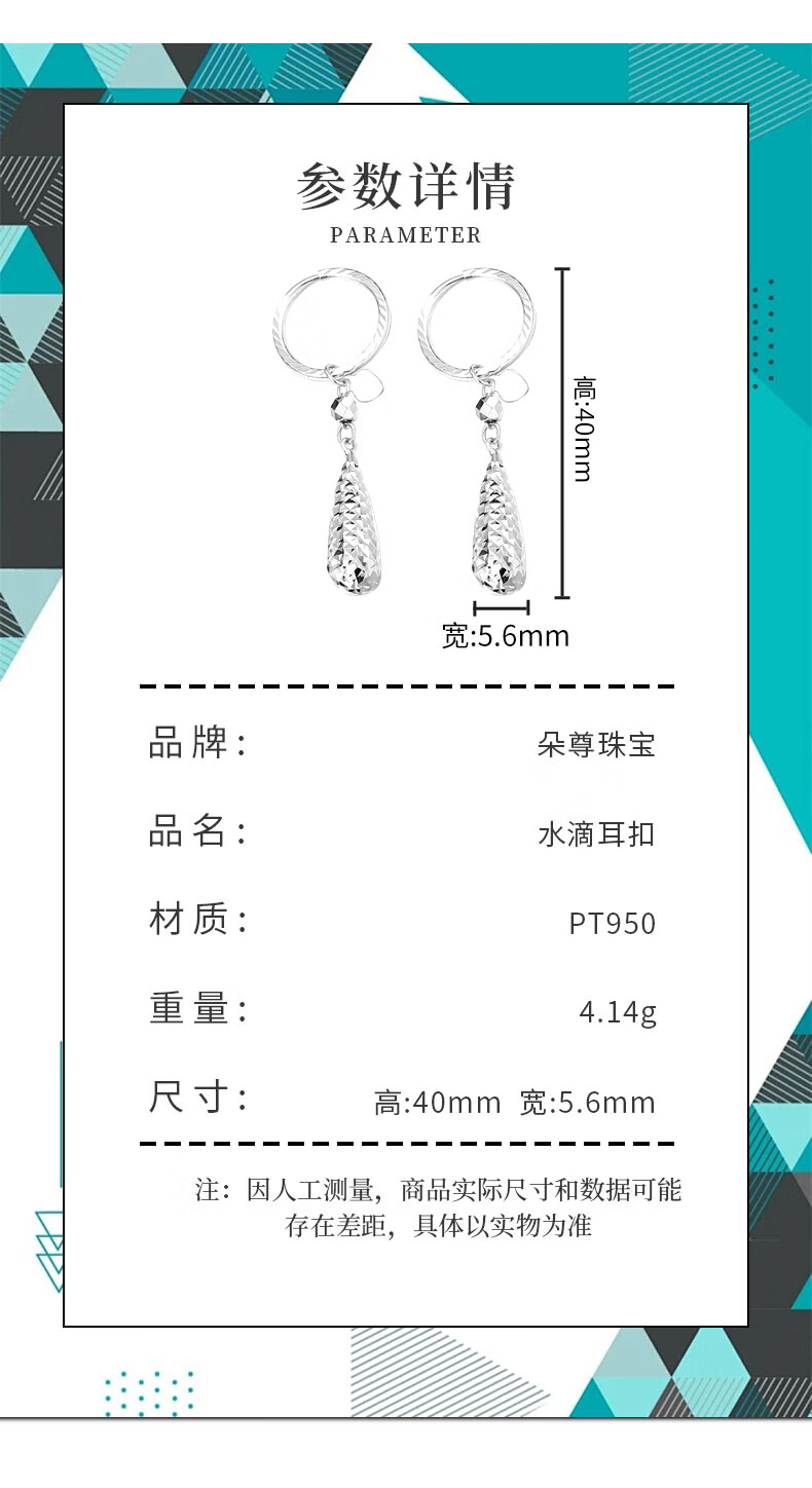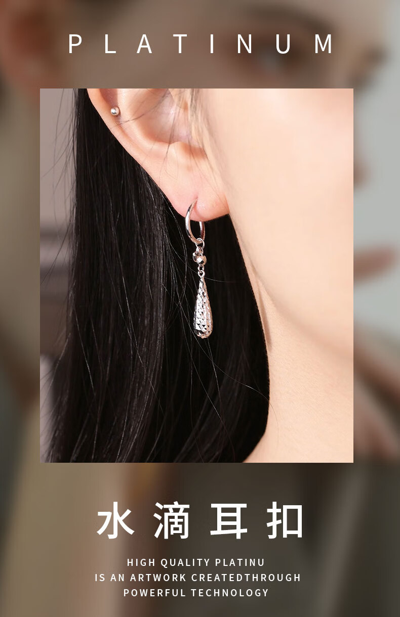 Duozun pt950 genuine platinum earrings for women platinum earrings water drop ear buckles versatile earrings new birthday gifts water drop ear buckles 4.14 g (pair) pre-sale