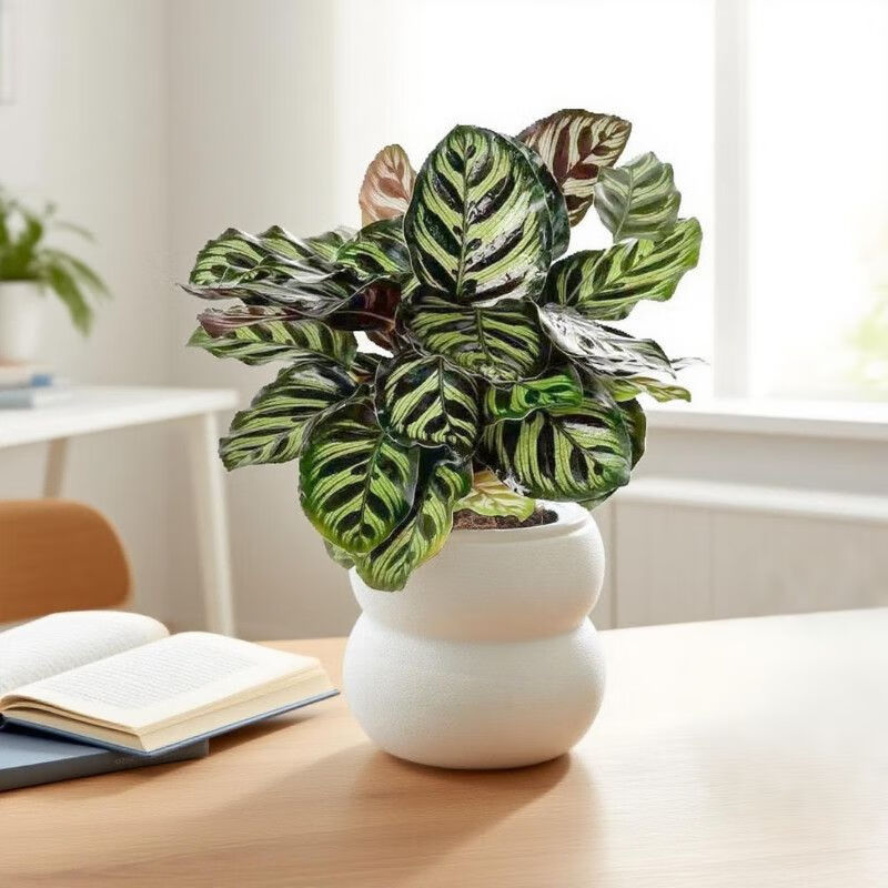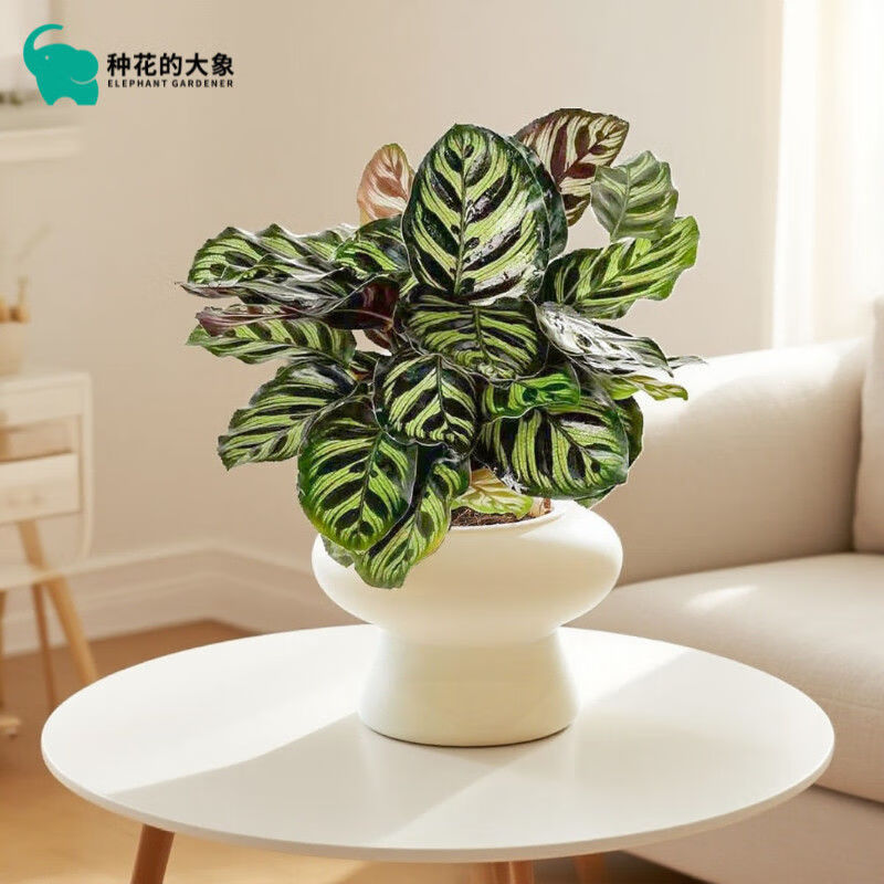 Peacock arrowroot potted green plant indoor foliage all-season evergreen air purification office lazy small potted plant Peacock arrowroot + Michelin circle resin pot with pot