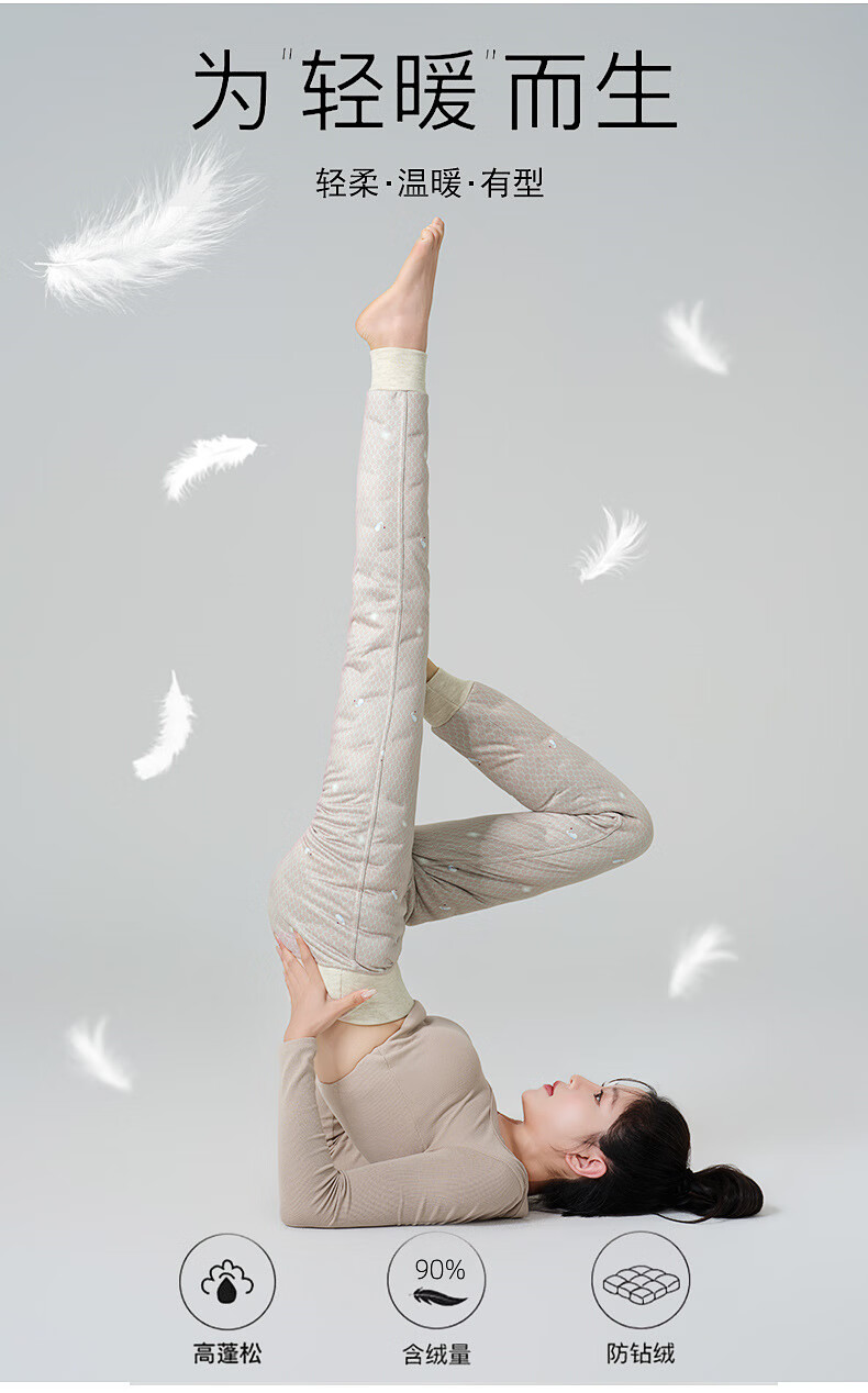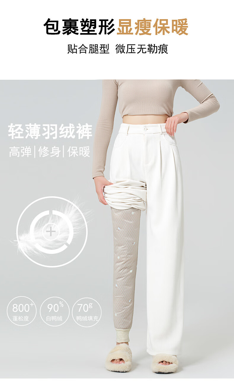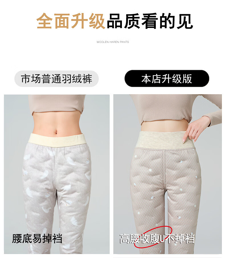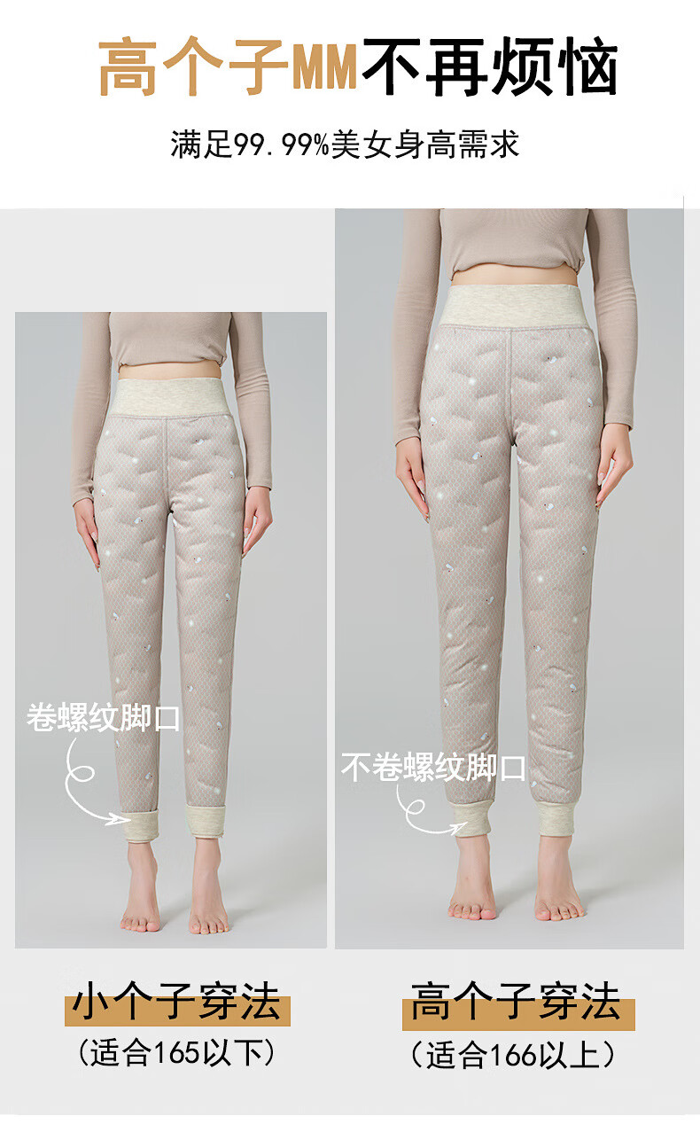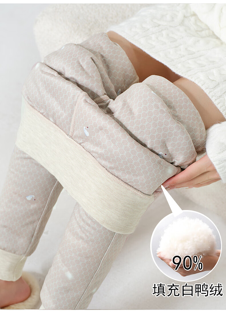 MiiOW pants liner for women winter 2025 new plus velvet thickened white duck down leggings Northeastern extra thick warm cotton pants B06-khaki-full L front and back (111-125Jin Jin is equal to 0.5 kg)