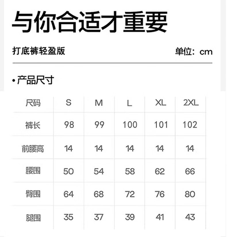 Outseam (cm) 99 cm 101.5 cm 104 cm 106.5 cm 109 cm