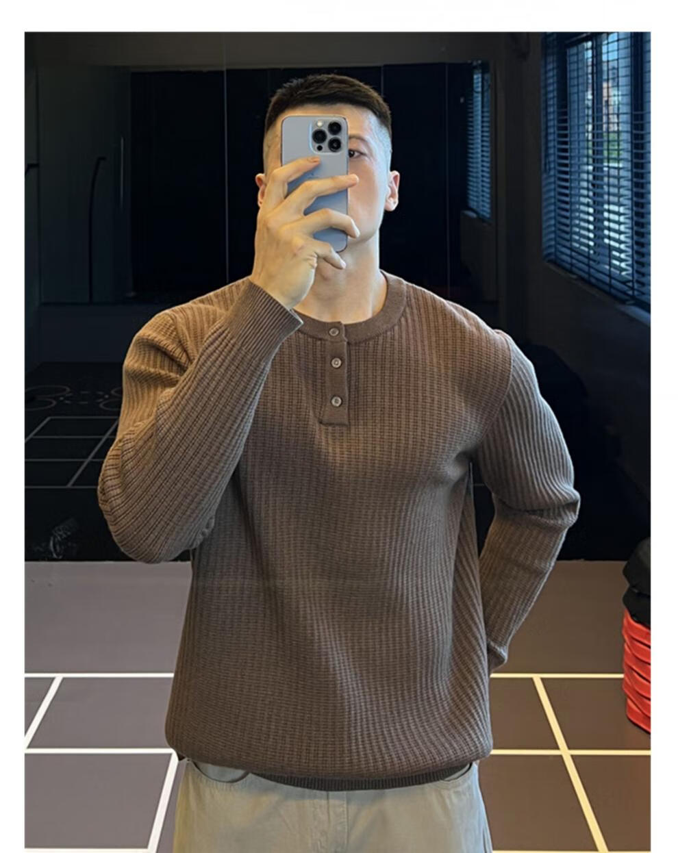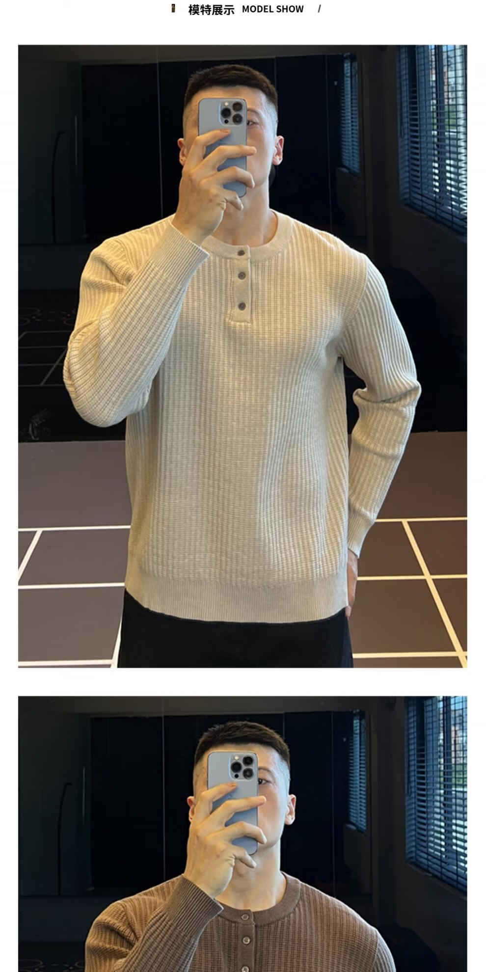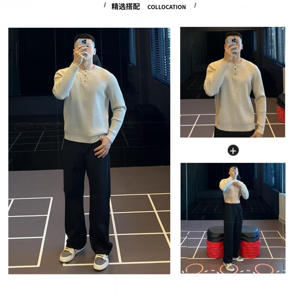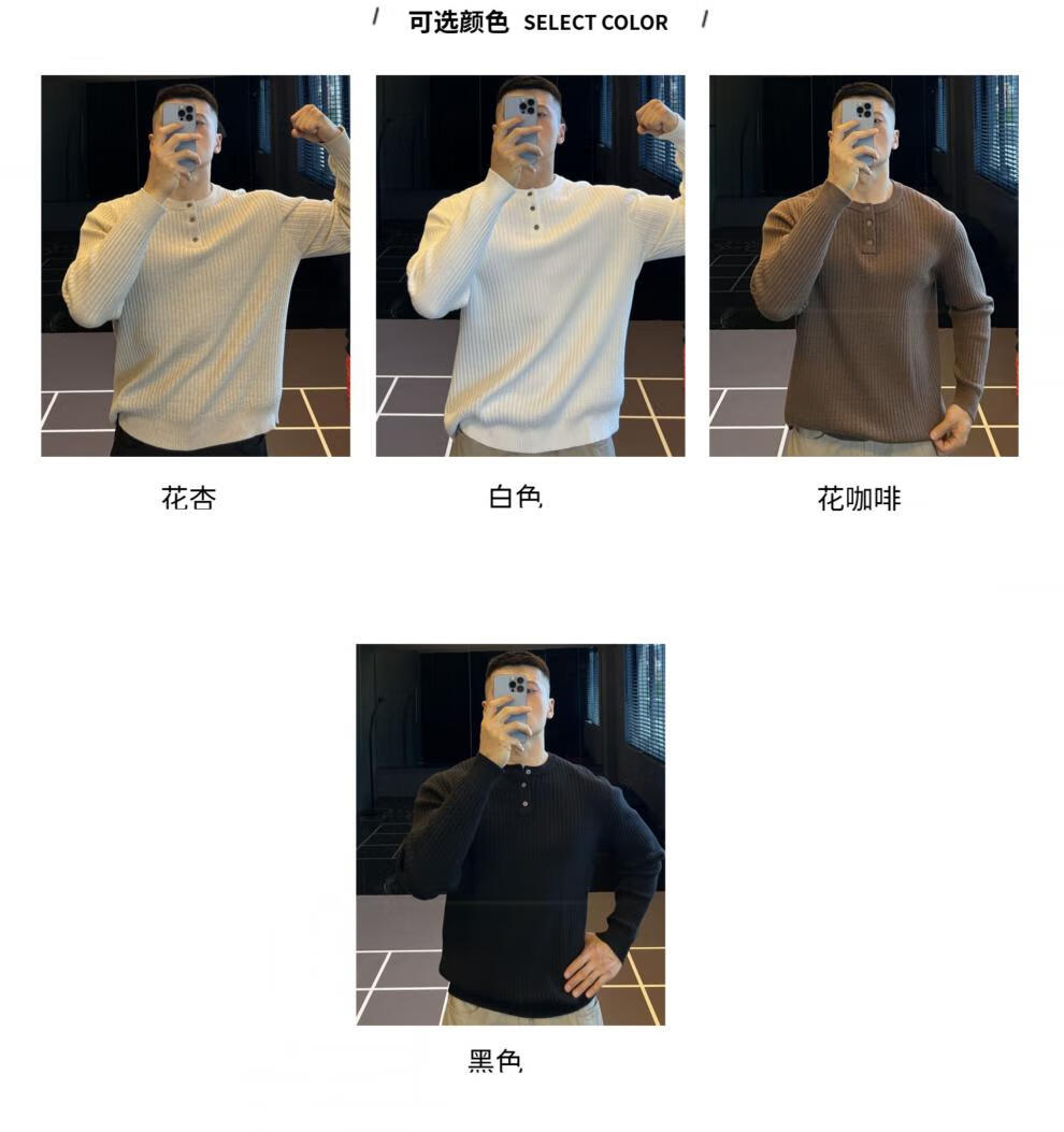 IRONTRAP Henry collar hemp pattern knitted long-sleeved T-shirt men's warm slim sweater bottoming shirt autumn and winter Huaxing XL