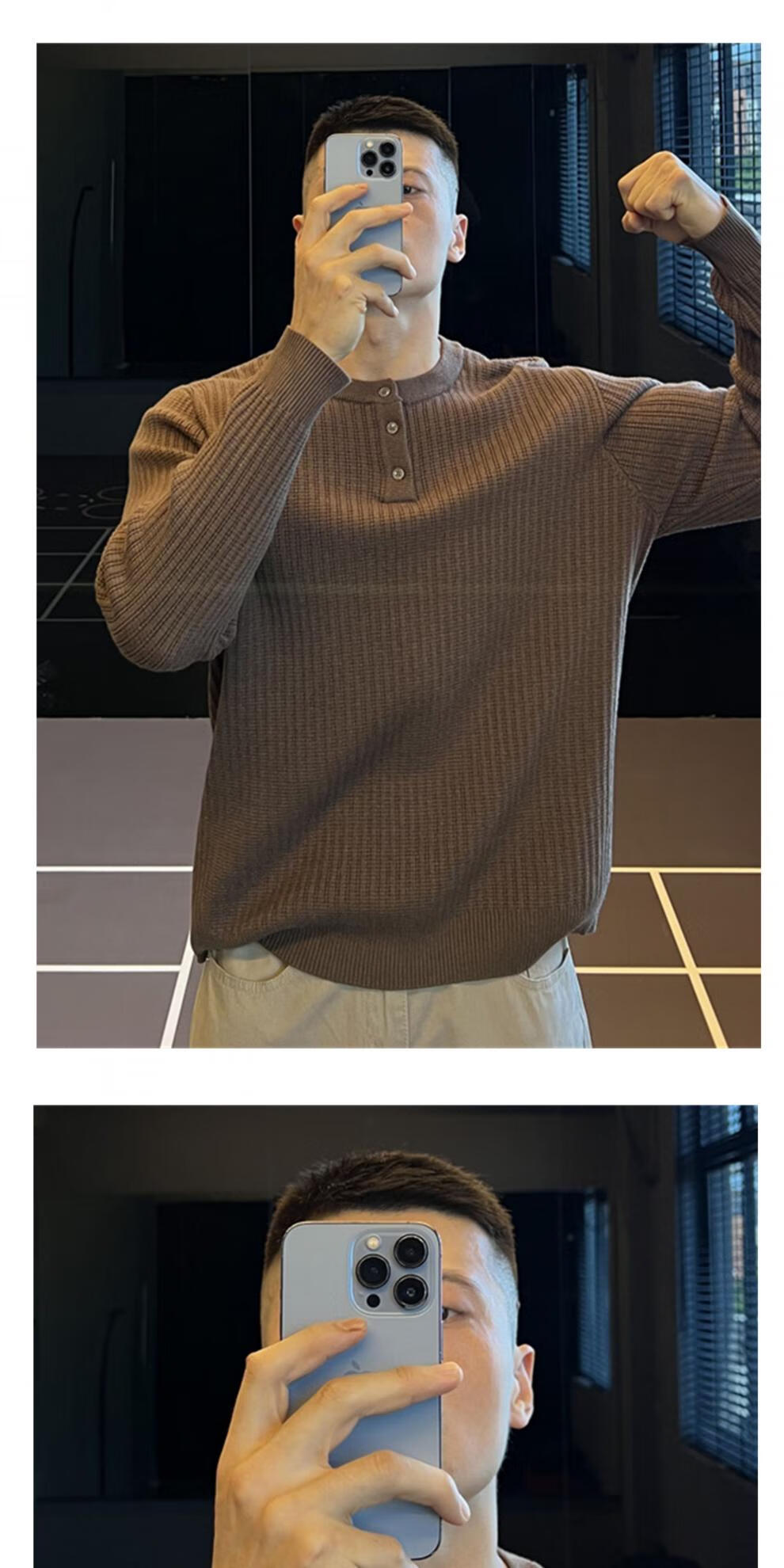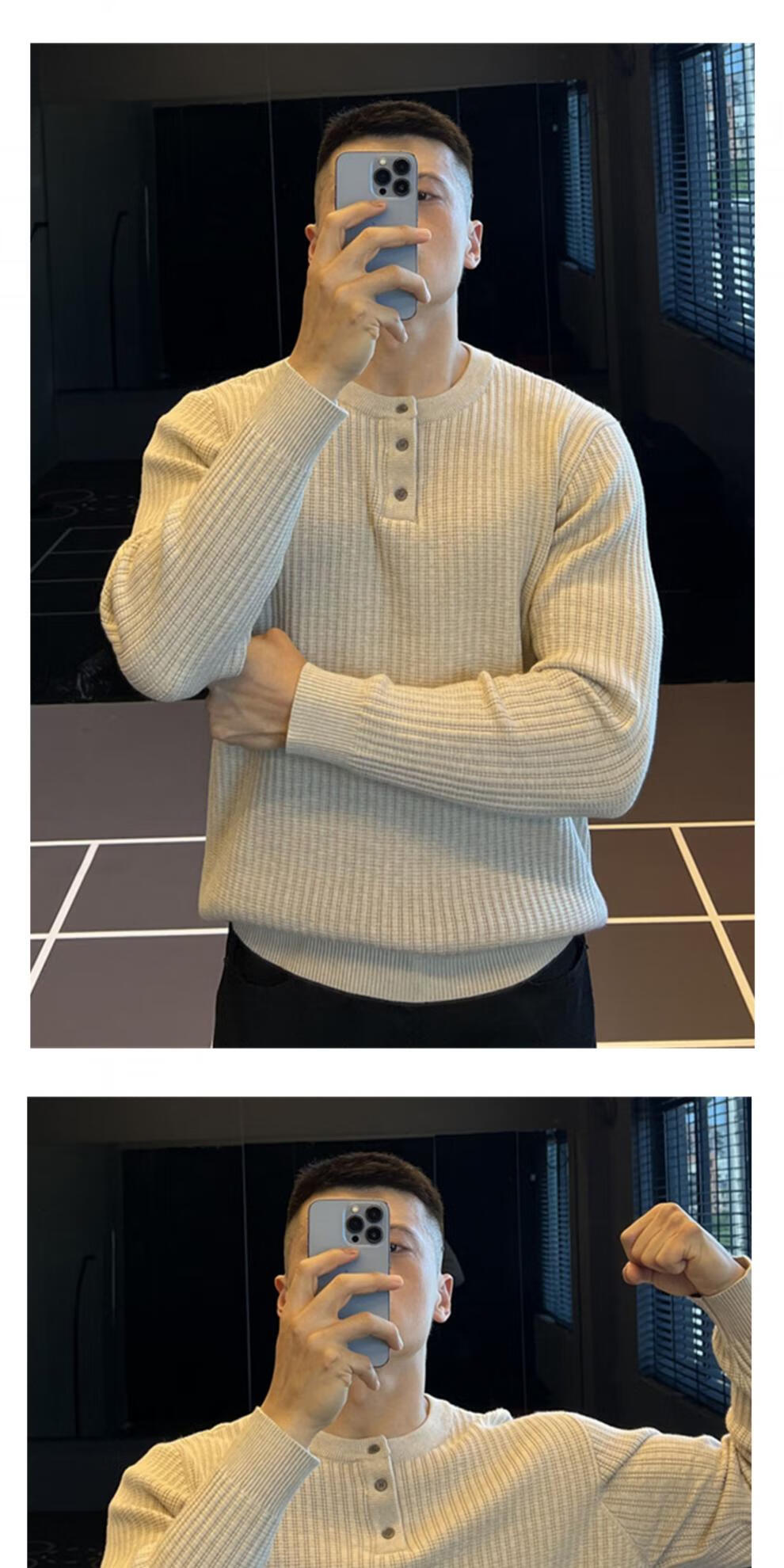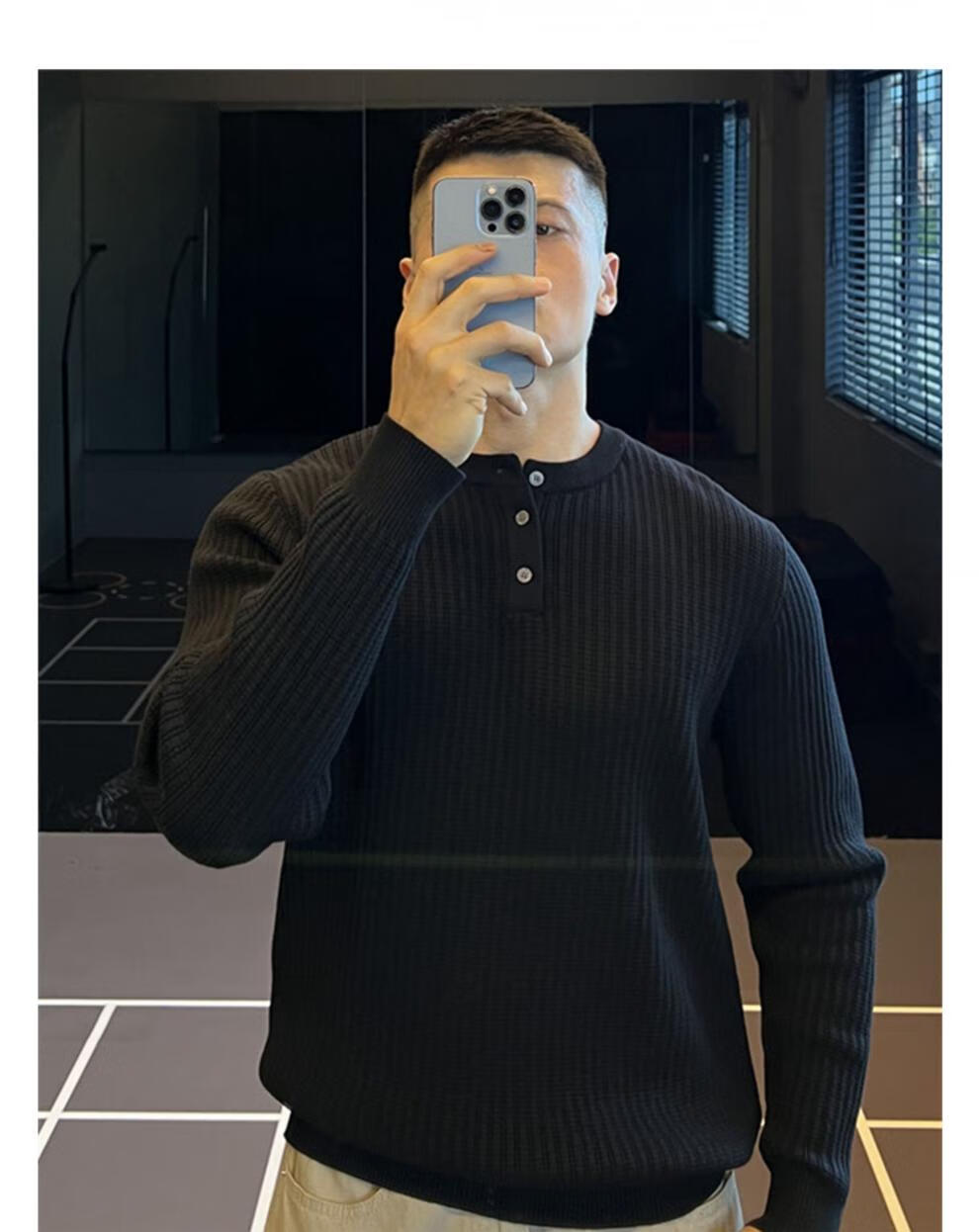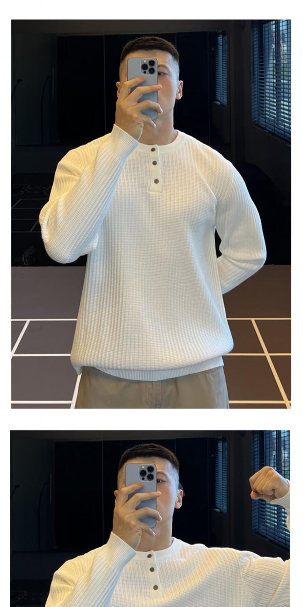 IRONTRAP Henry collar hemp pattern knitted long-sleeved T-shirt men's warm slim sweater bottoming shirt autumn and winter Huaxing XL