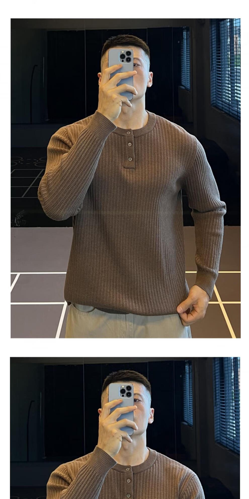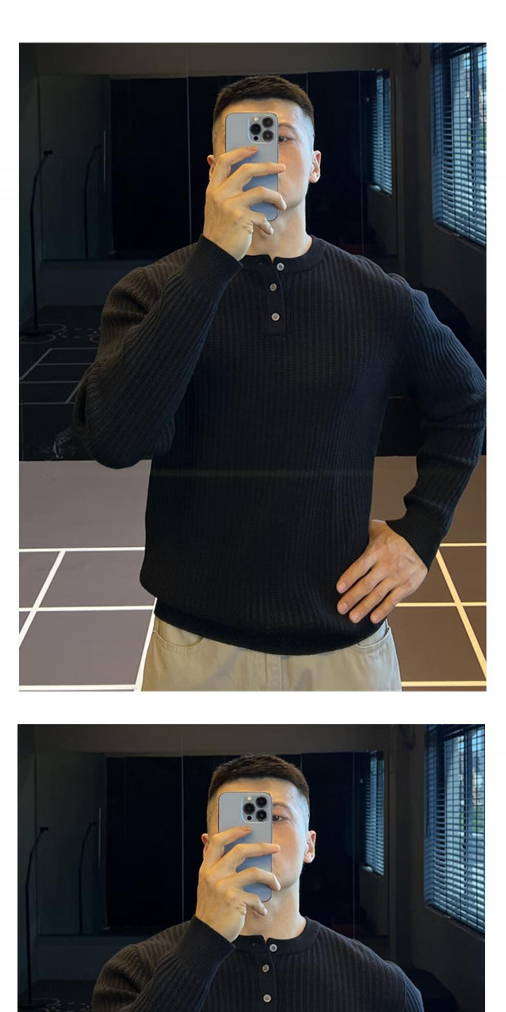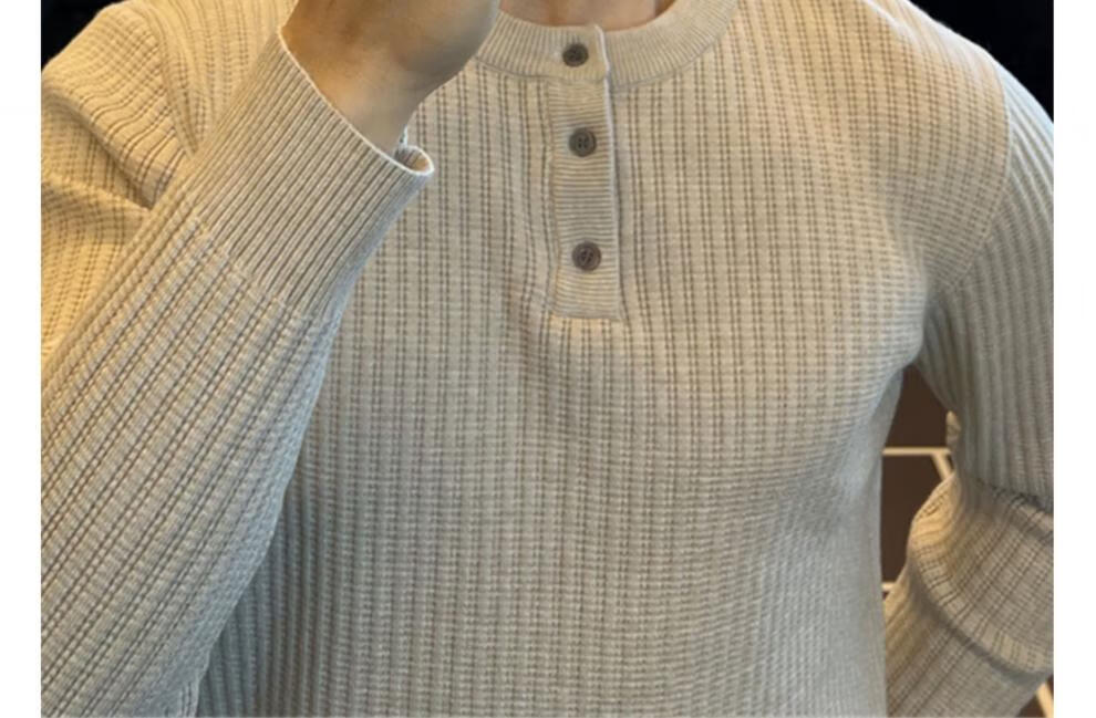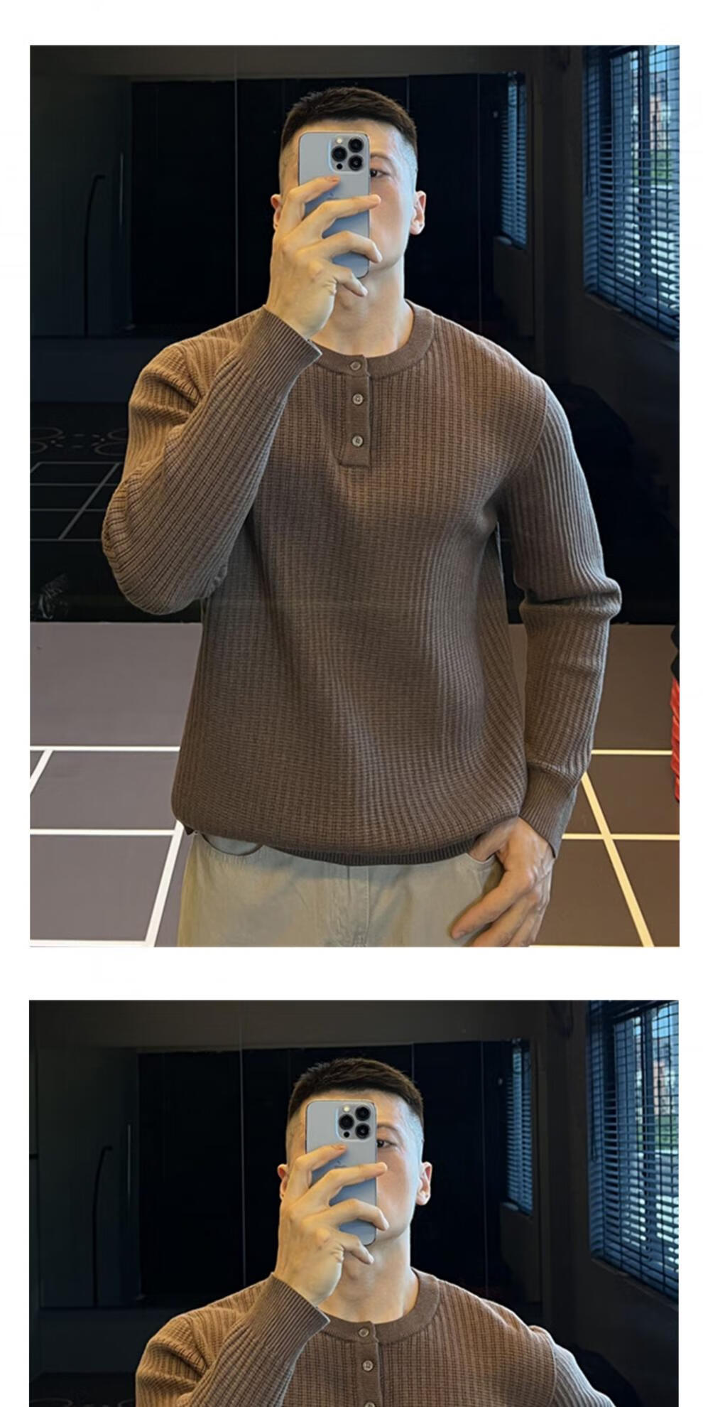IRONTRAP Henry collar hemp pattern knitted long-sleeved T-shirt men's warm slim sweater bottoming shirt autumn and winter Huaxing XL
