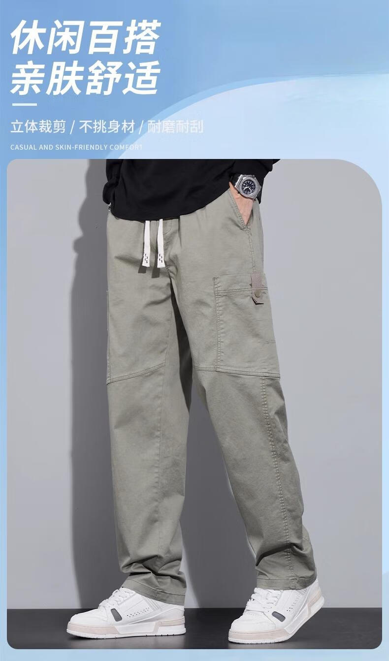 Baleno pure cotton overalls men's autumn new loose straight trousers men's sports versatile casual pants light green L