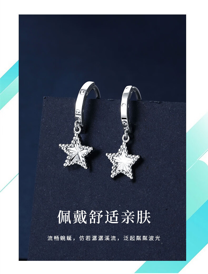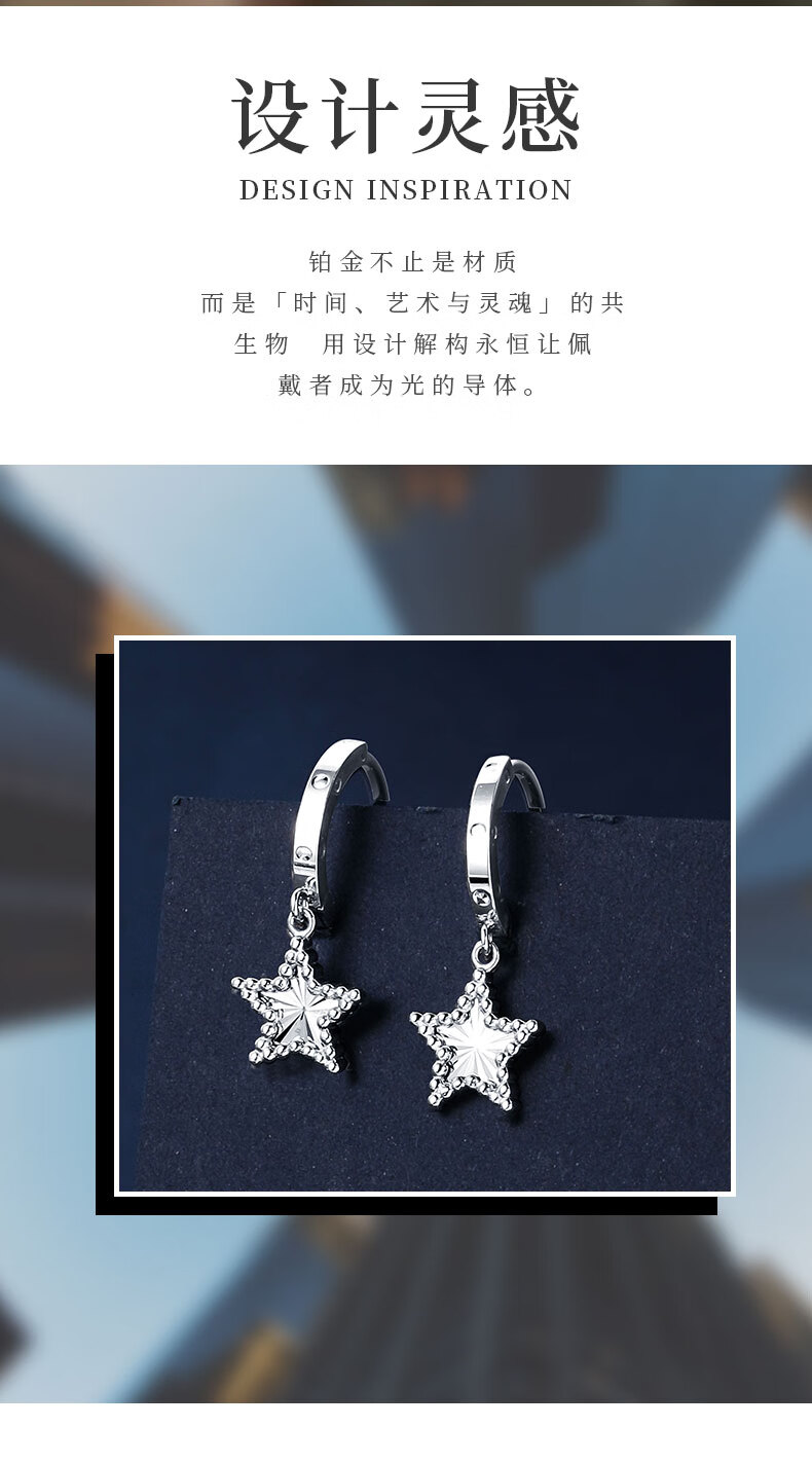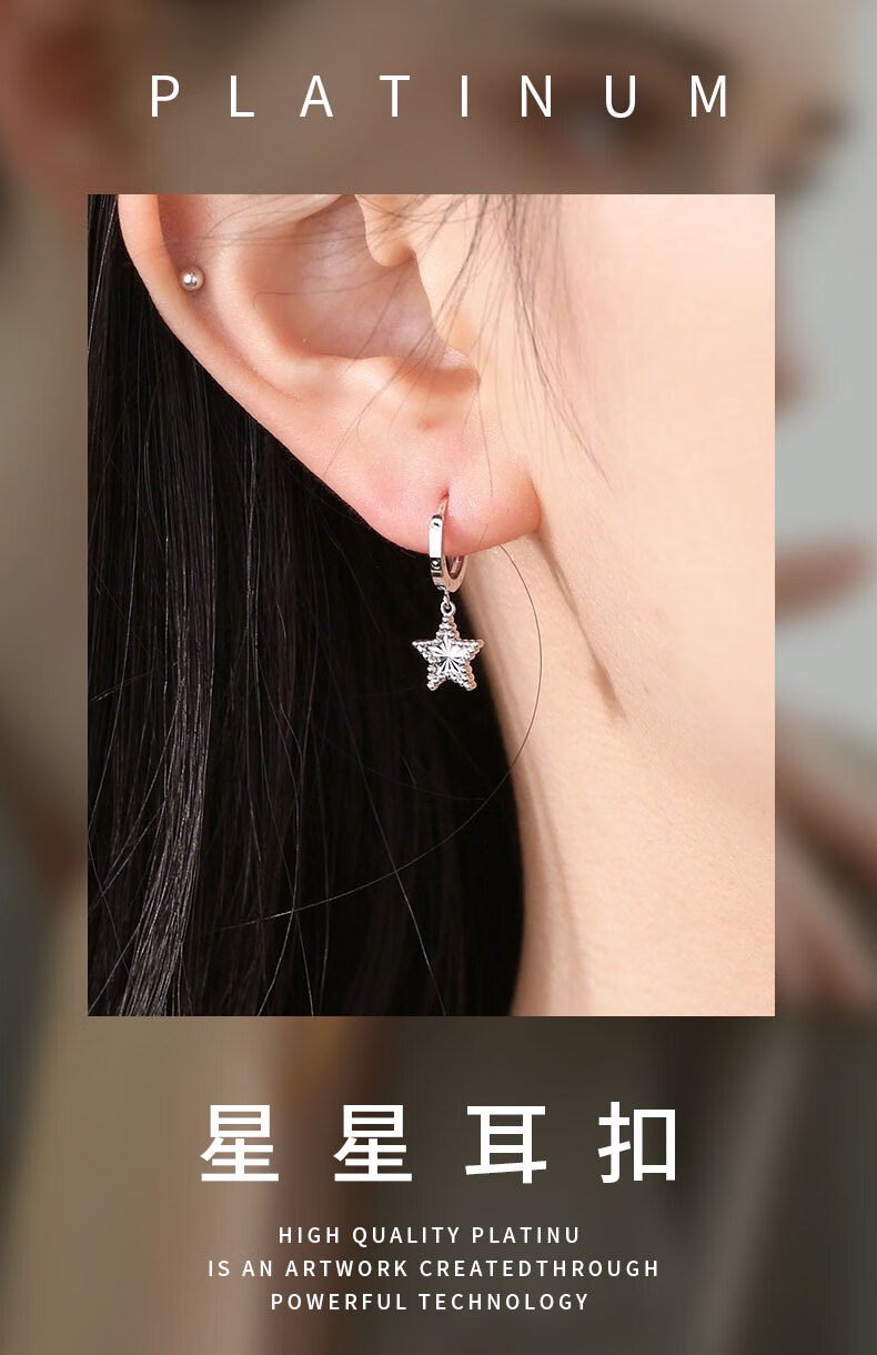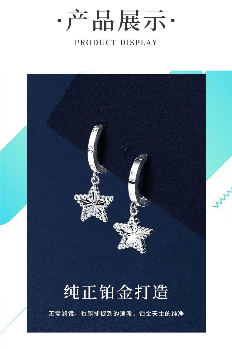 Duozun pt950 genuine platinum earrings for women, platinum star earrings, earrings, new earrings, birthday gifts for girlfriends, star earrings 2.49 g (pair)