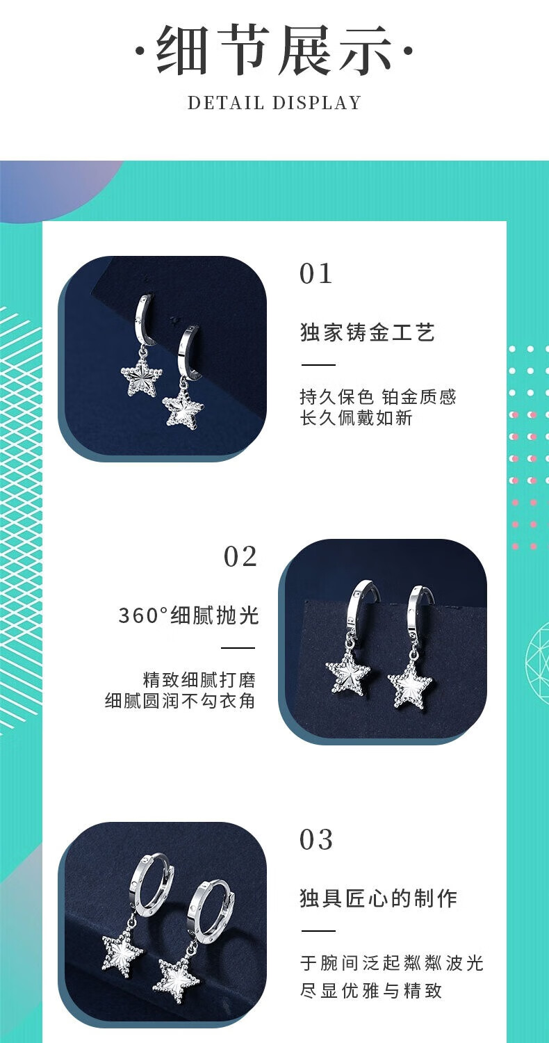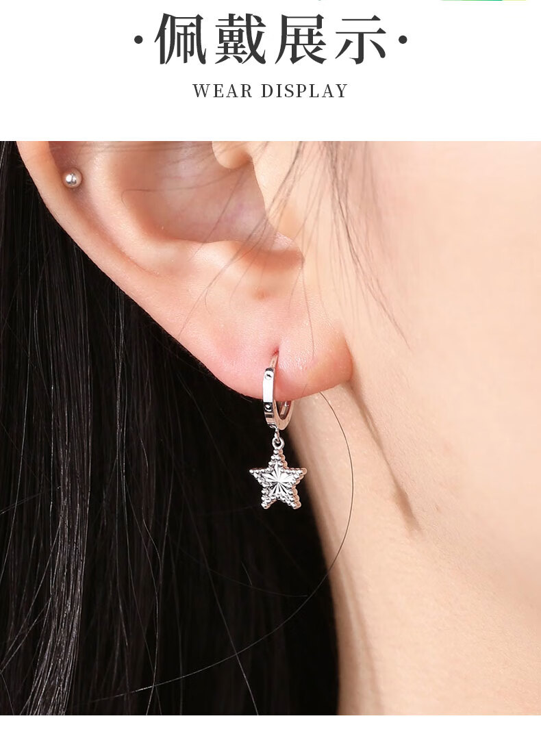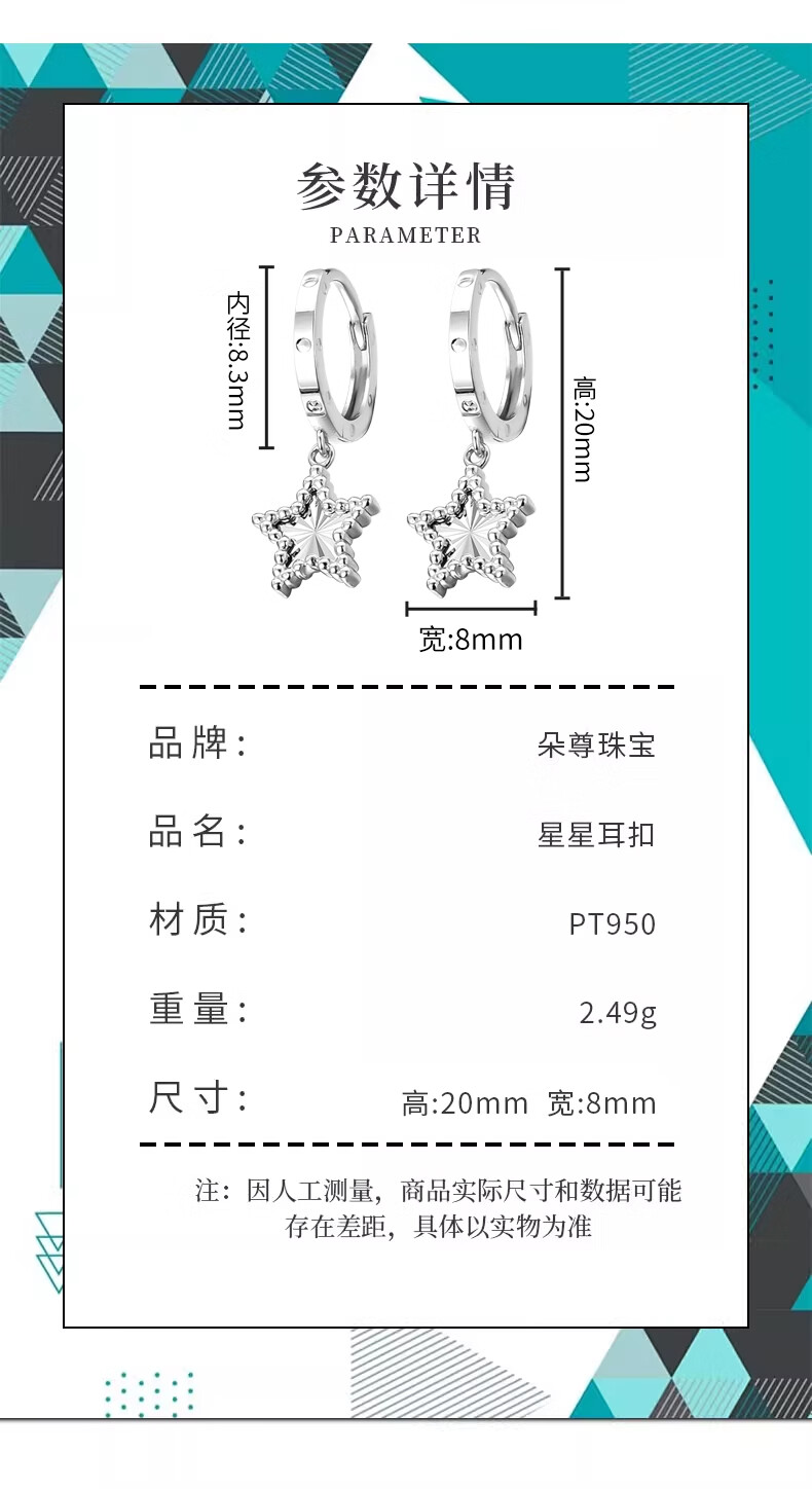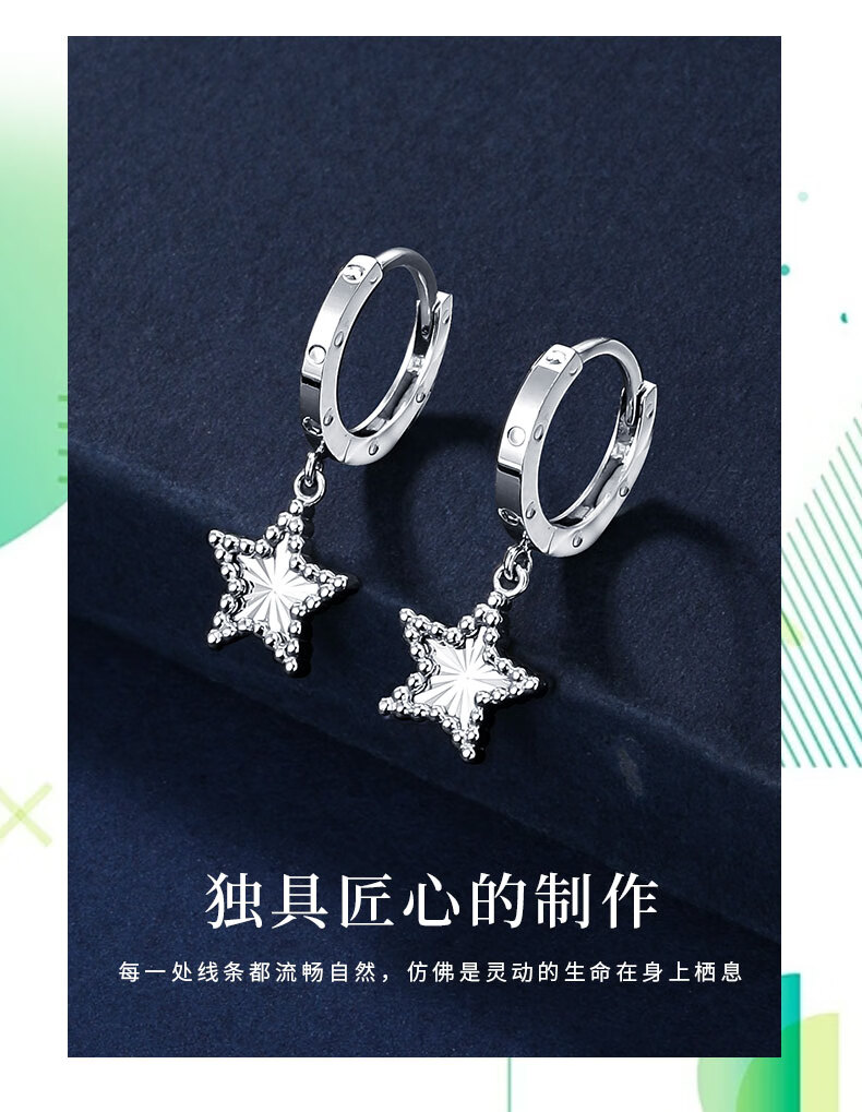 Duozun pt950 genuine platinum earrings for women, platinum star earrings, earrings, new earrings, birthday gifts for girlfriends, star earrings 2.49 g (pair)