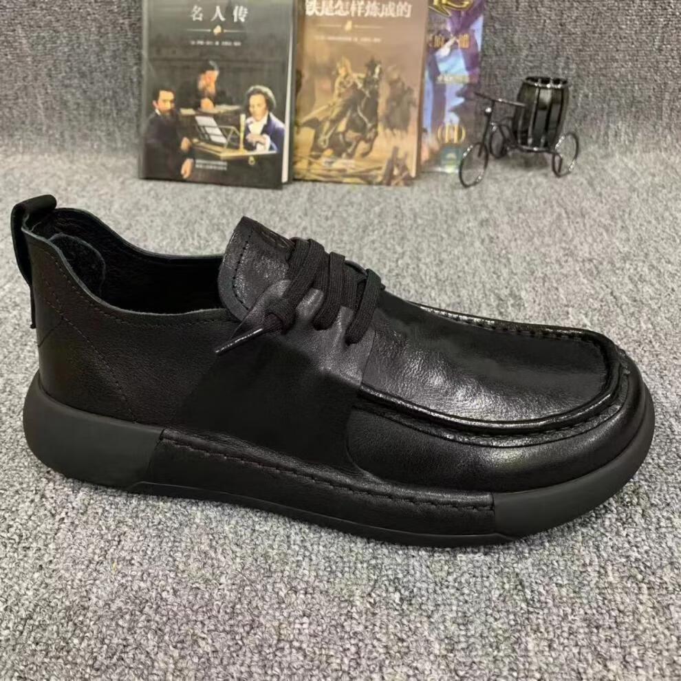 Men's genuine leather spring business casual leather shoes 2024 new fashion versatile thick sole non-slip British style shoes for men black 42