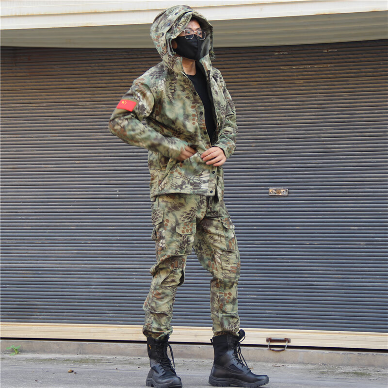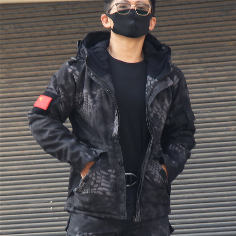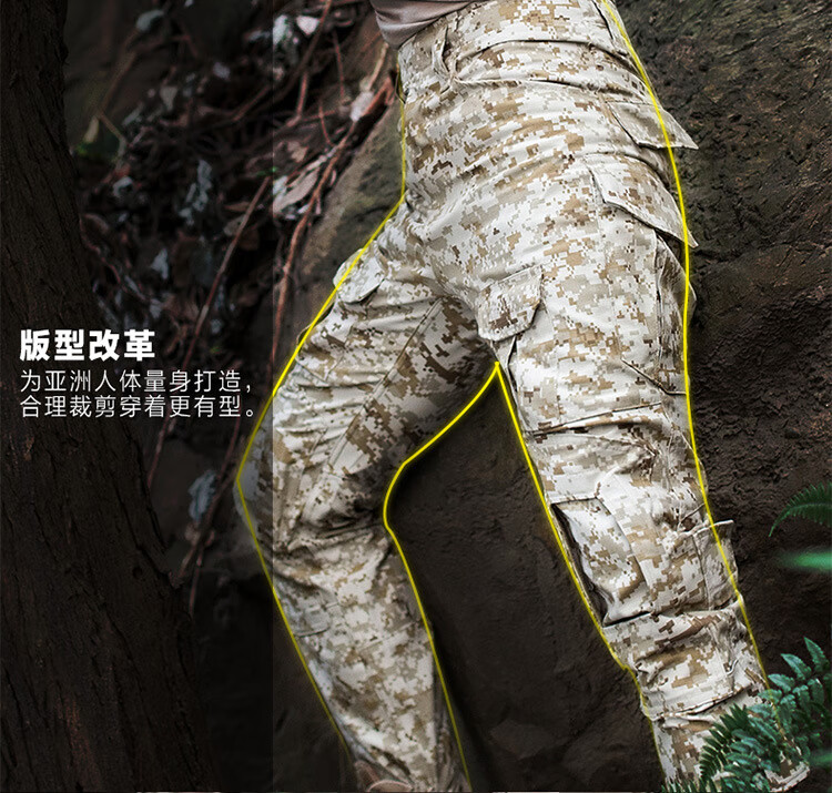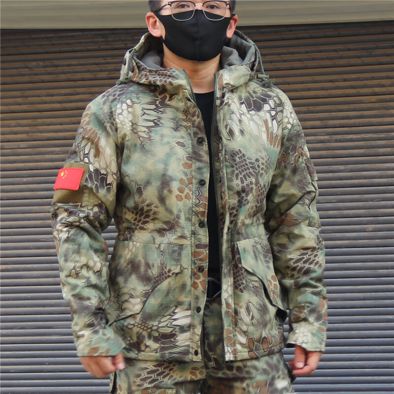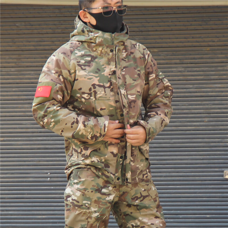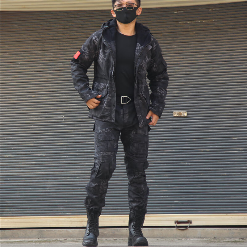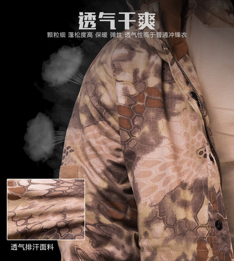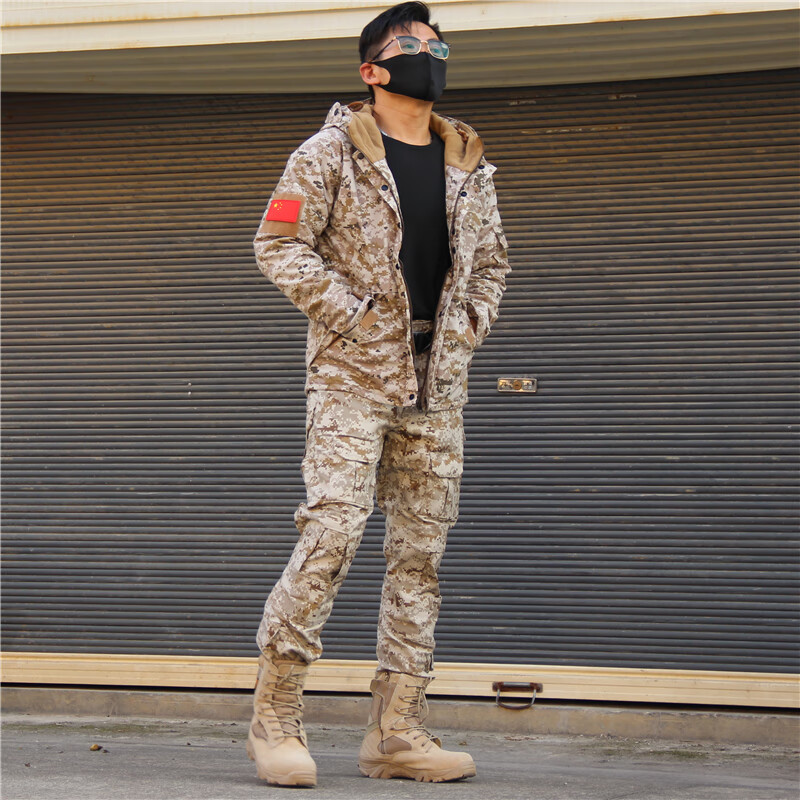 Tuo Lang autumn and winter outdoor camouflage suit for men and women, construction site security plus velvet cotton coat, windbreaker, fishing and cold protection for mountaineering, sand color, new G8 cotton coat + frog pants, L/34 size (145-160Jin Jin equals 0.5kg)